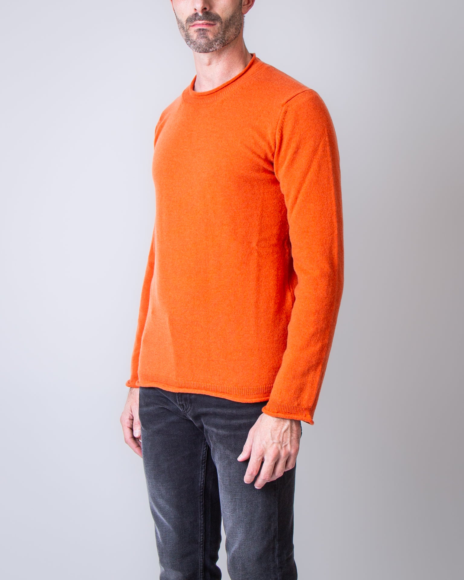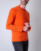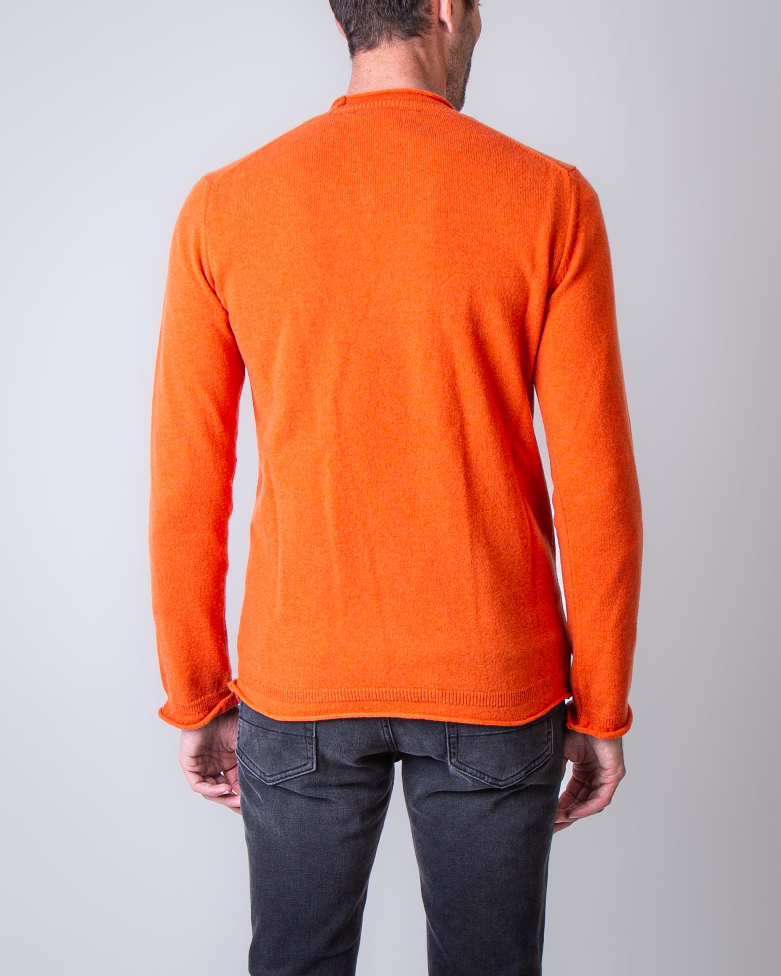 Comme Des Garcons Shirt, maglia uomo FP-N007 ORANGE arancio, collo a rullino, 100%lana. Il modello è alto 186 cm e indossa la taglia M