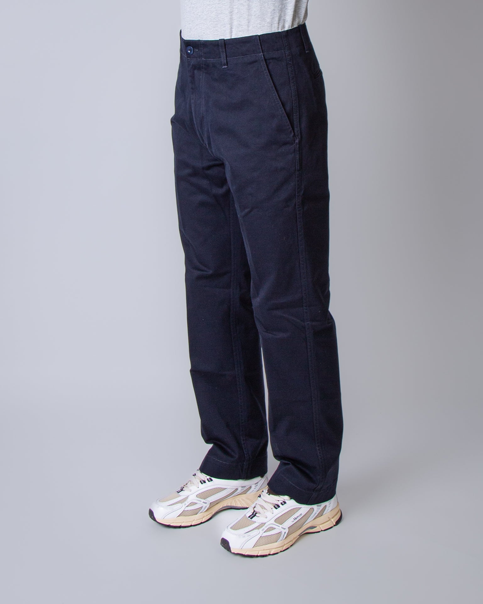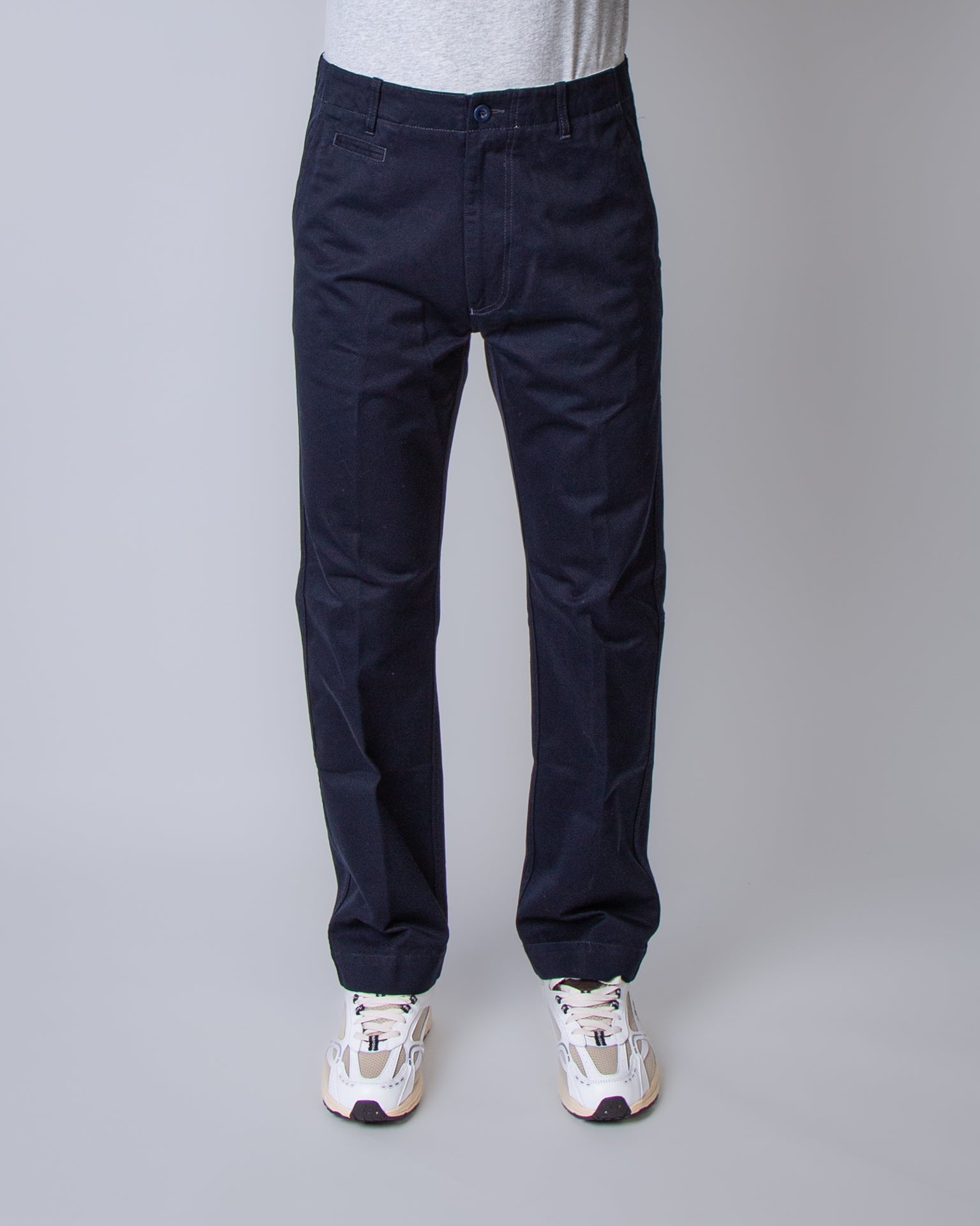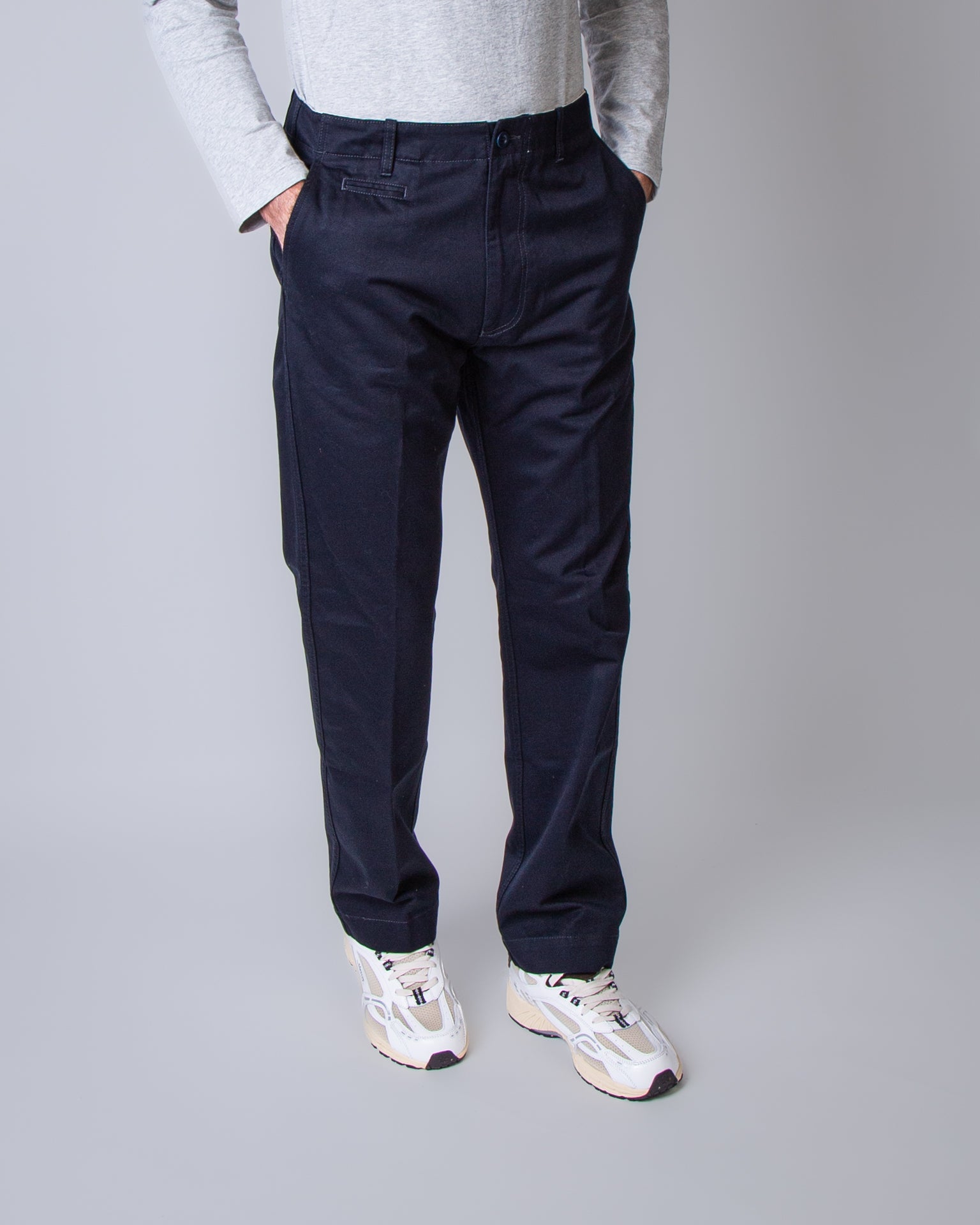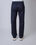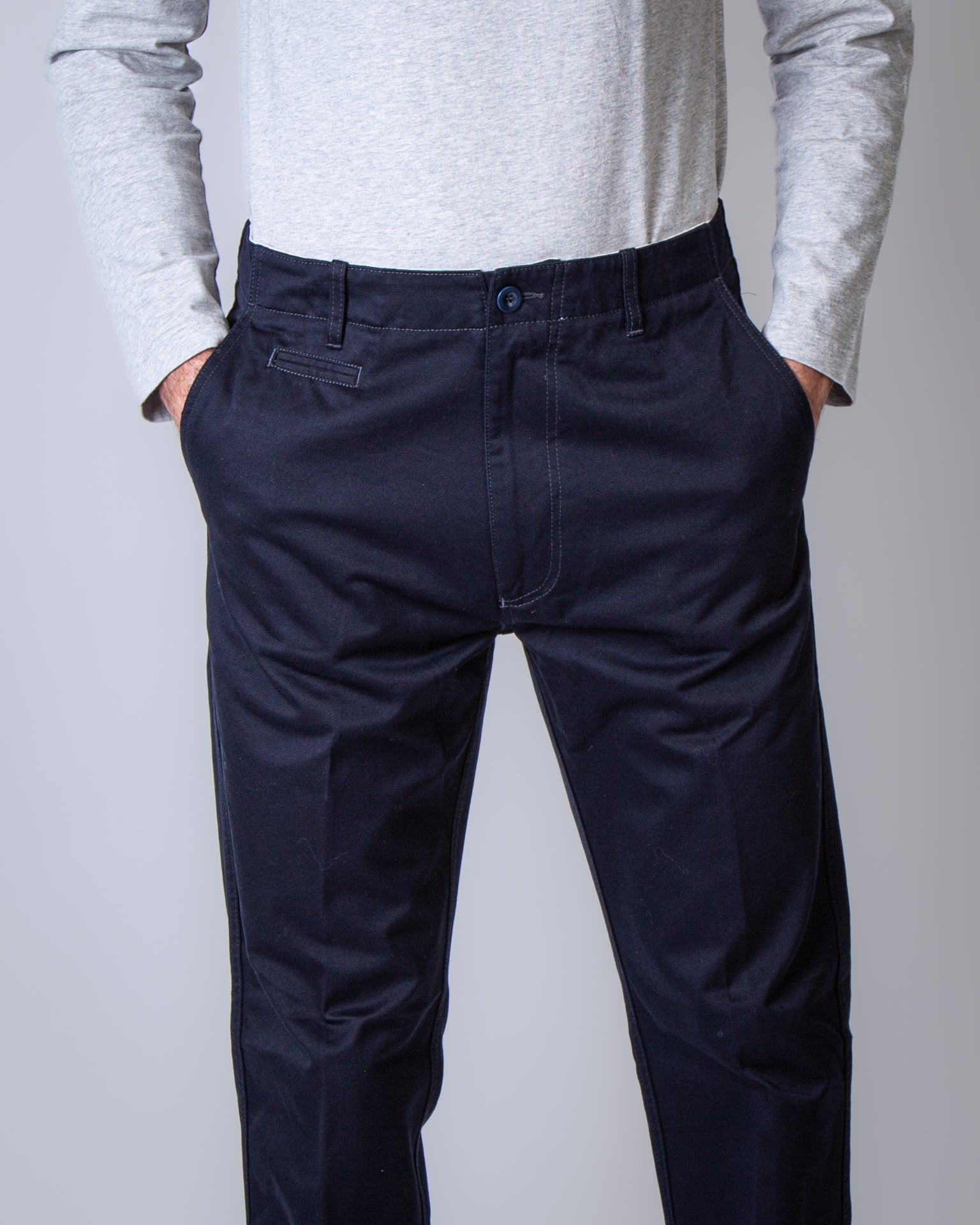 East Harbour Surplus, pantalone uomo AXEL 121 NAVY blu, chino gabardina doppio ritorto 100%cotone. Il modello è alto 186 cm e indossa la taglia 48