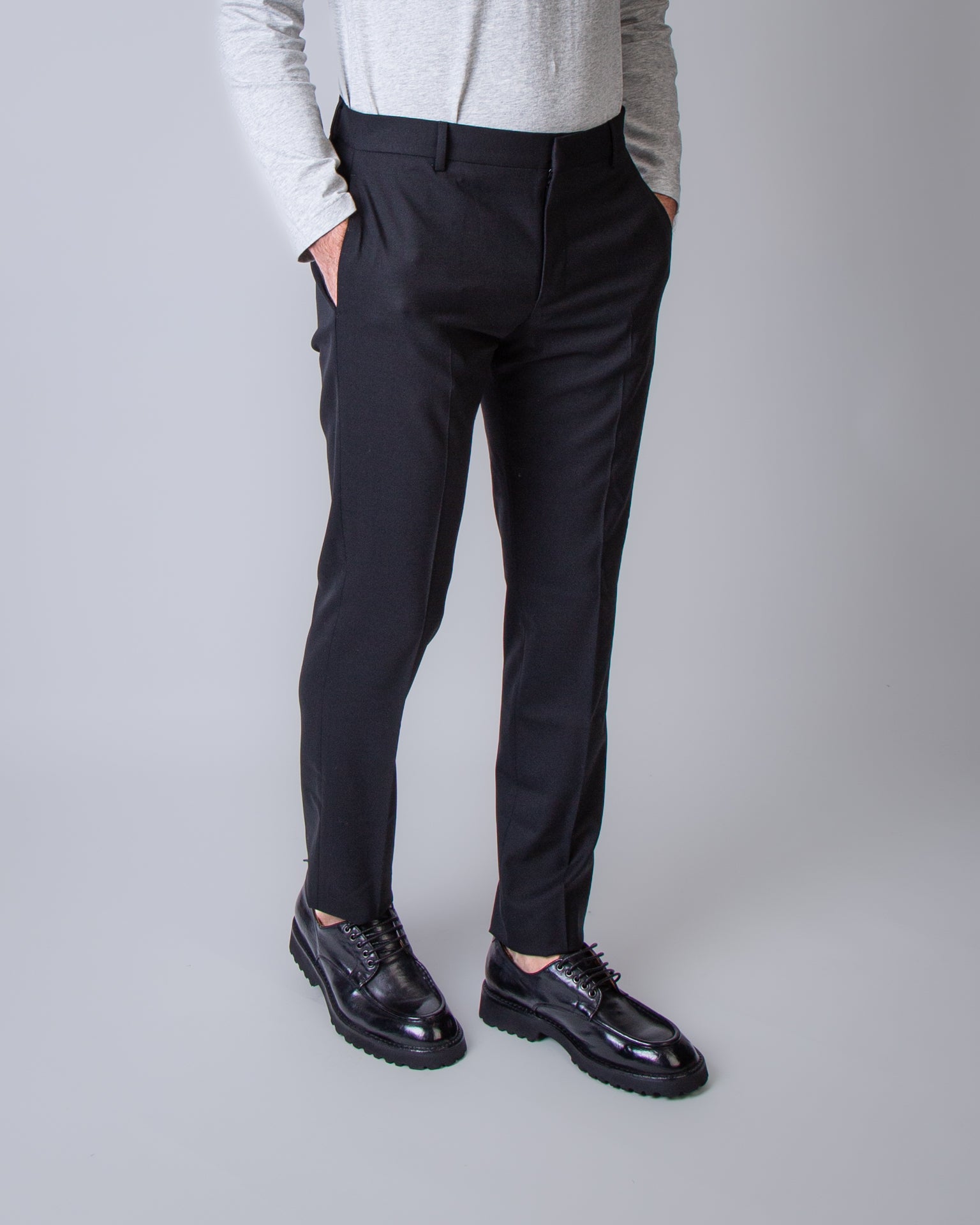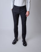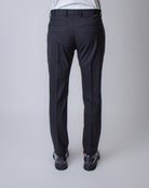 Pt Torino, pantalone uomo ASEPZZ0KLT VD06 0990 nero, epsilon lana tecnica zip tasche posteriori, 55%pl 44%wool 1%elastan. Il modello è alto 186 cm e indossa la taglia 50