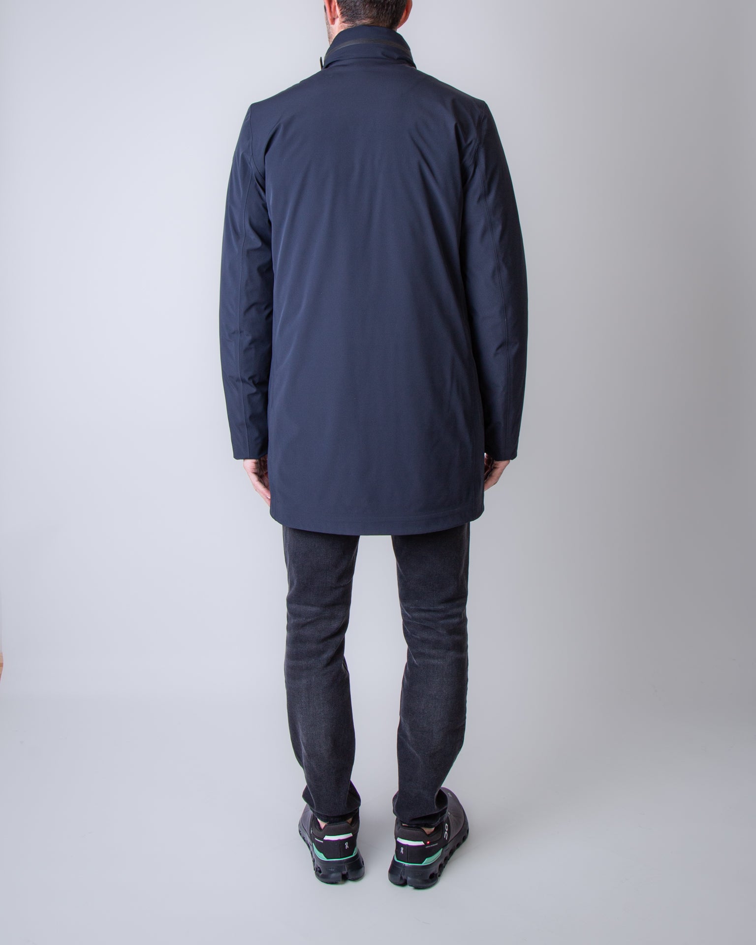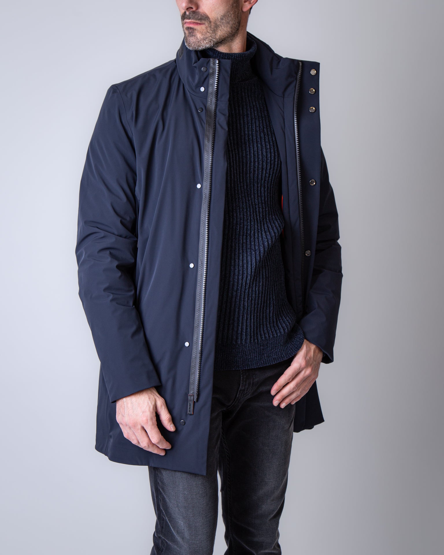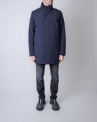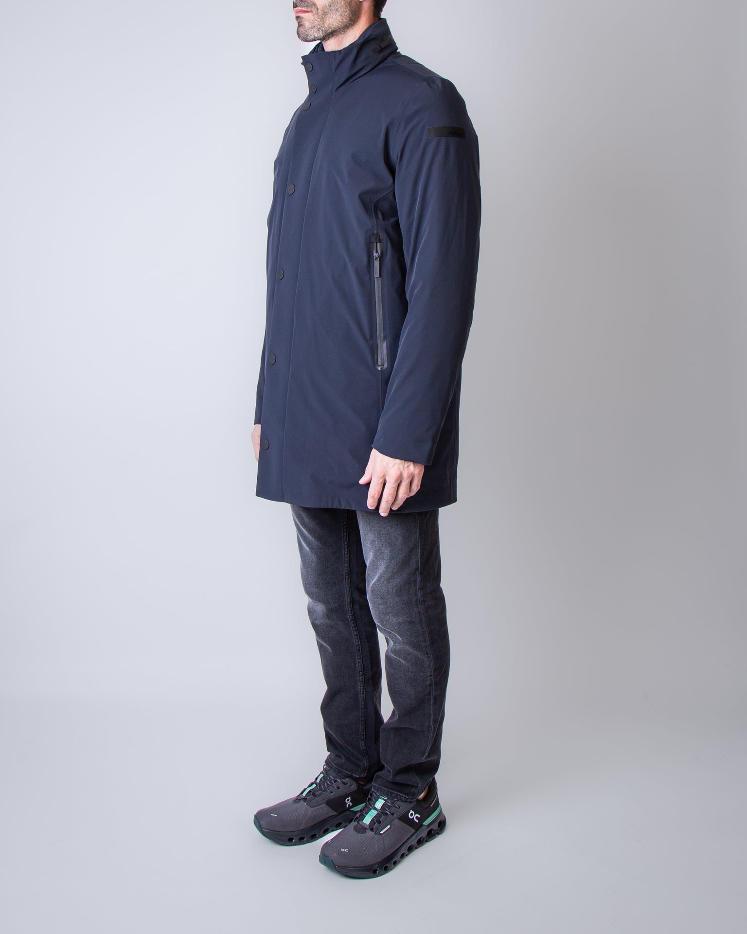 RRD, cappotto uomo W25060 60 blu, montecristo cappotto, raincoat tecnico no cappuccio. Il modello è alto 186 cm e indossa la taglia 52