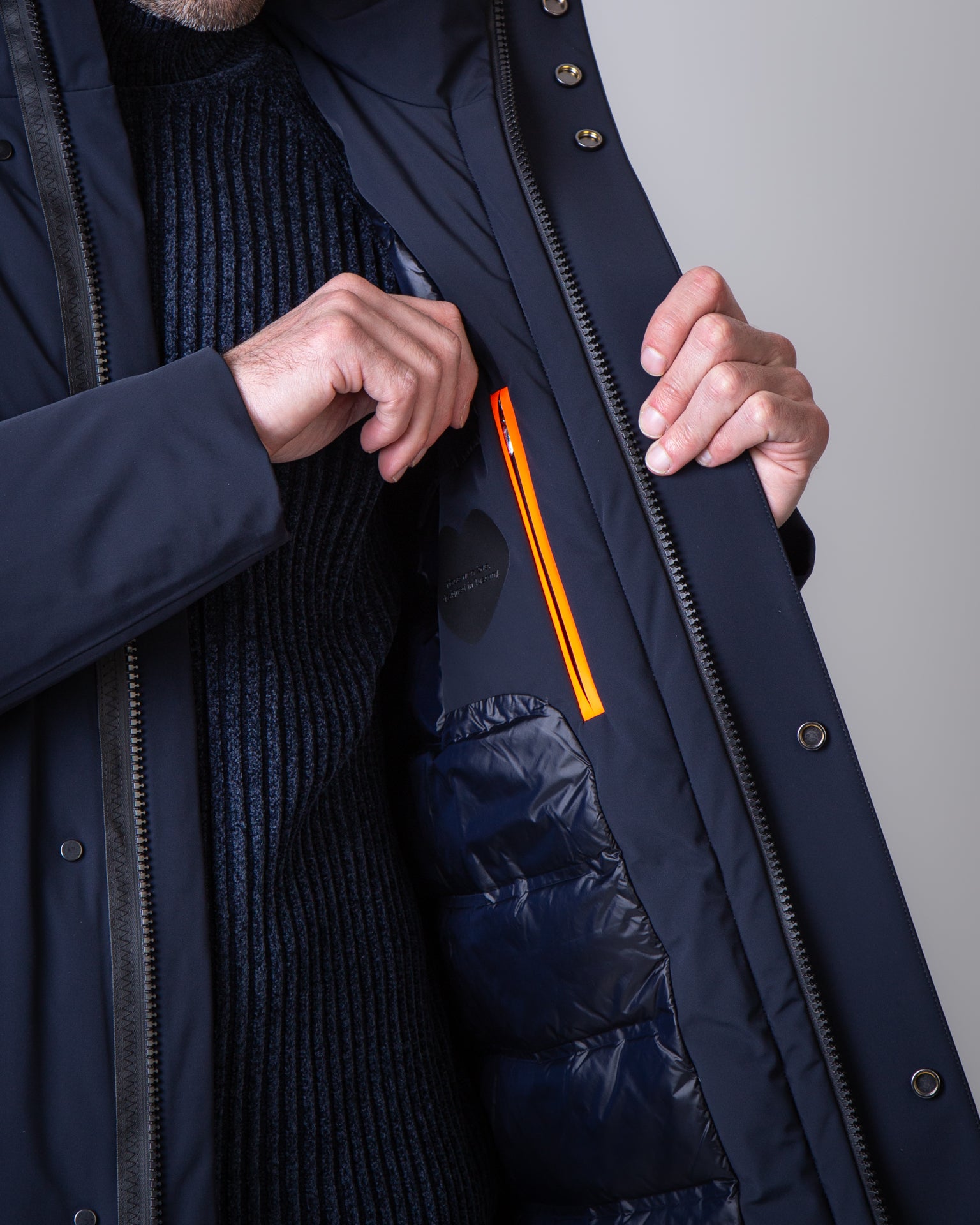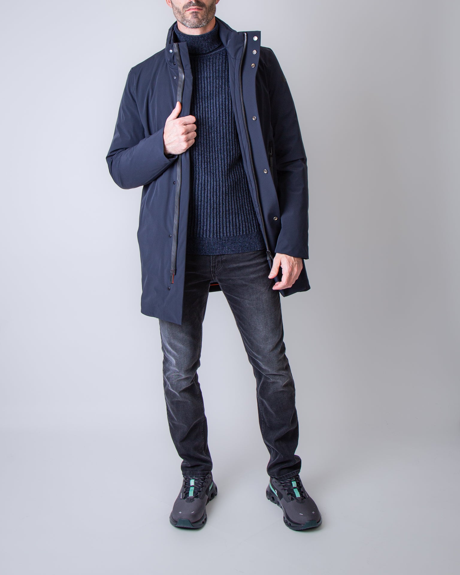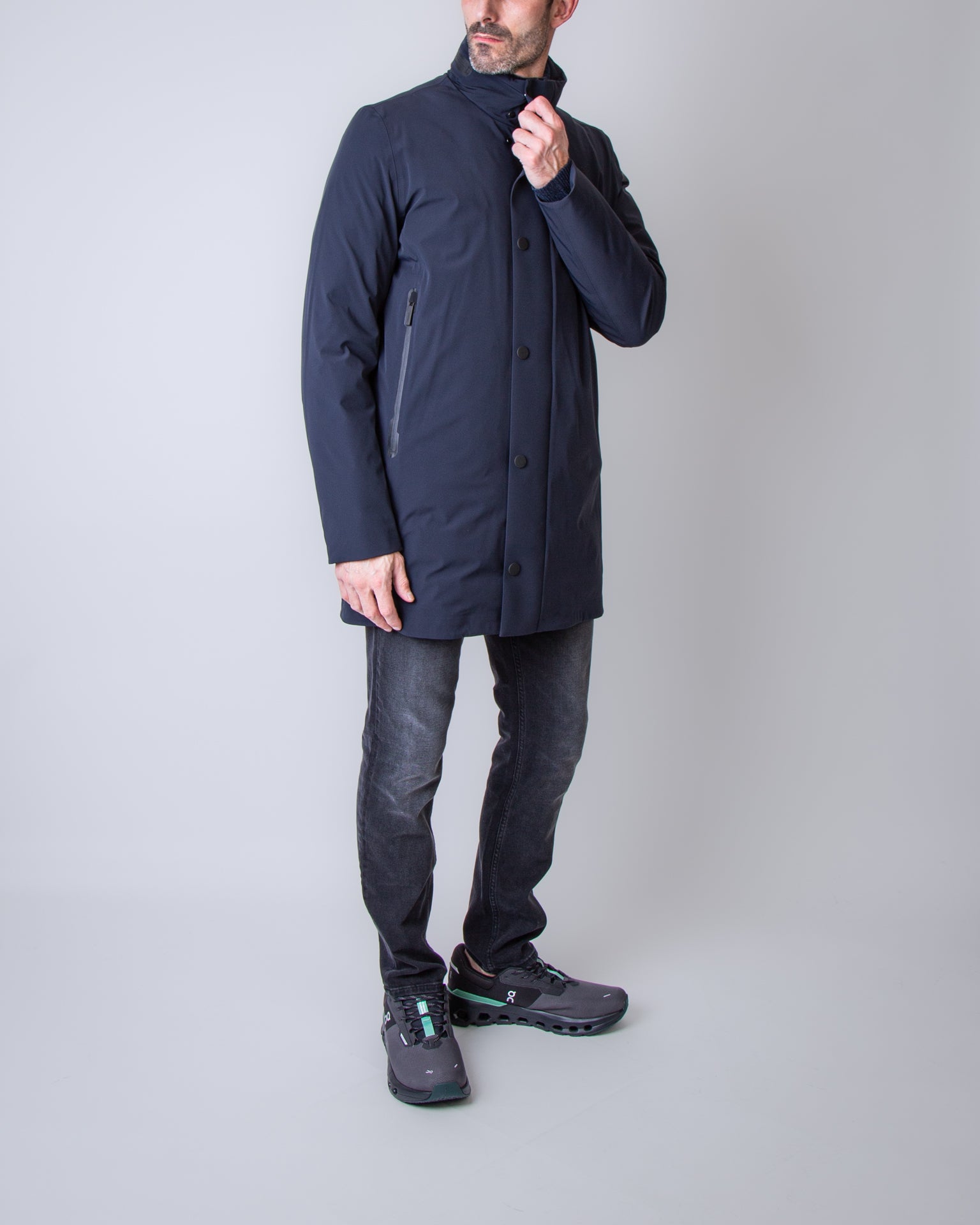 RRD, cappotto uomo W25060 60 blu, montecristo cappotto, raincoat tecnico no cappuccio. Il modello è alto 186 cm e indossa la taglia 52