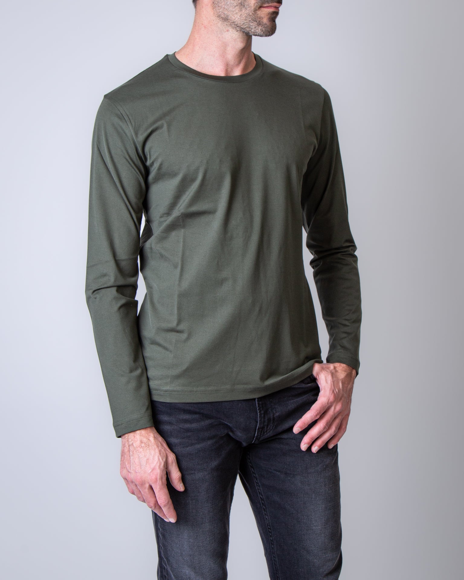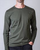 Stefan Brandt, t shirt uomo ENNO LA 30 LIZARD verde, girocollo, manica lunga. Il modello è alto 186 cm e indossa la taglia L