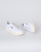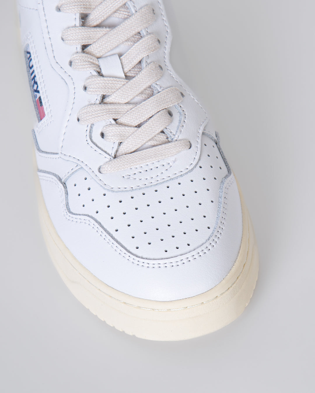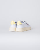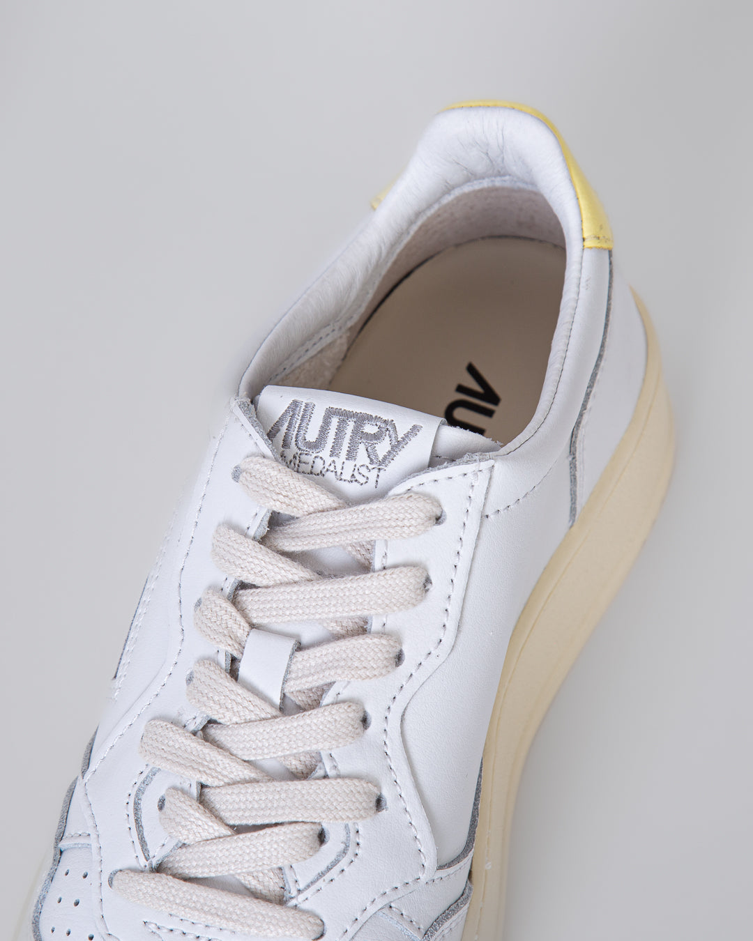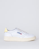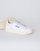 Autry, sneakers donna AULW-LL 09 bianco, medalist in pelle, punta traforata, talloncino colore giallo.