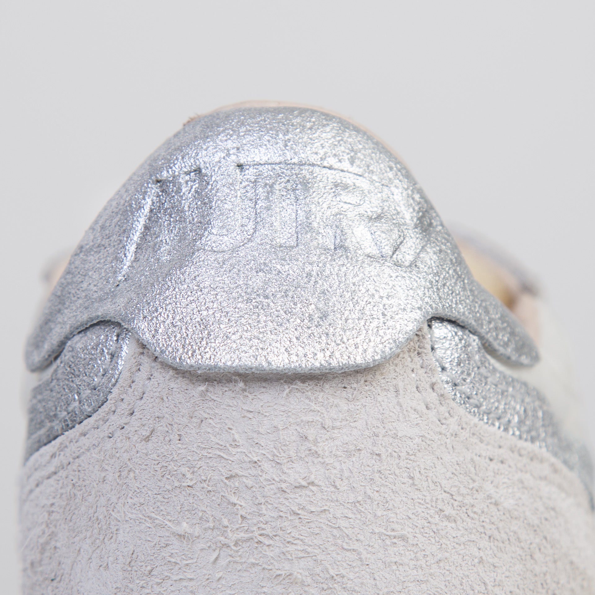 Talloncino in suede con effetto craquele e logo impresso in contrasto.