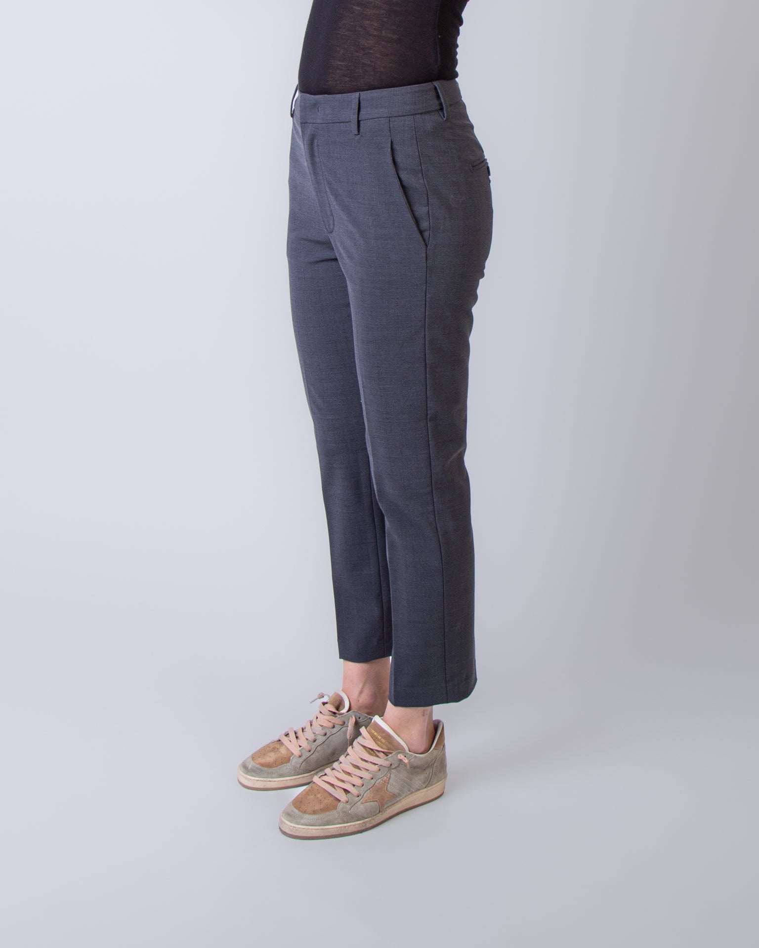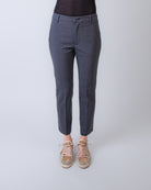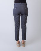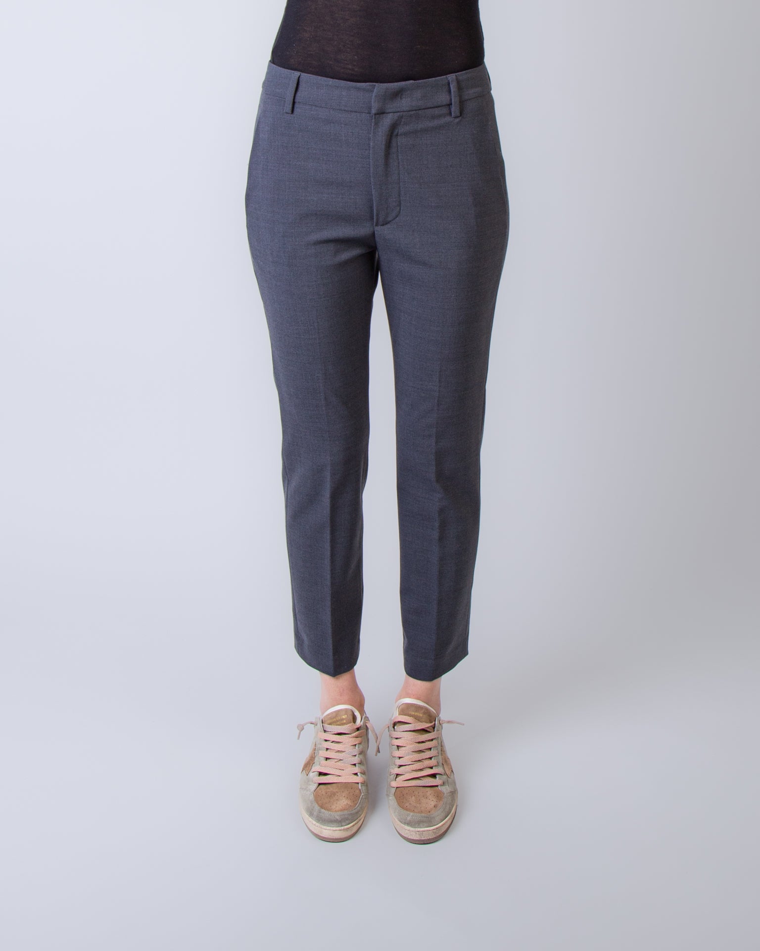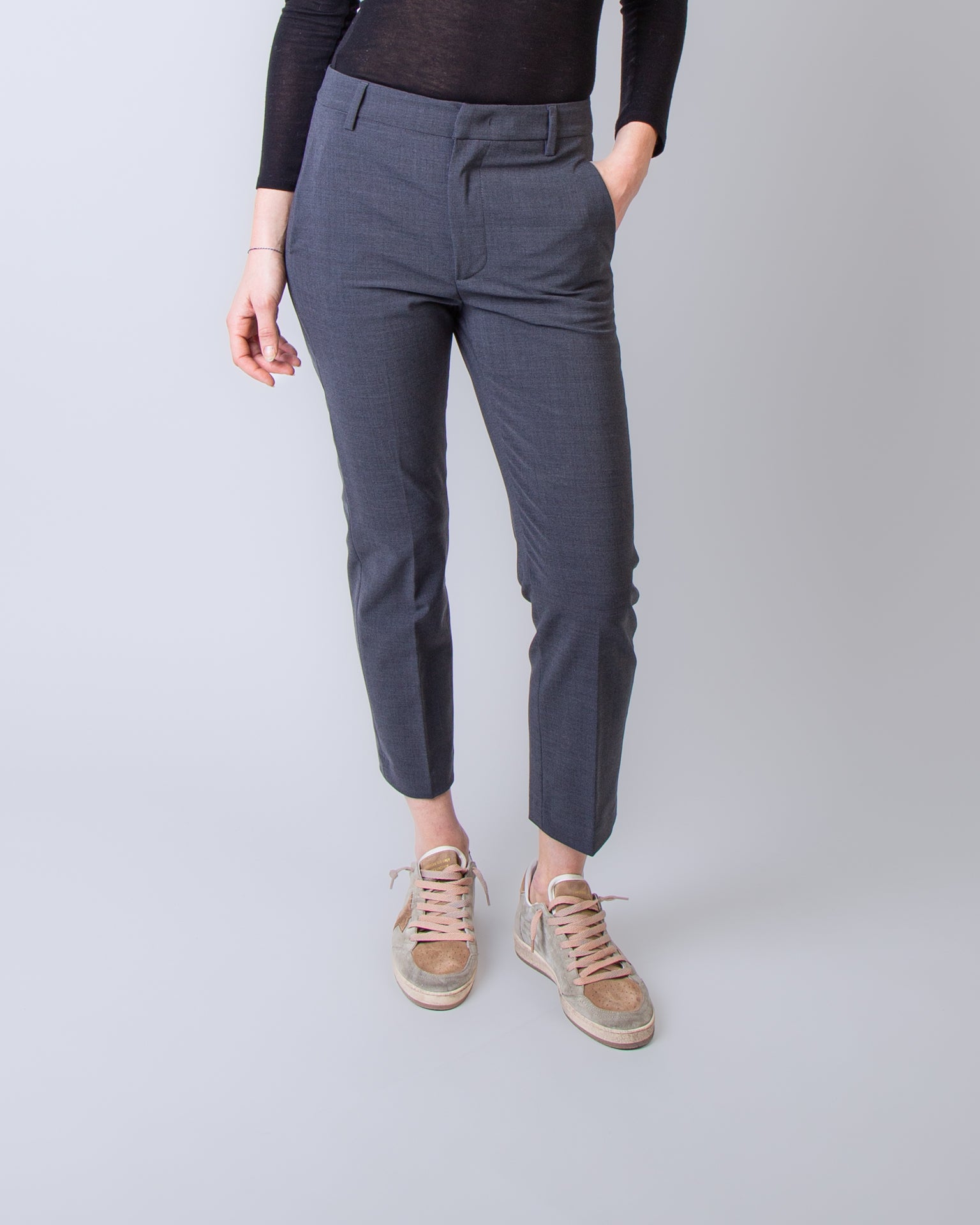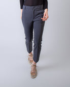Dondup, pantalone donna DP576Z TS0009D XXX 945 grigio, nima zip. La modella è alta 175 cm e indossa una taglia 26