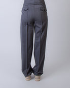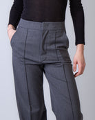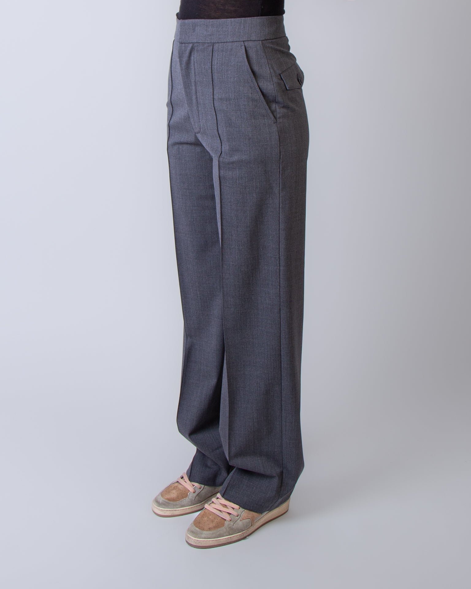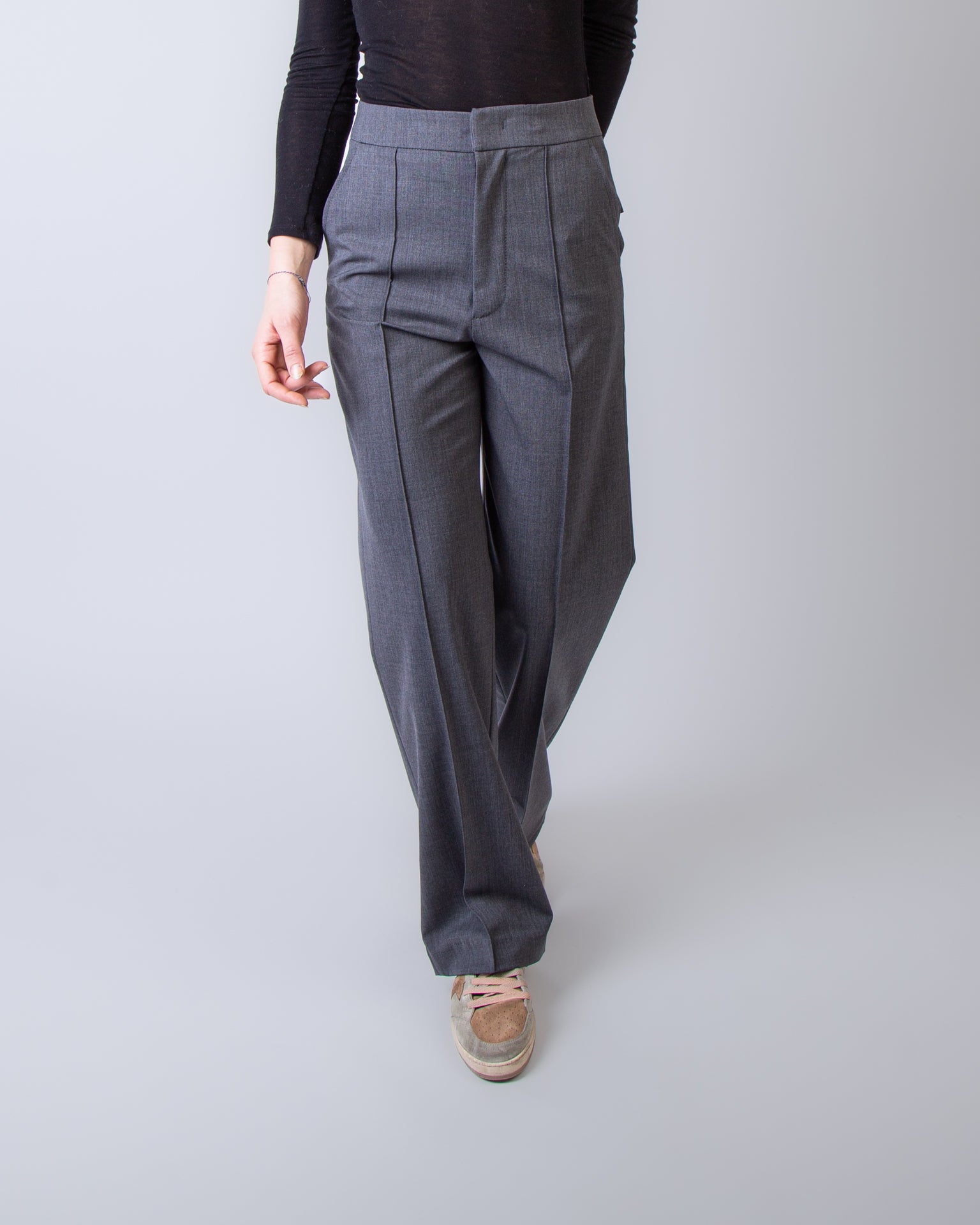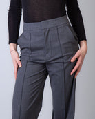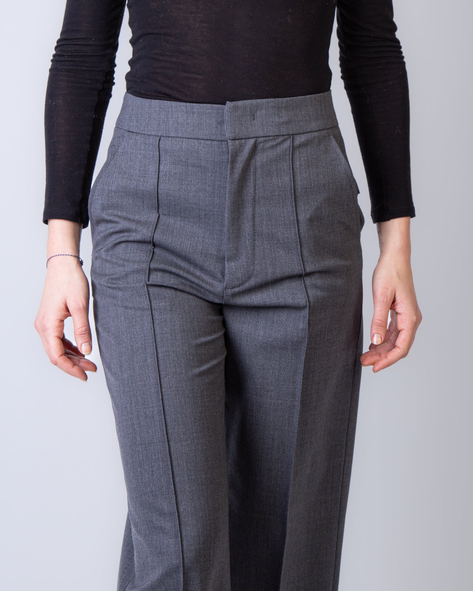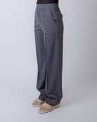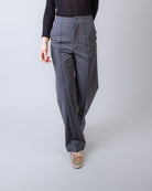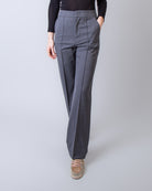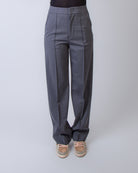 Dondup, pantalone donna DP841 WS0115D XXX 909 grigio, modello penni. La modella è alta 175 cm e indossa una taglia 38