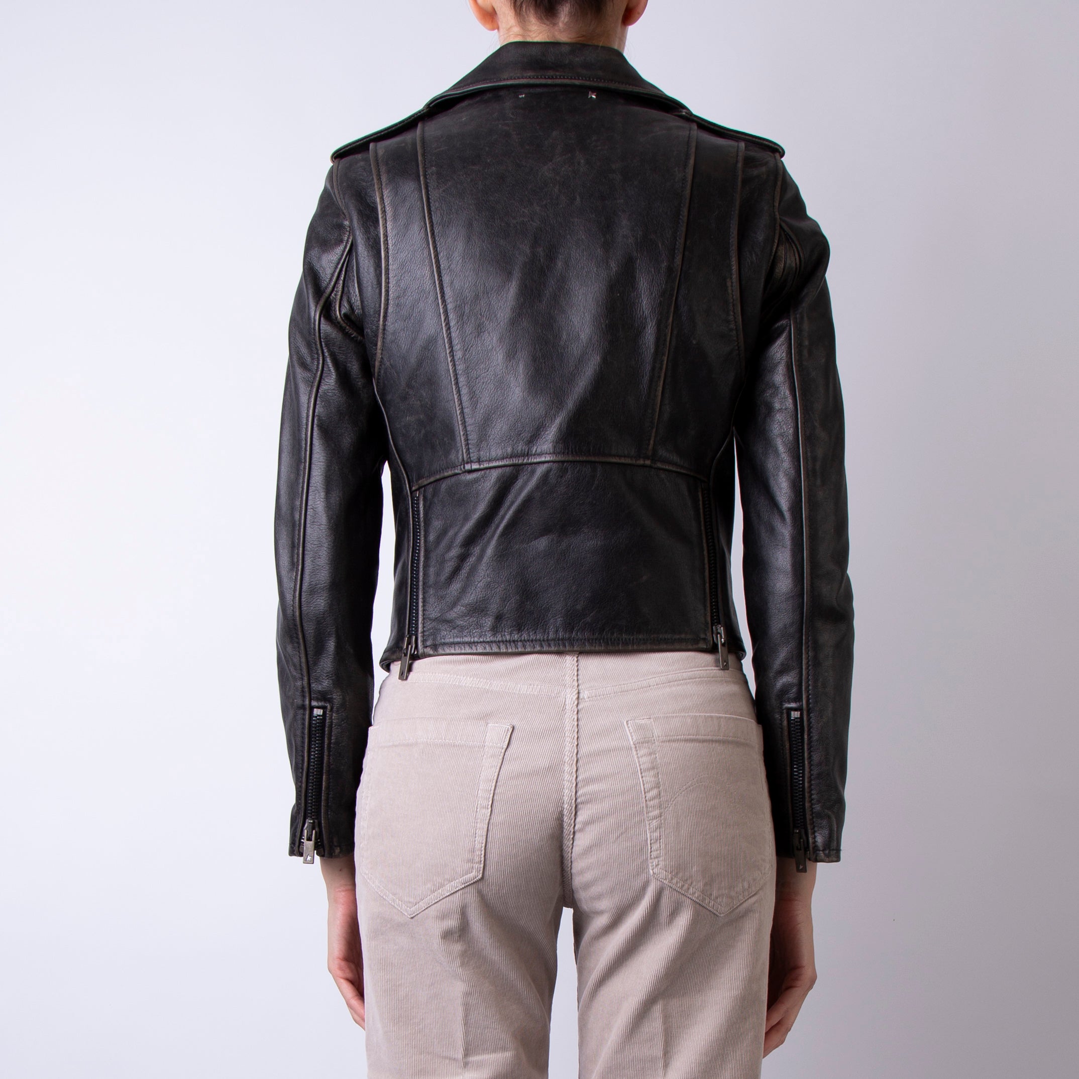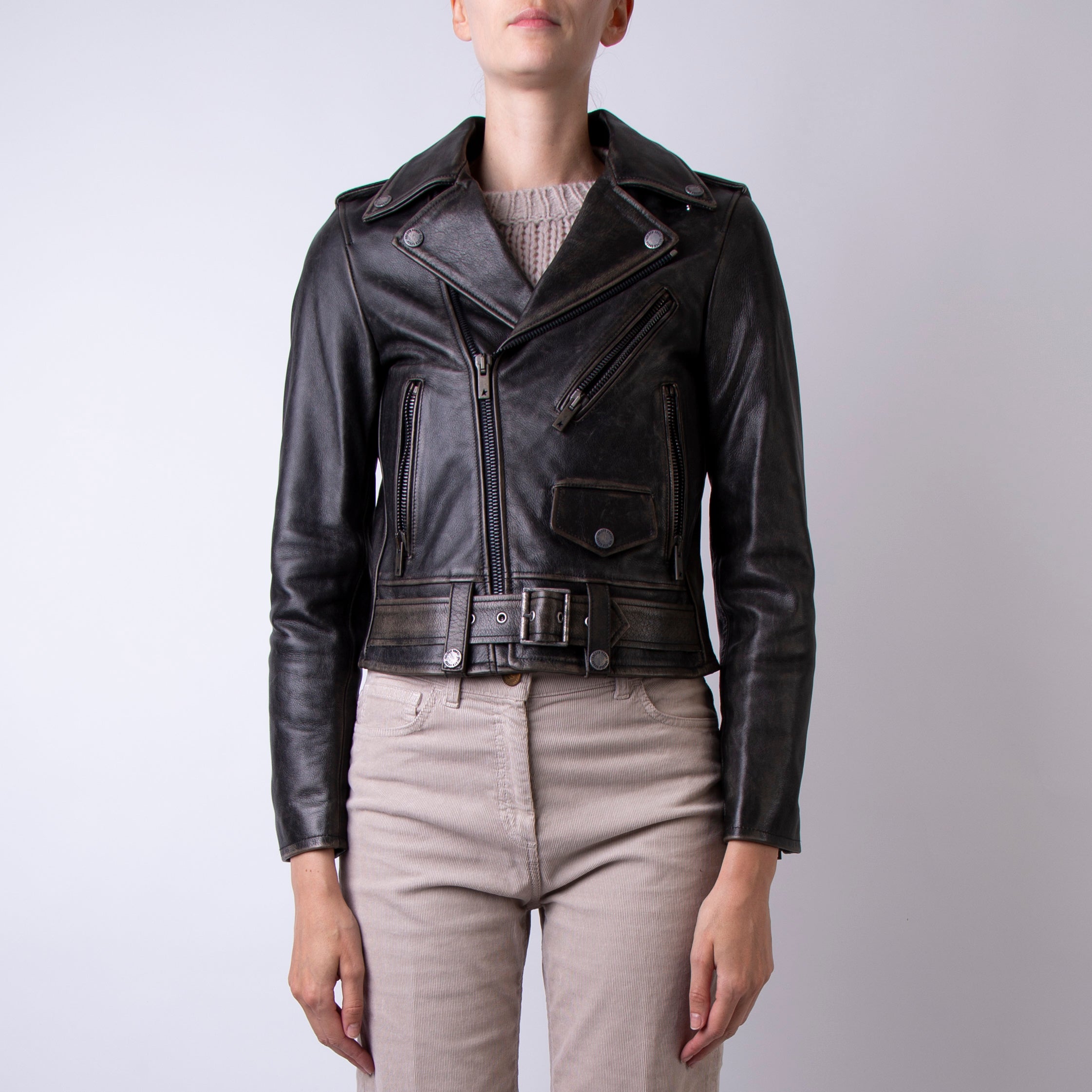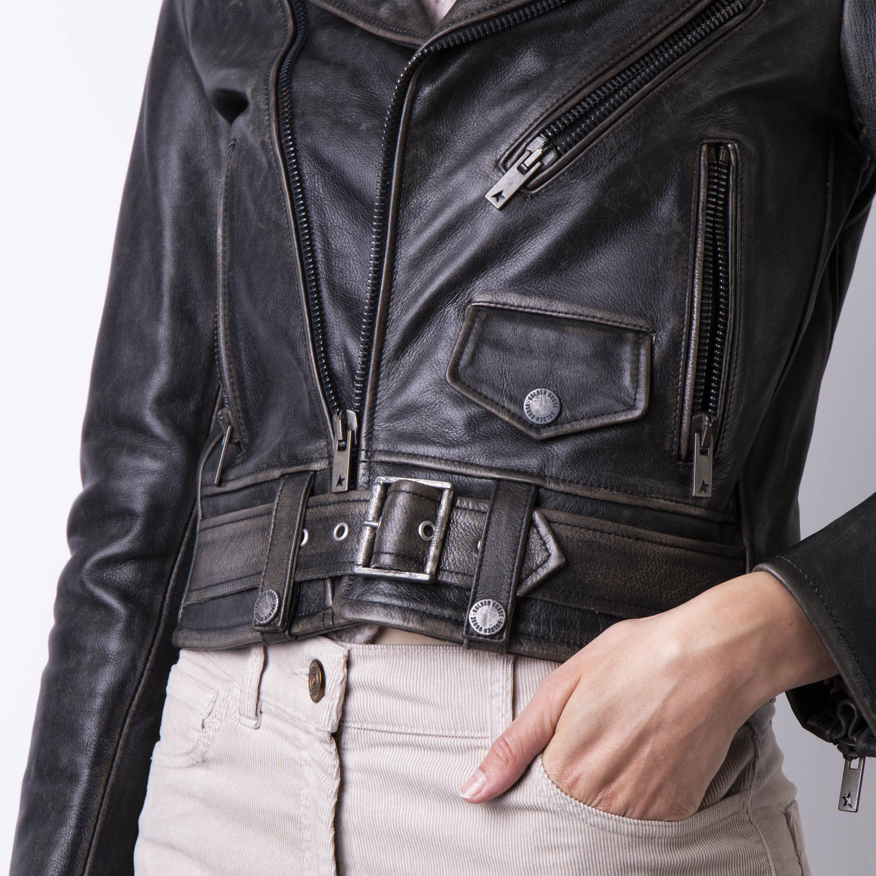 Una collezione che racchiude il nostro DNA, unico e senza tempo, pensata per restare ogni giorno al tuo fianco, tra alti e bassi, sotto il sole o la pioggia. In pelle di toro come da nostra tradizione, questo chiodo dal fit slim da donna è caratterizzato dal trattamento distressed. E come tocco finale, la fodera interna con stampa animalier.