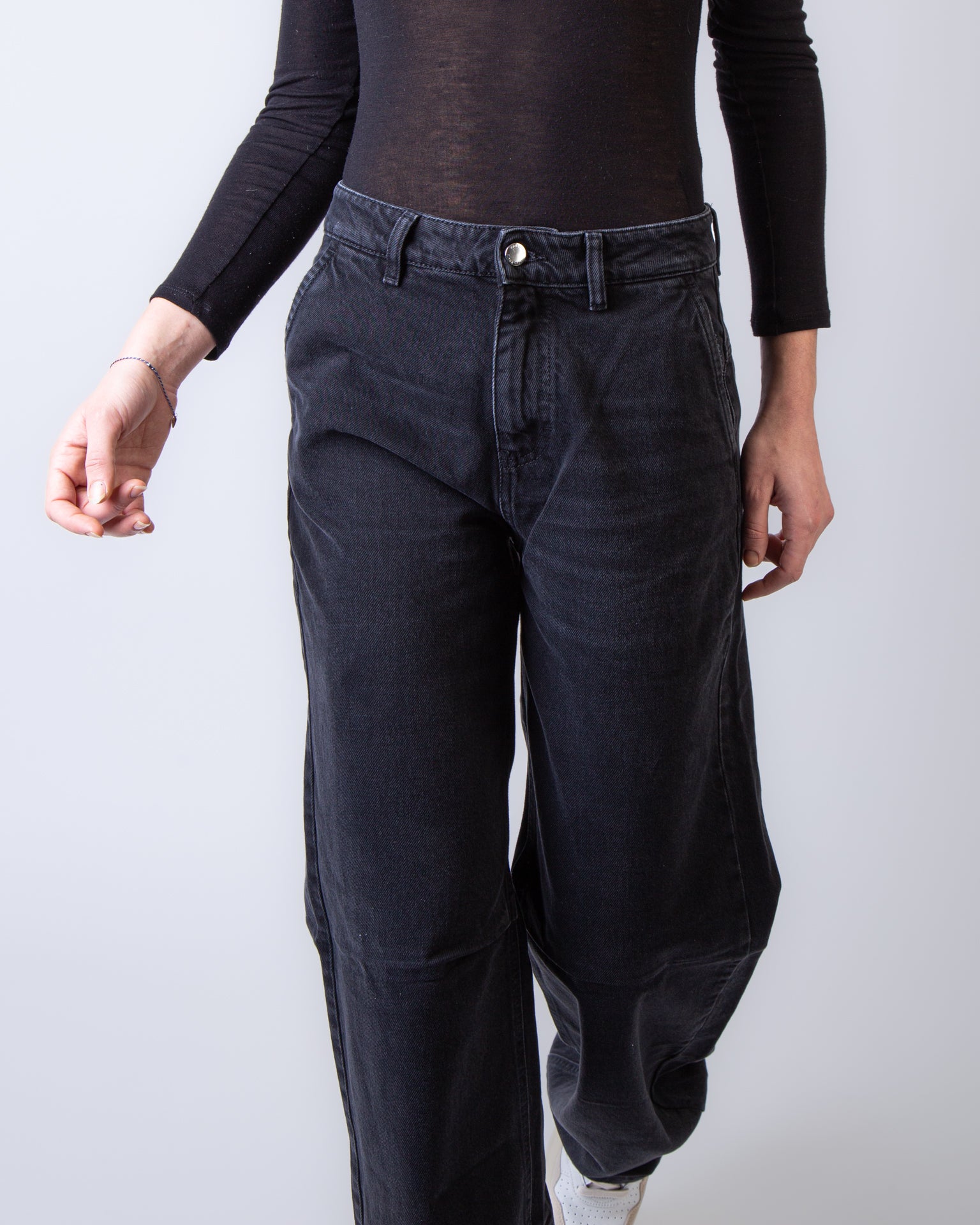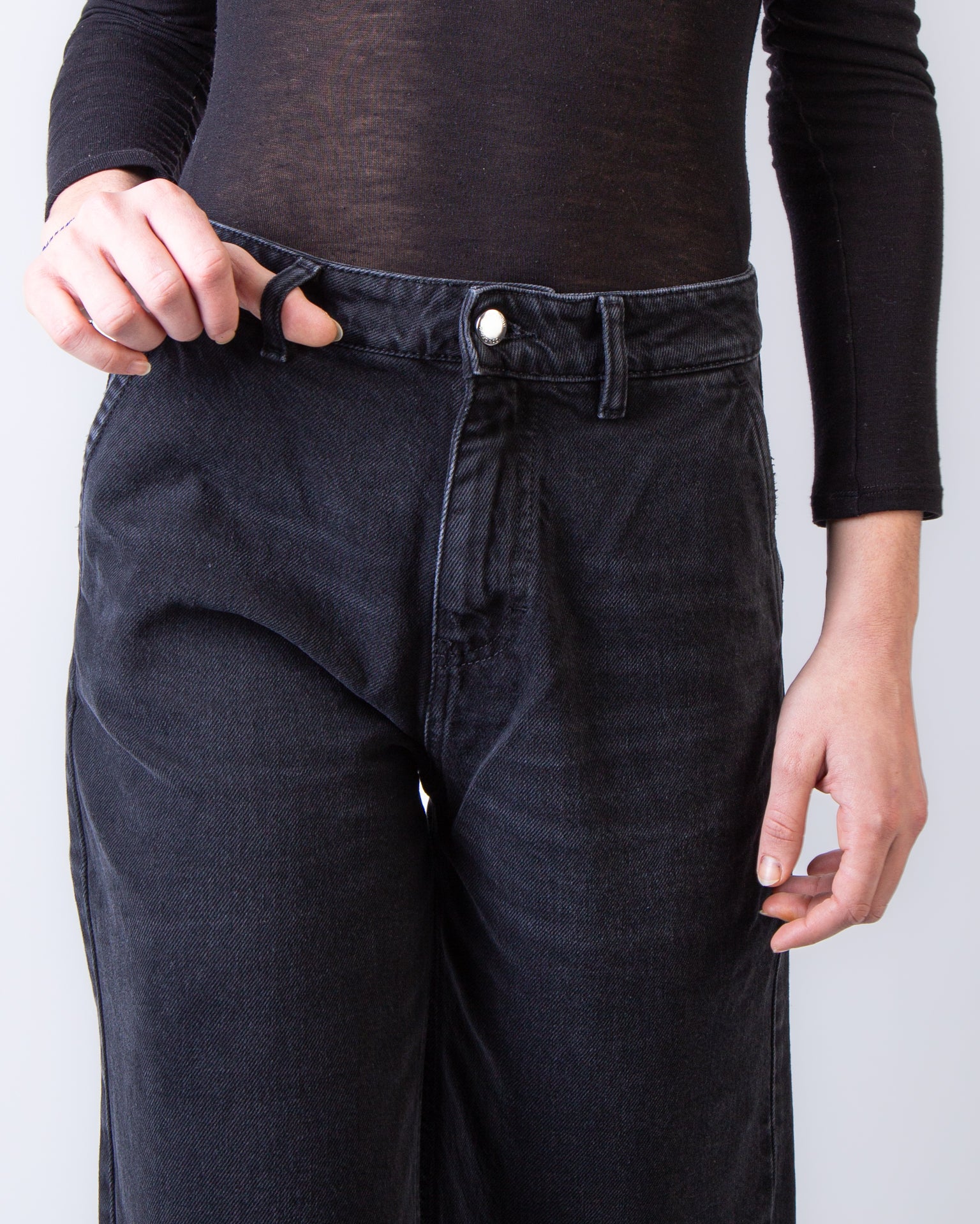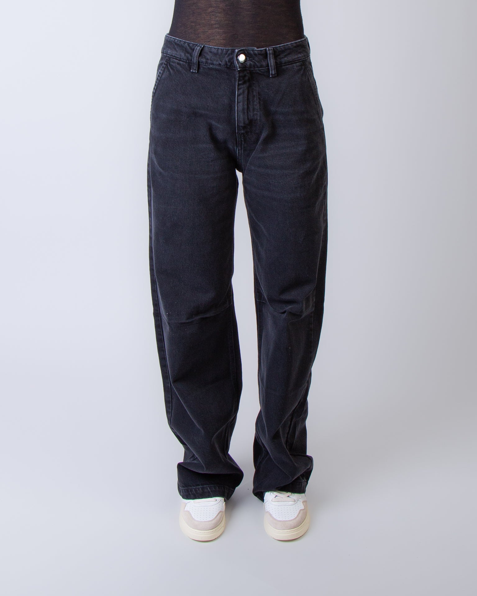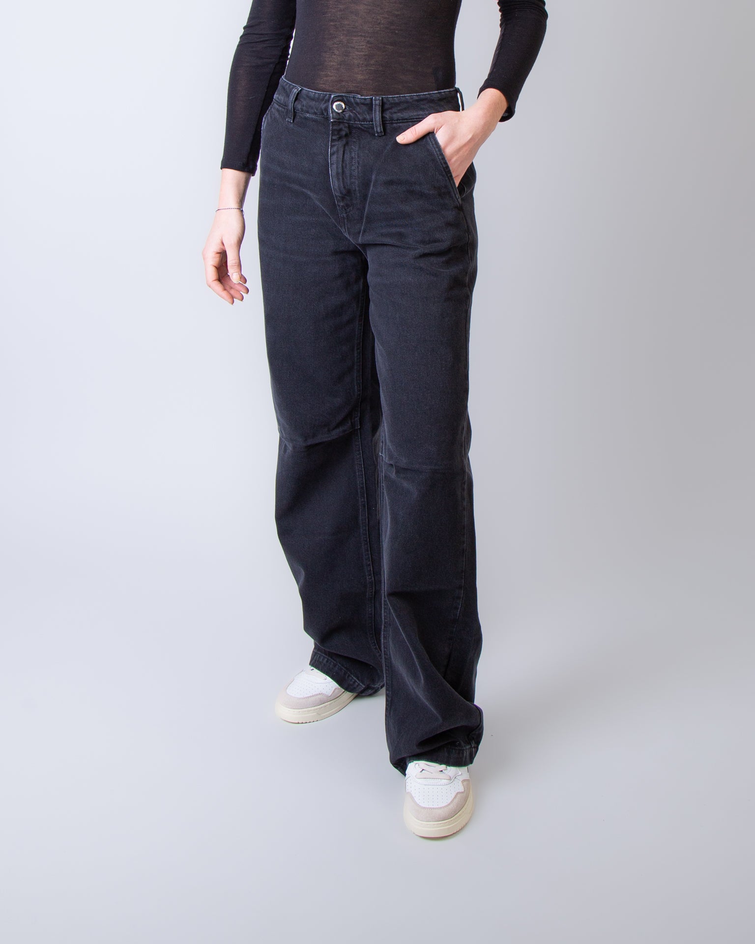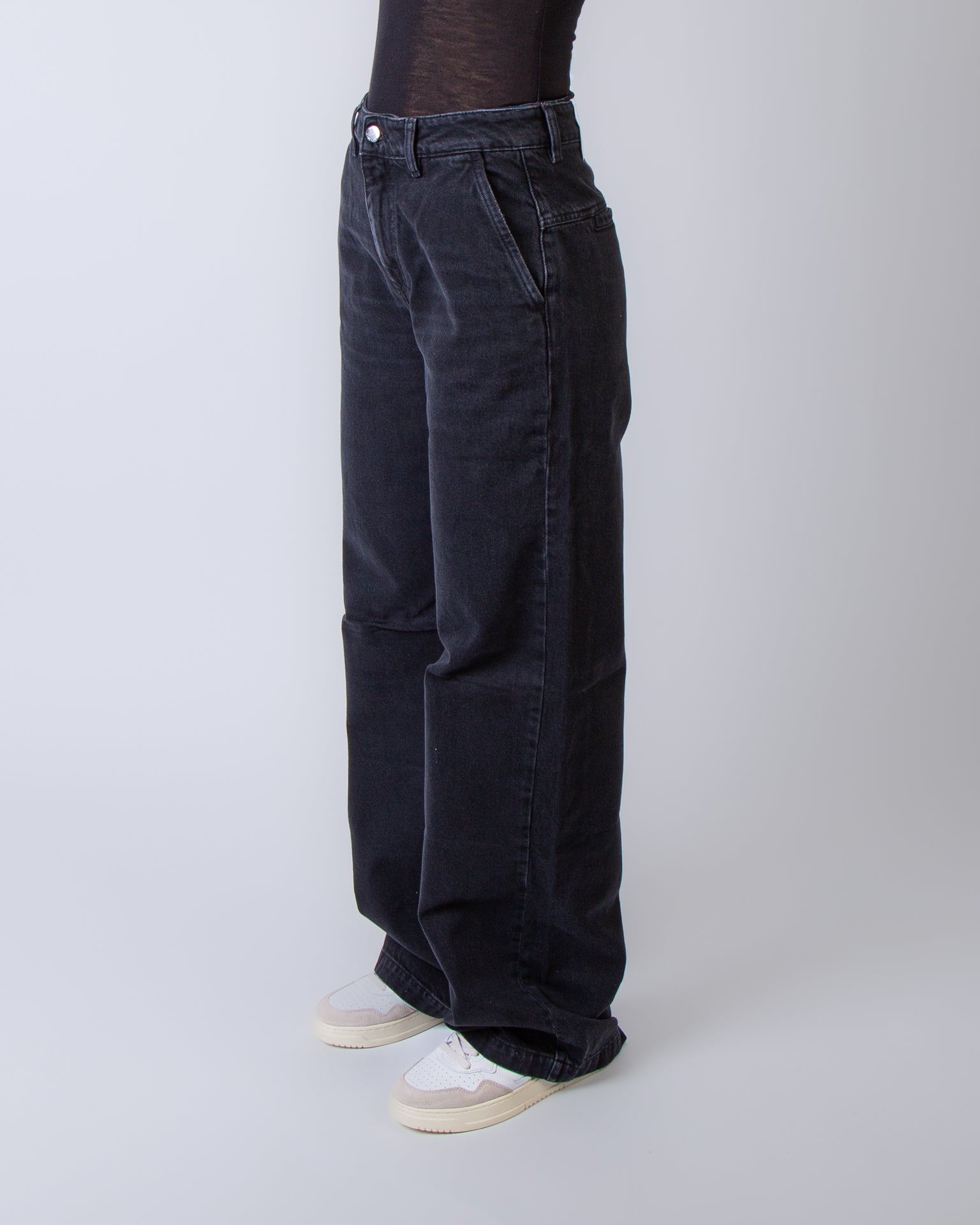Icon Denim, jeans donna AVA GR8764GREY grigio, denim, vestibilità over, passabtu per cintura. La modella è alta 175 cm e indossa una taglia 26