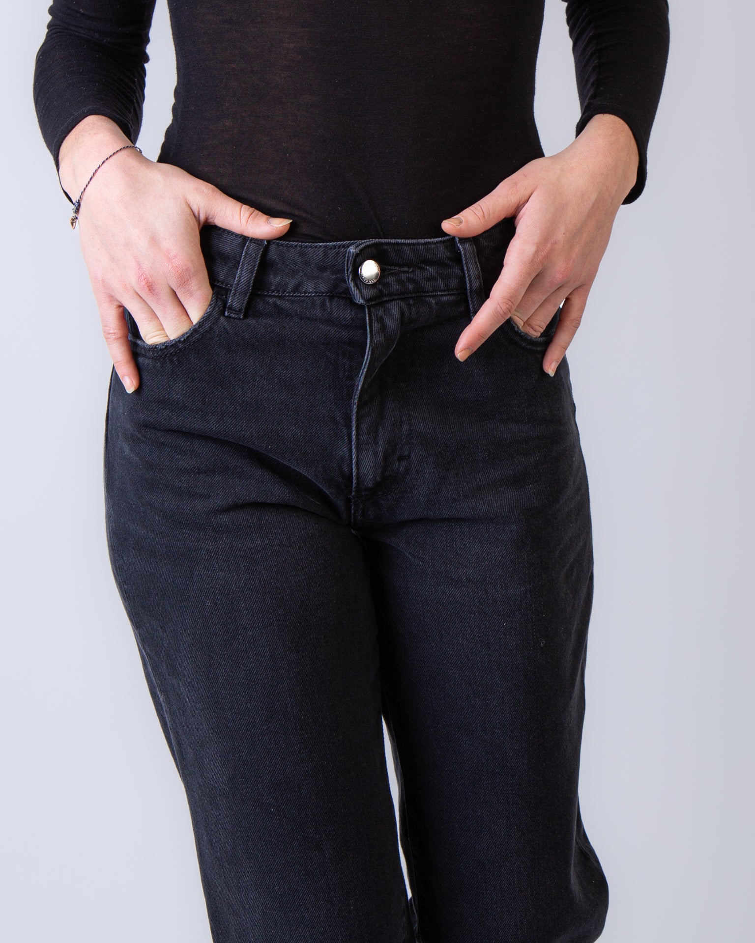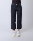 Icon Denim, jeans donna JILL GR1025 GRAPHITE grigio, denim, passanti per cintura. La modella è alta 175 cm e indossa una taglia 26
