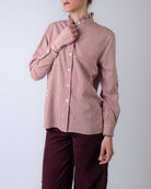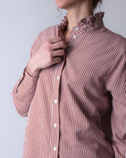 Vanessabruno, camicia donna 4HVA88 V09112 123 rosso, modello sidney. La modella è alta 175 cm e indossa una taglia 38