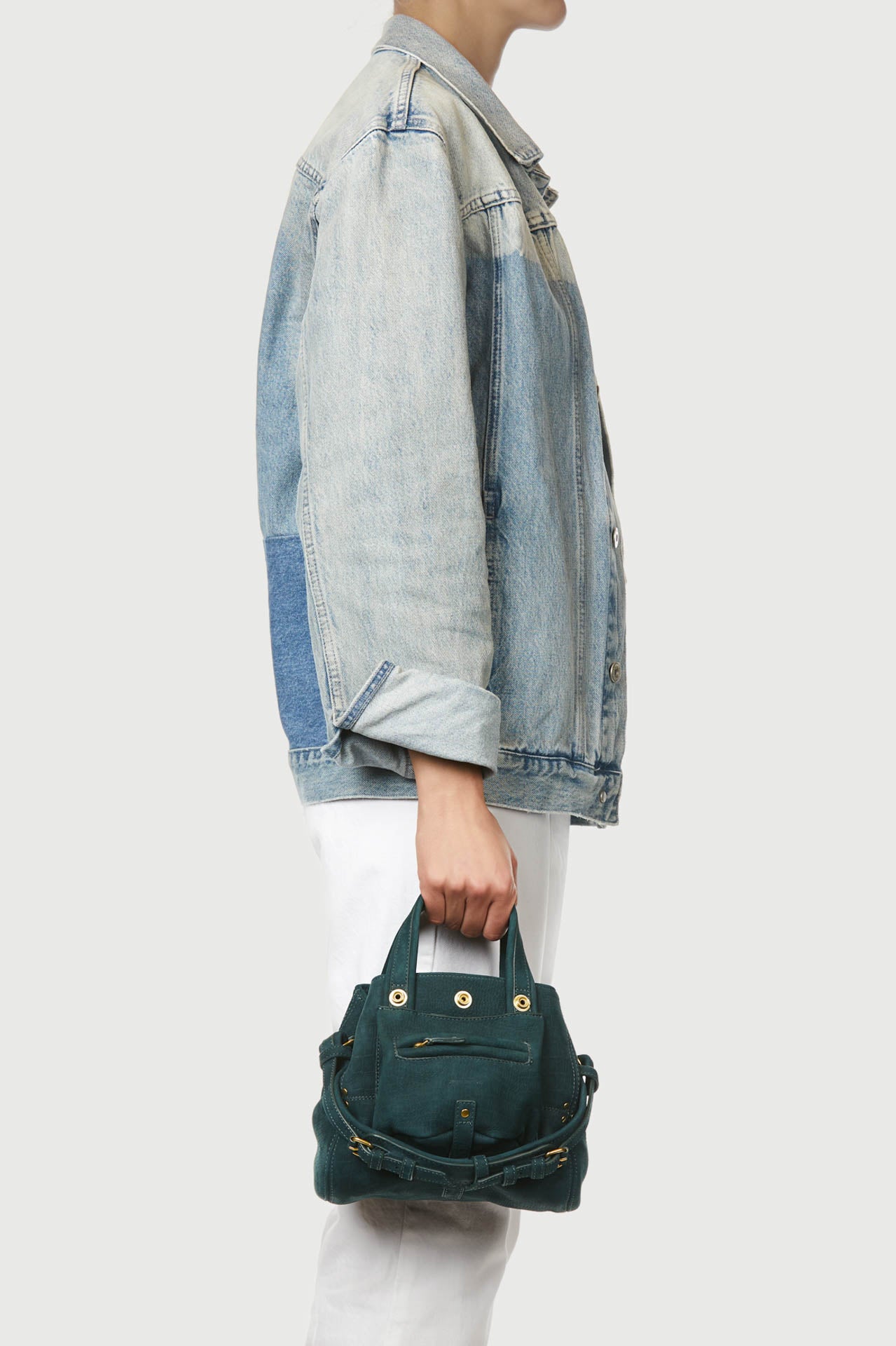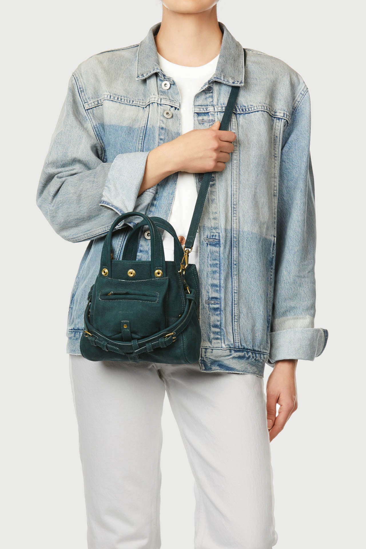 Mini borsa a tracolla, portata a mano.