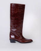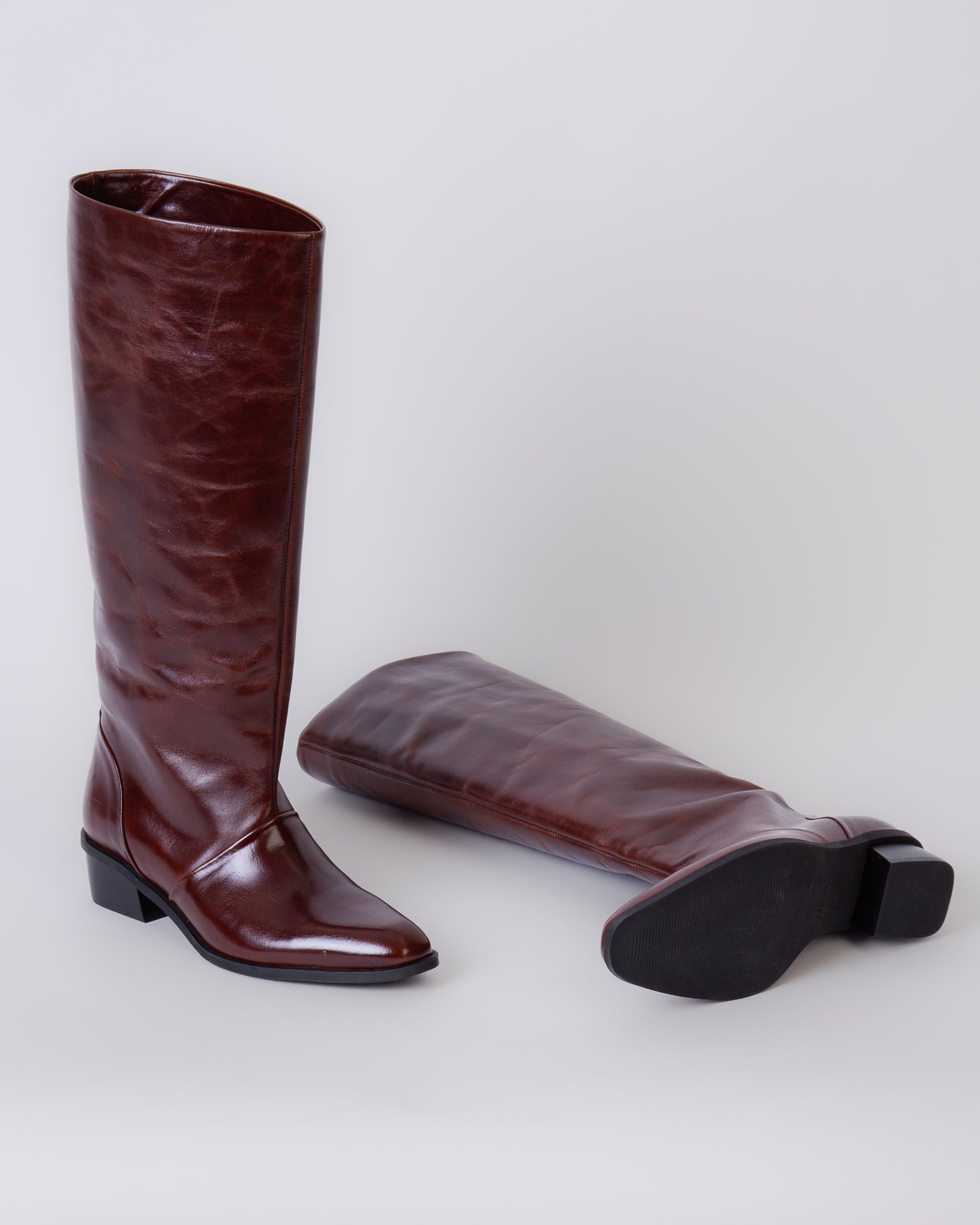 Augusta, stivale donna SARAH CHOCAOLATE marrone, tomaia in pelle con tacchetto. La scarpa scattata è una taglia 38