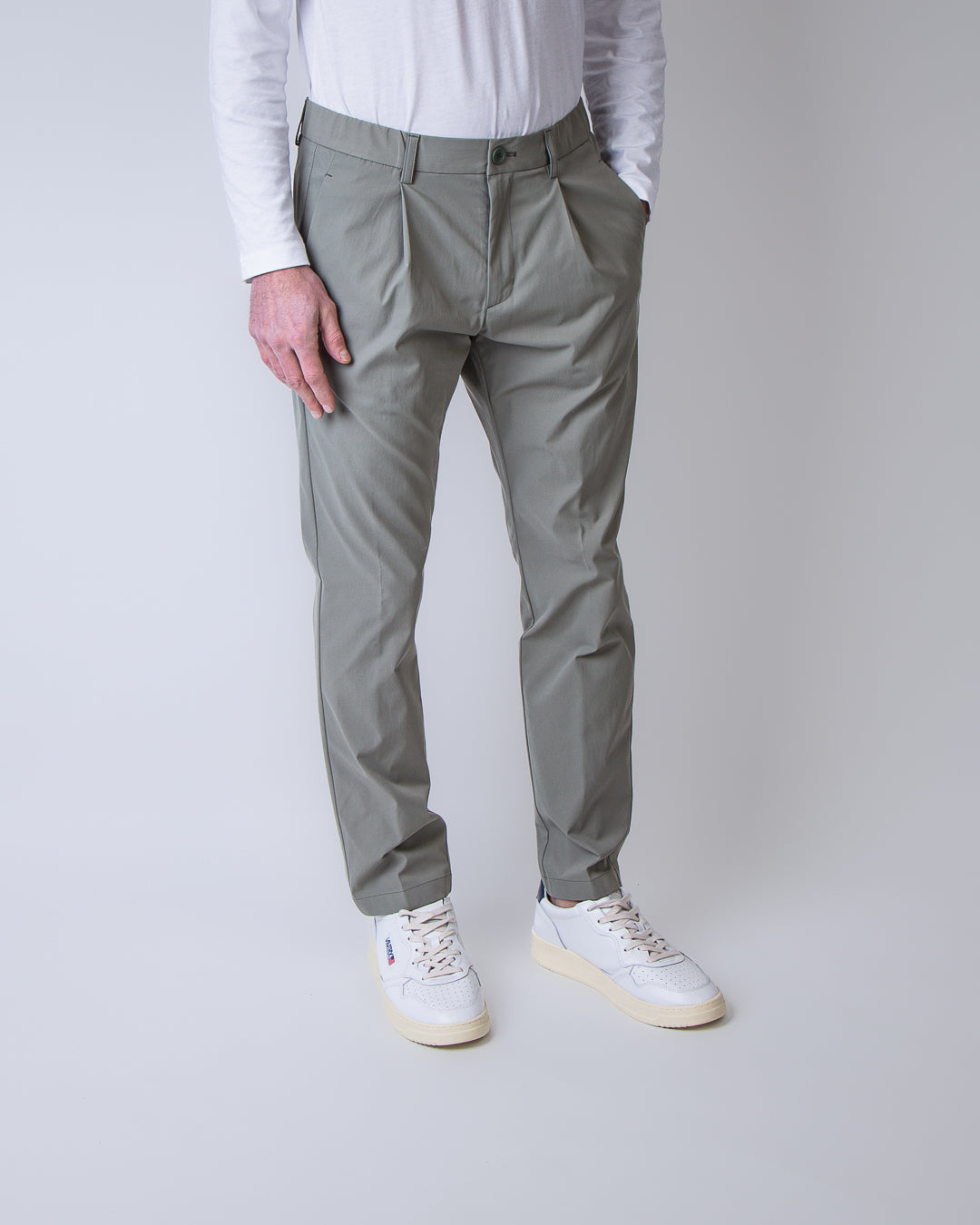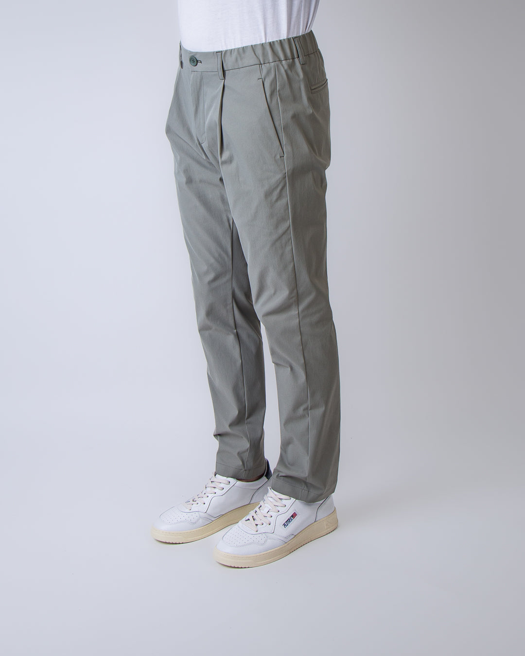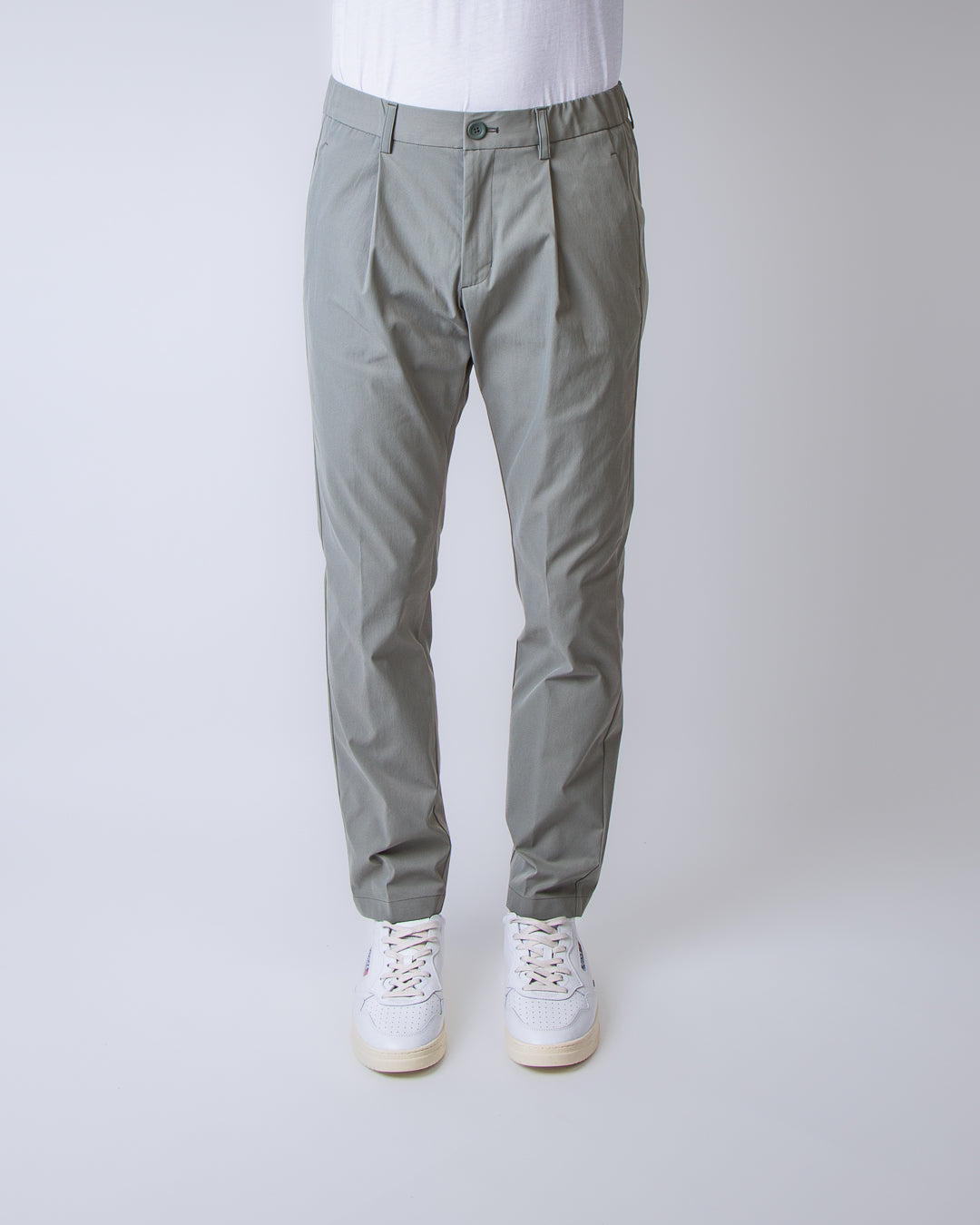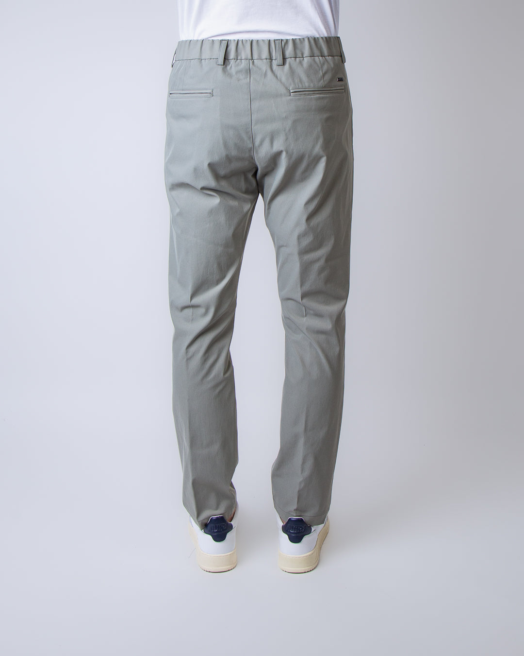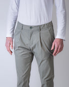 Herno, men's trousers PT000091U 12531 7290 sage, technical gabardine. The model is 186 cm tall and wears size M.