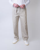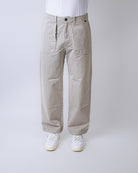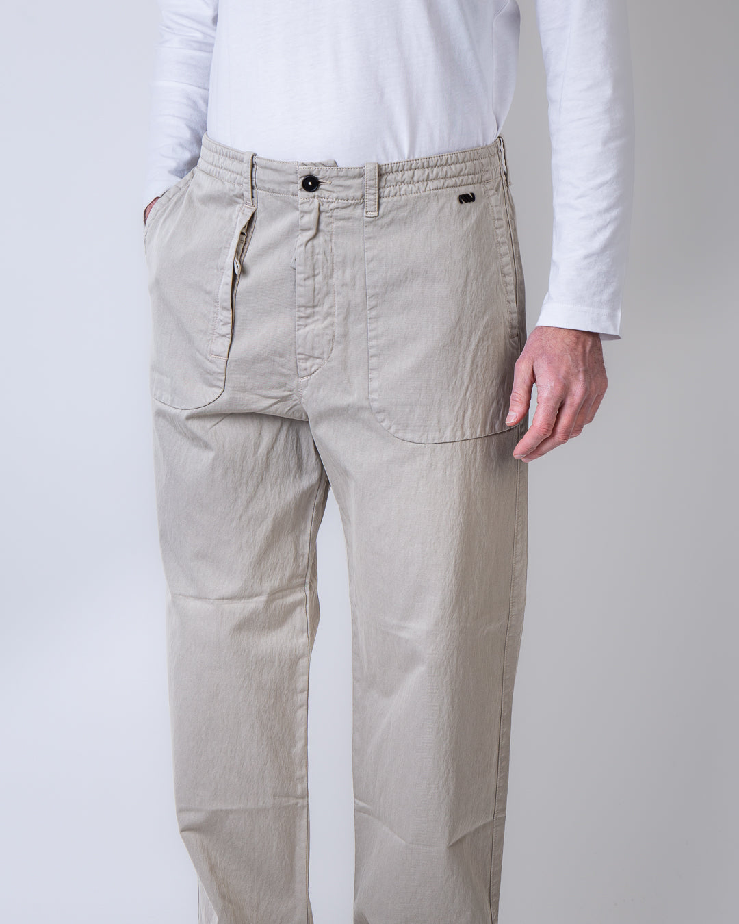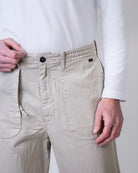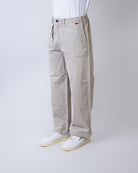 Massimo Osti Studio, men's trousers 20MPA103A 110500G 310 beige, fatigue cotton solar gabardine. The model is 186 cm tall and wears a size 48.