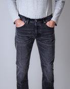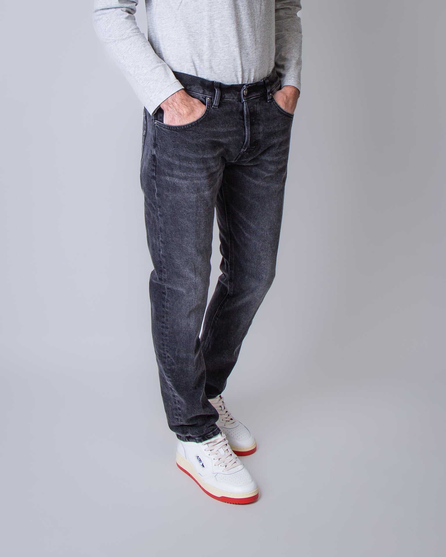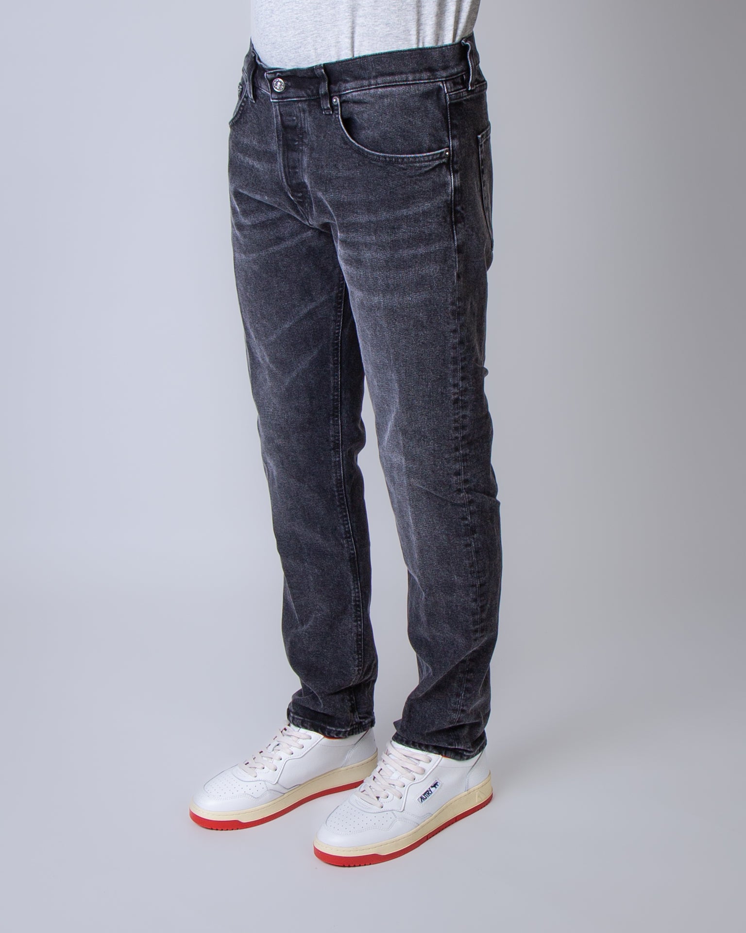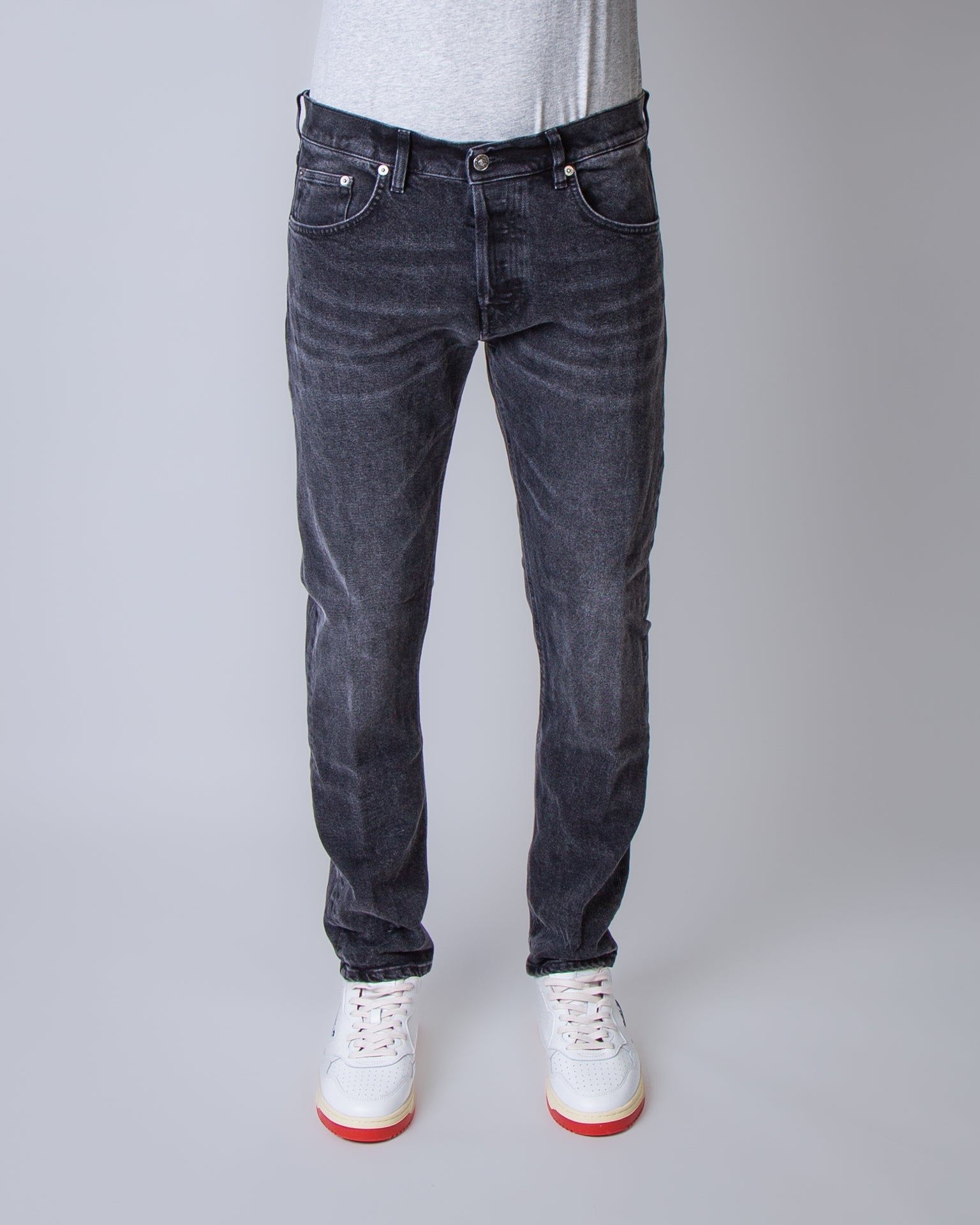 Dondup, men's jeans UP563 DS0369 LM5 999 black, icon black wash. The model is 186 cm tall and wears a size 34.