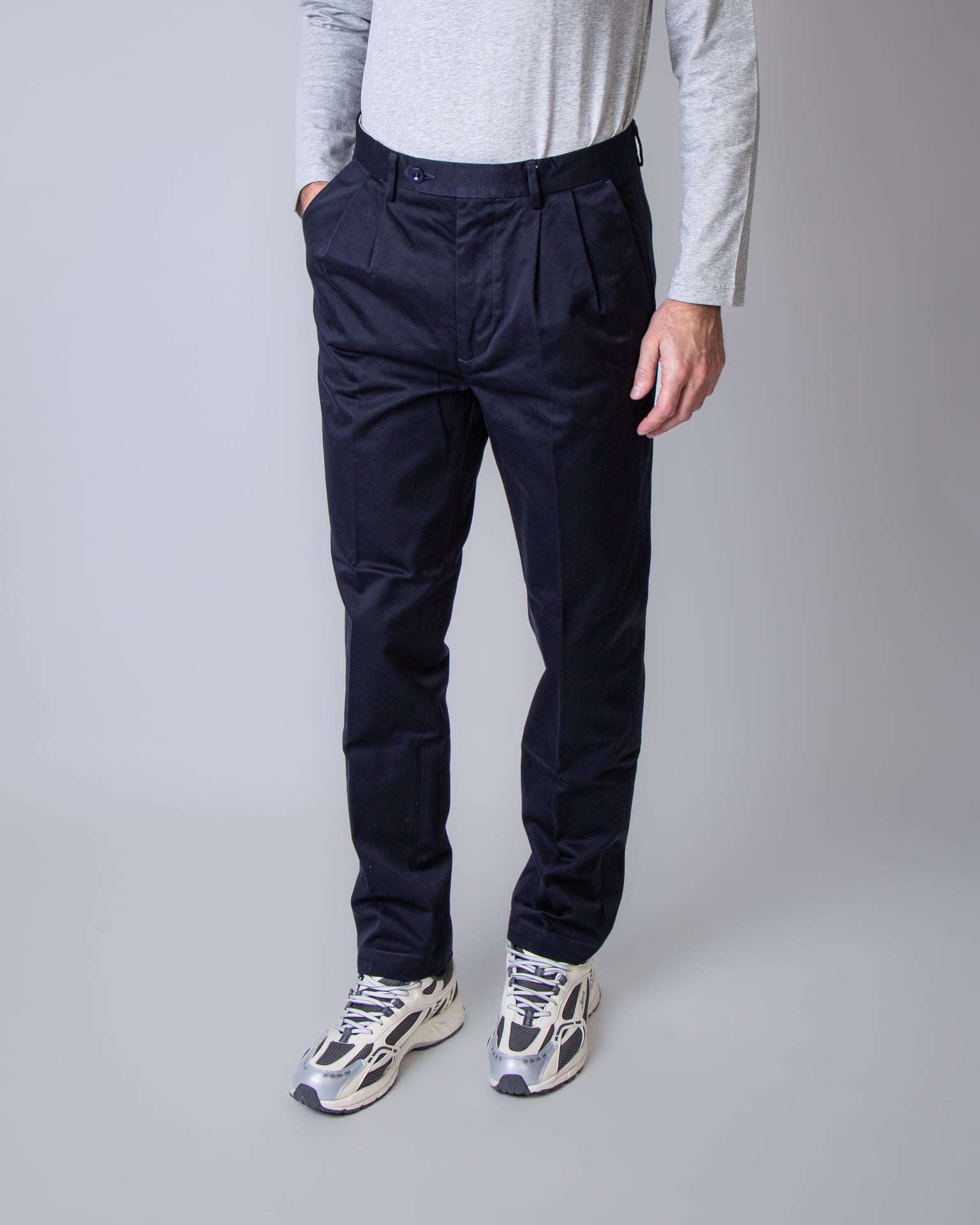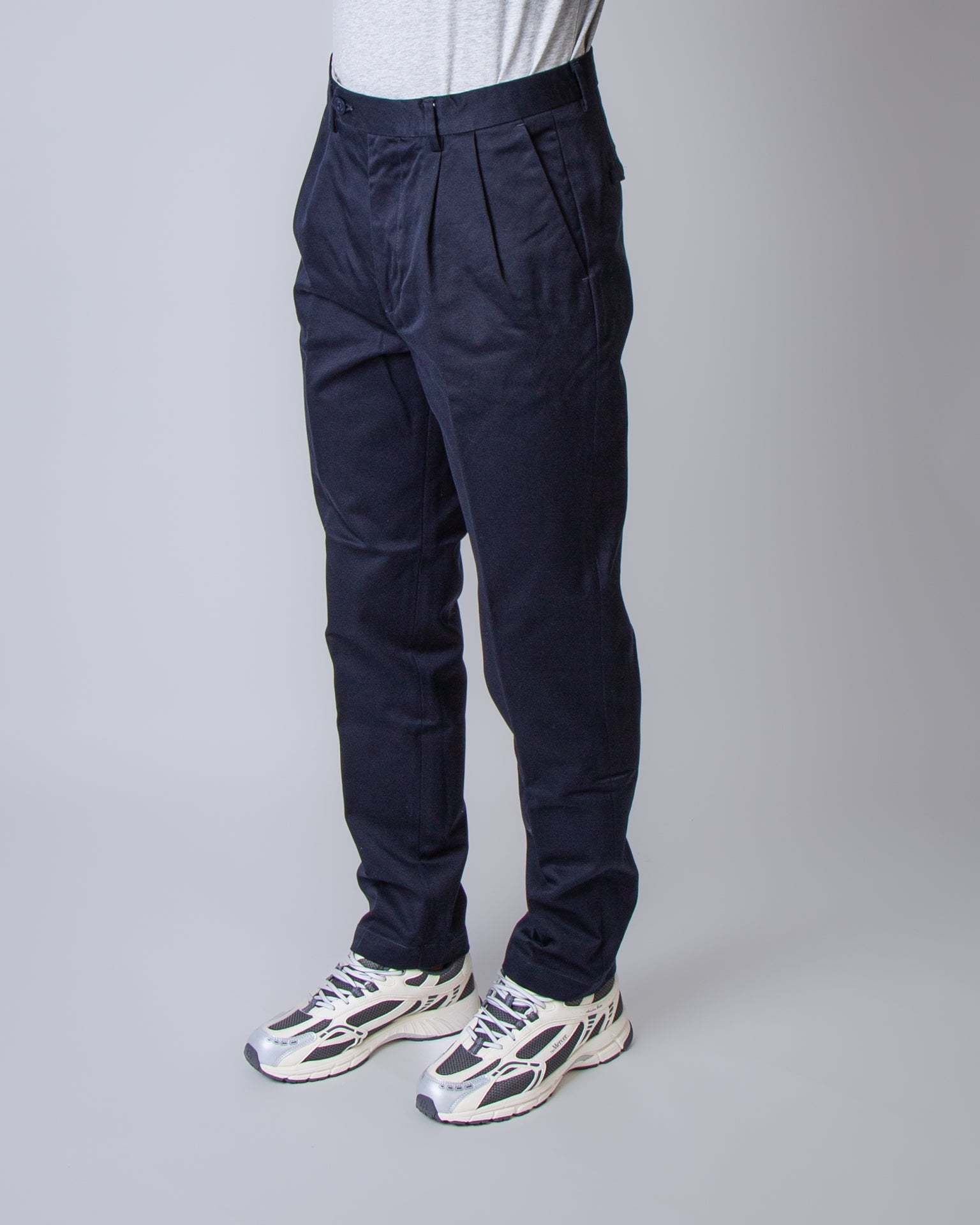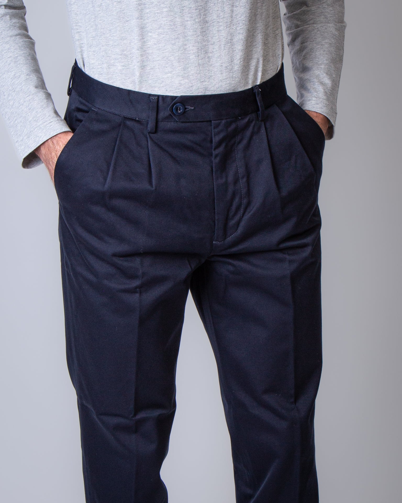 East Harbour Surplus, men's MARTIN 121 NAVY blue trousers, double pleat double twisted gabardine, 100% cotton.
