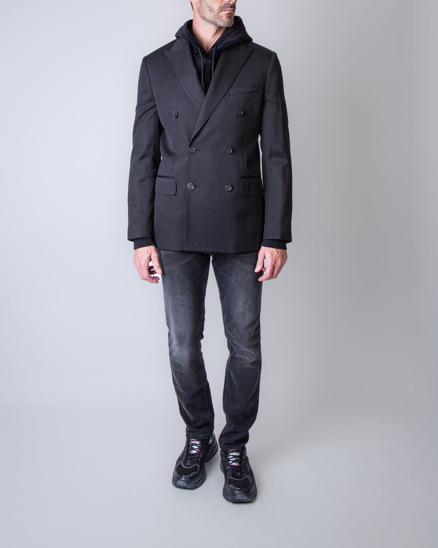 Golden Goose, men's jacket GMP00835.P001521 90100 black, double-breasted, 100% virgin wool.