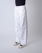 Department 5, women's jeans DP552 1DS0004 002 001 white, wide leg. The model is 175 cm tall and wears a size 26.