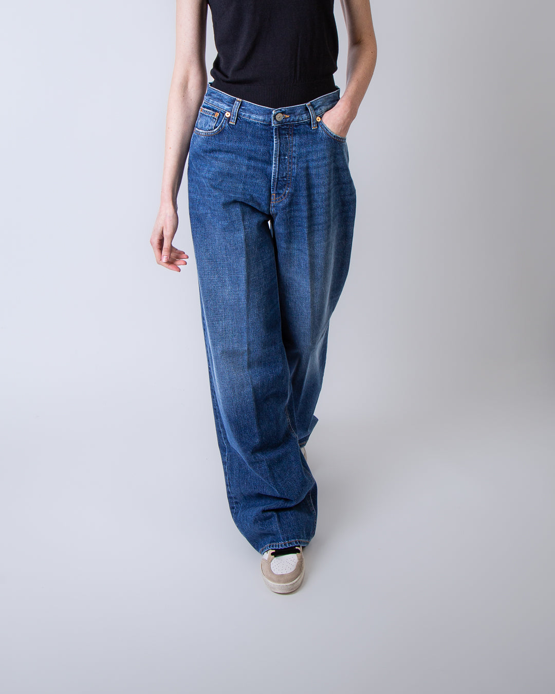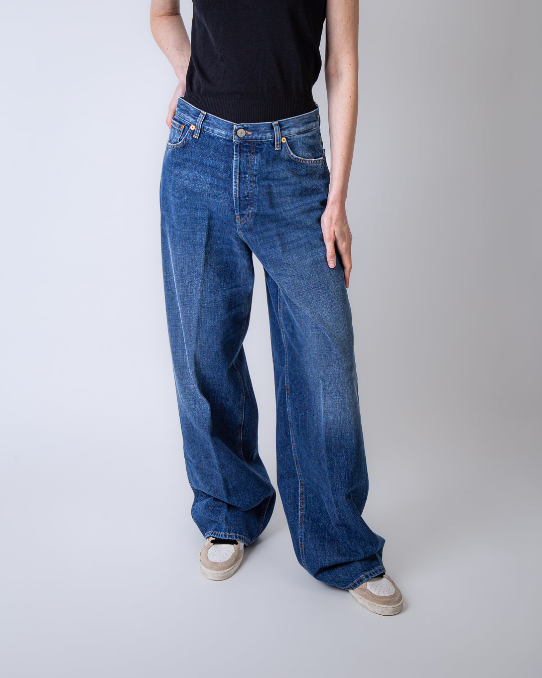 Dondup women's jeans DP849 DF0283 MA9 800 blue, Dakota model. The model is 175 cm tall and wears a size 26.