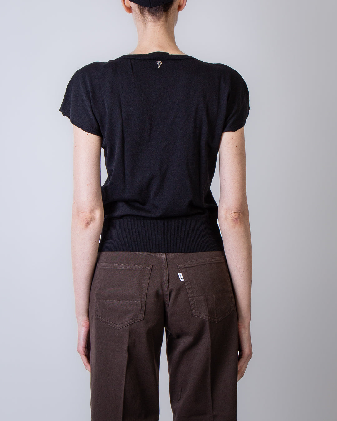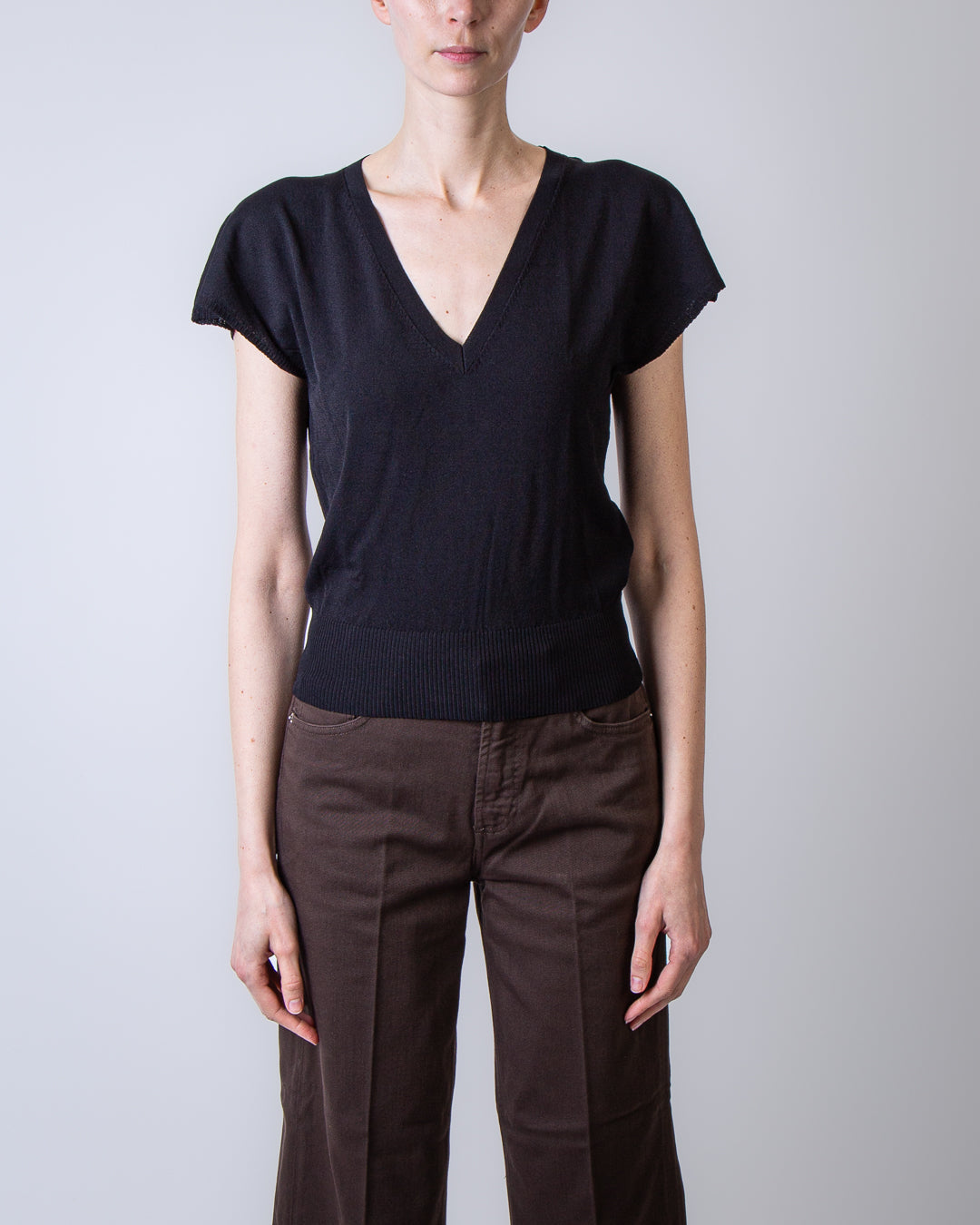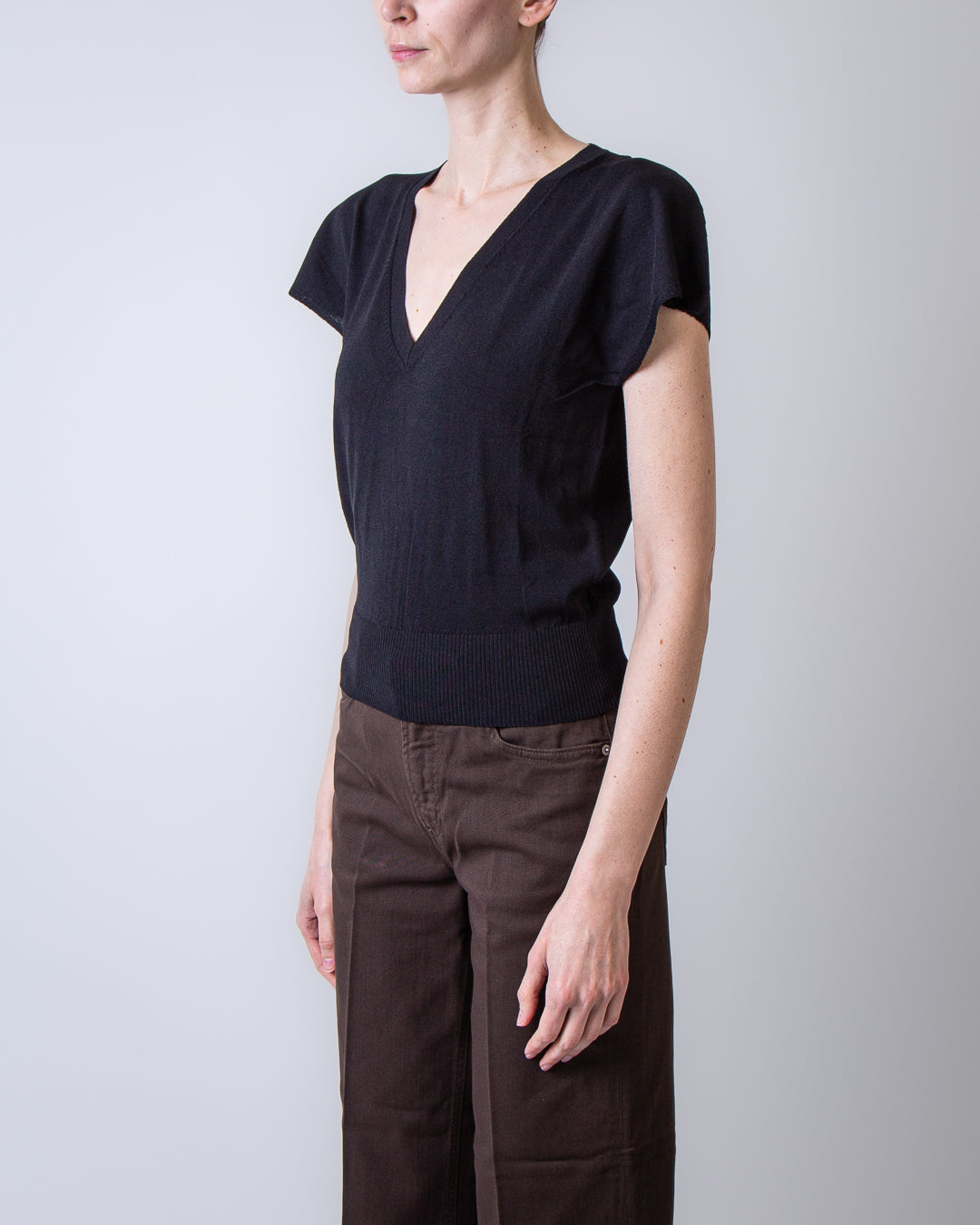 Dondup, women's sweater DT423 M01004D 002 999 black, v-neck. The model is 175cm tall and wears size 42