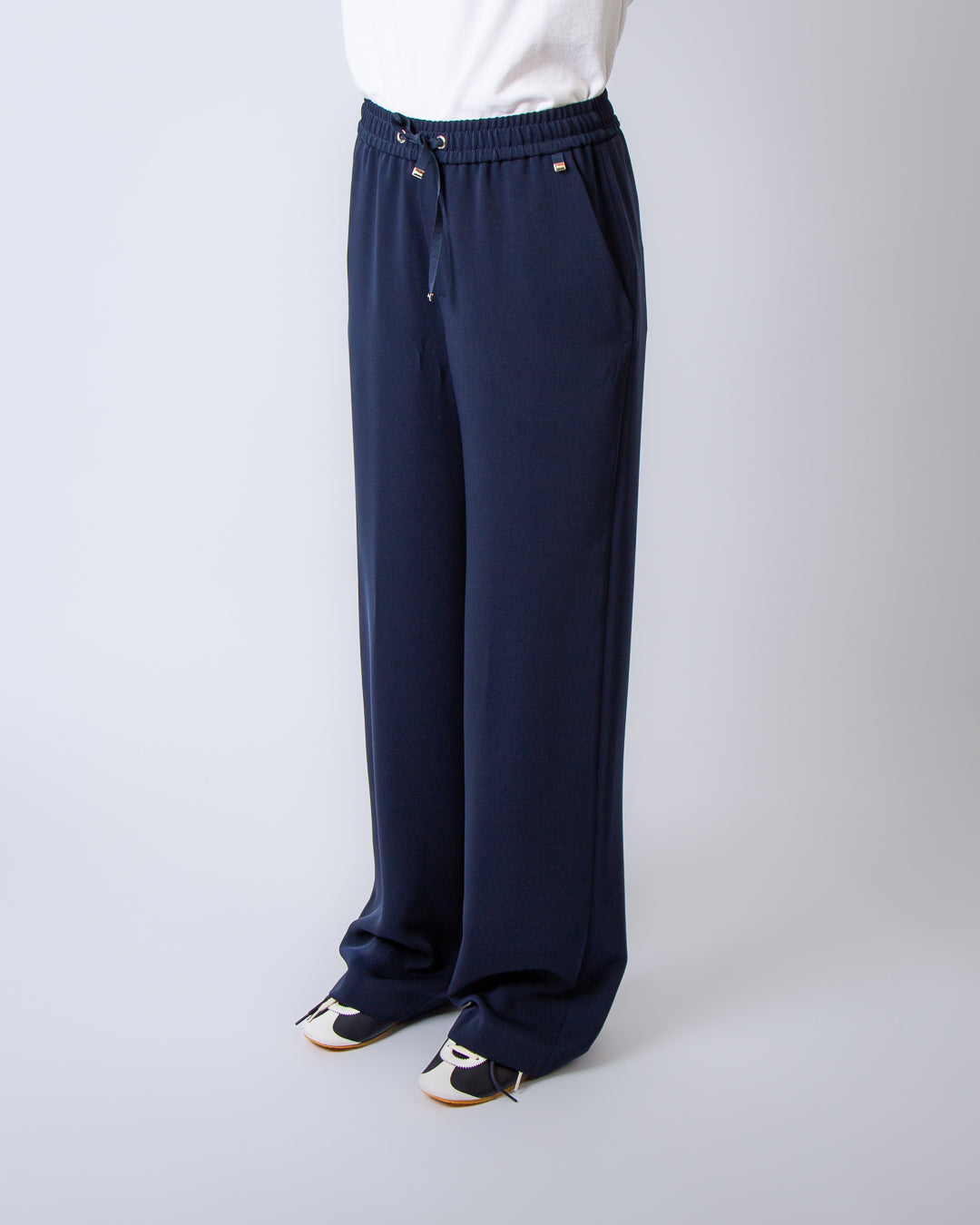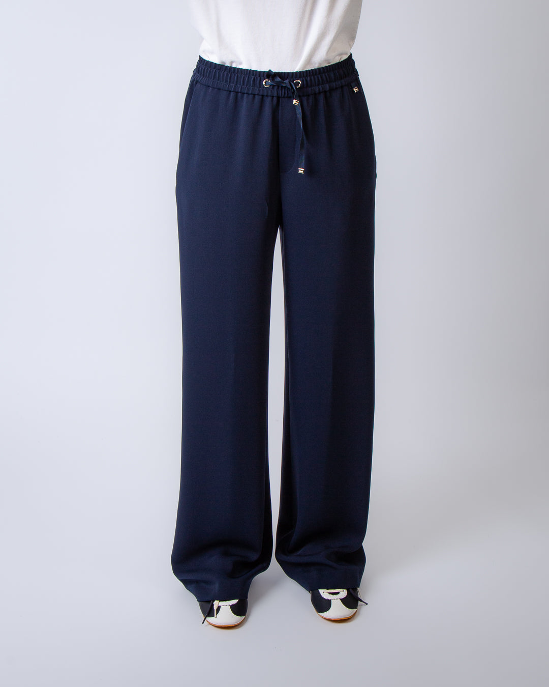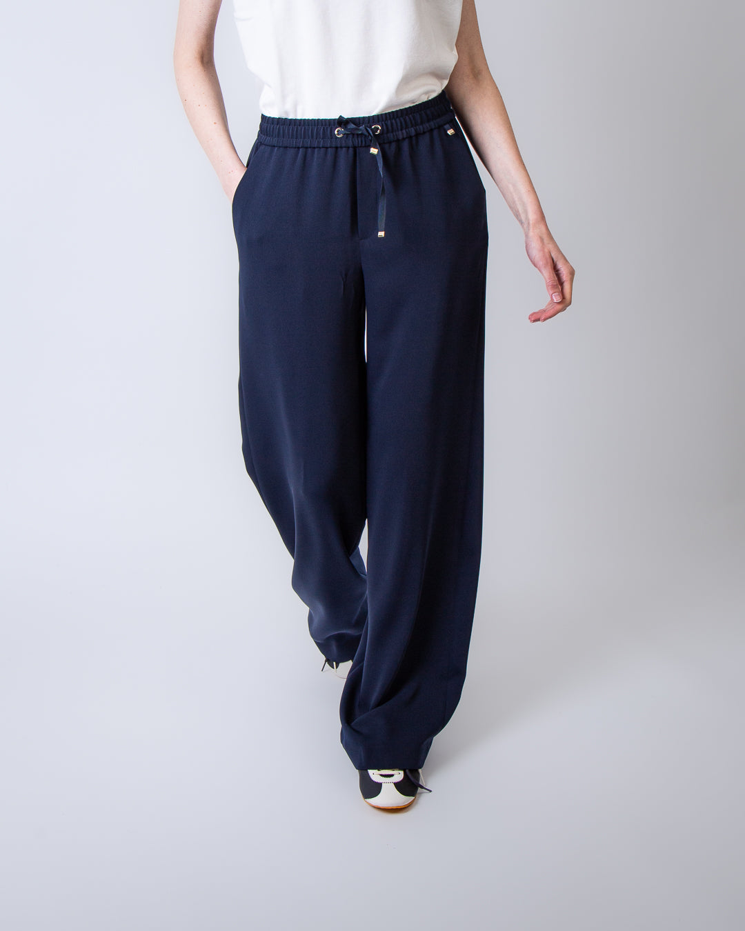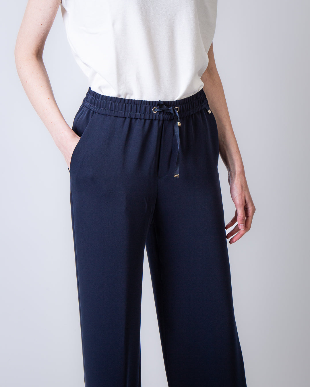 Herno women's trousers PT000008D 1287S 9200 blue, with drawstring. The model is 175 cm tall and wears a size 40.