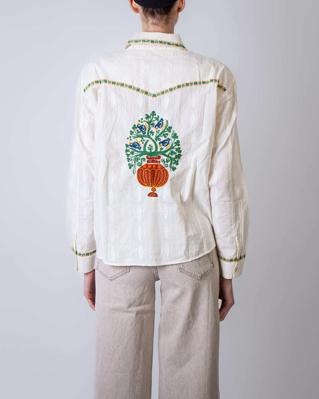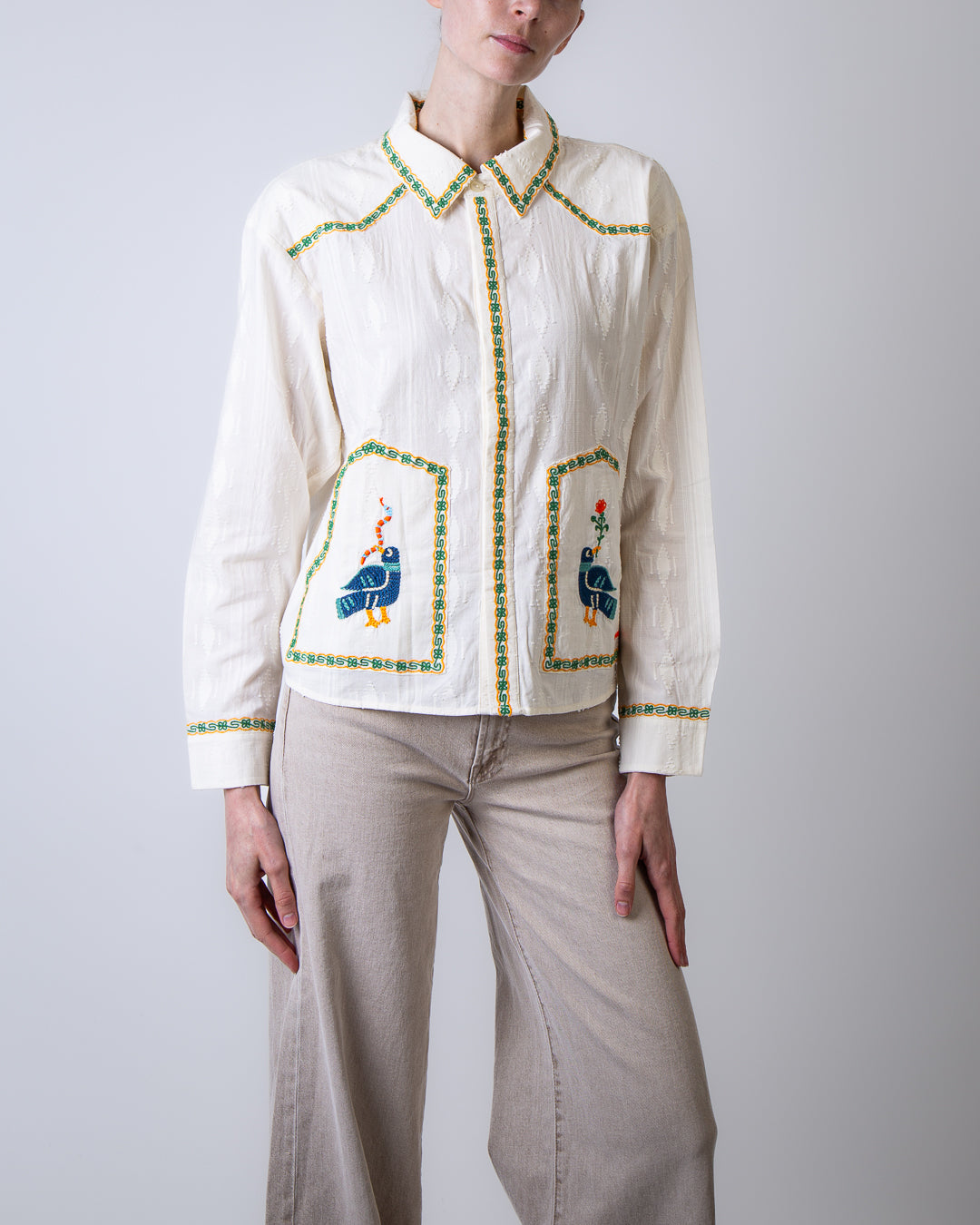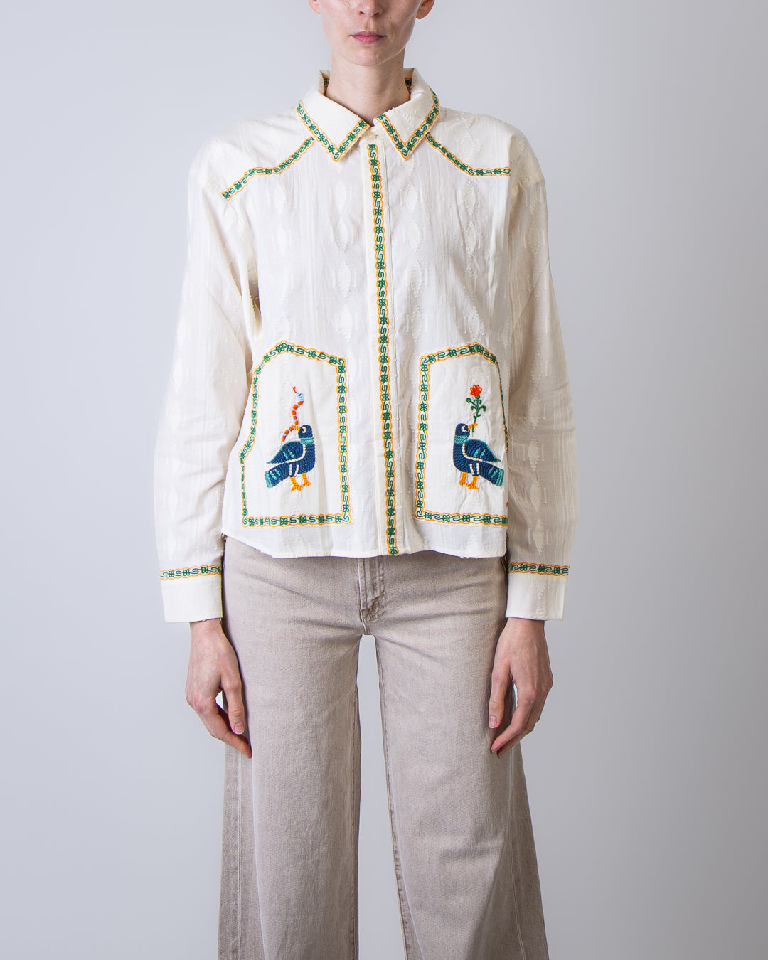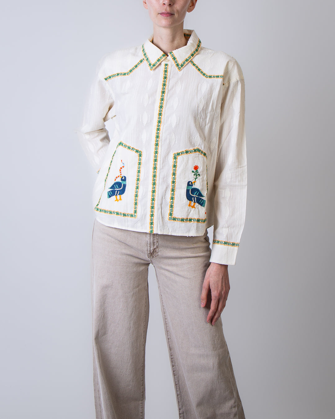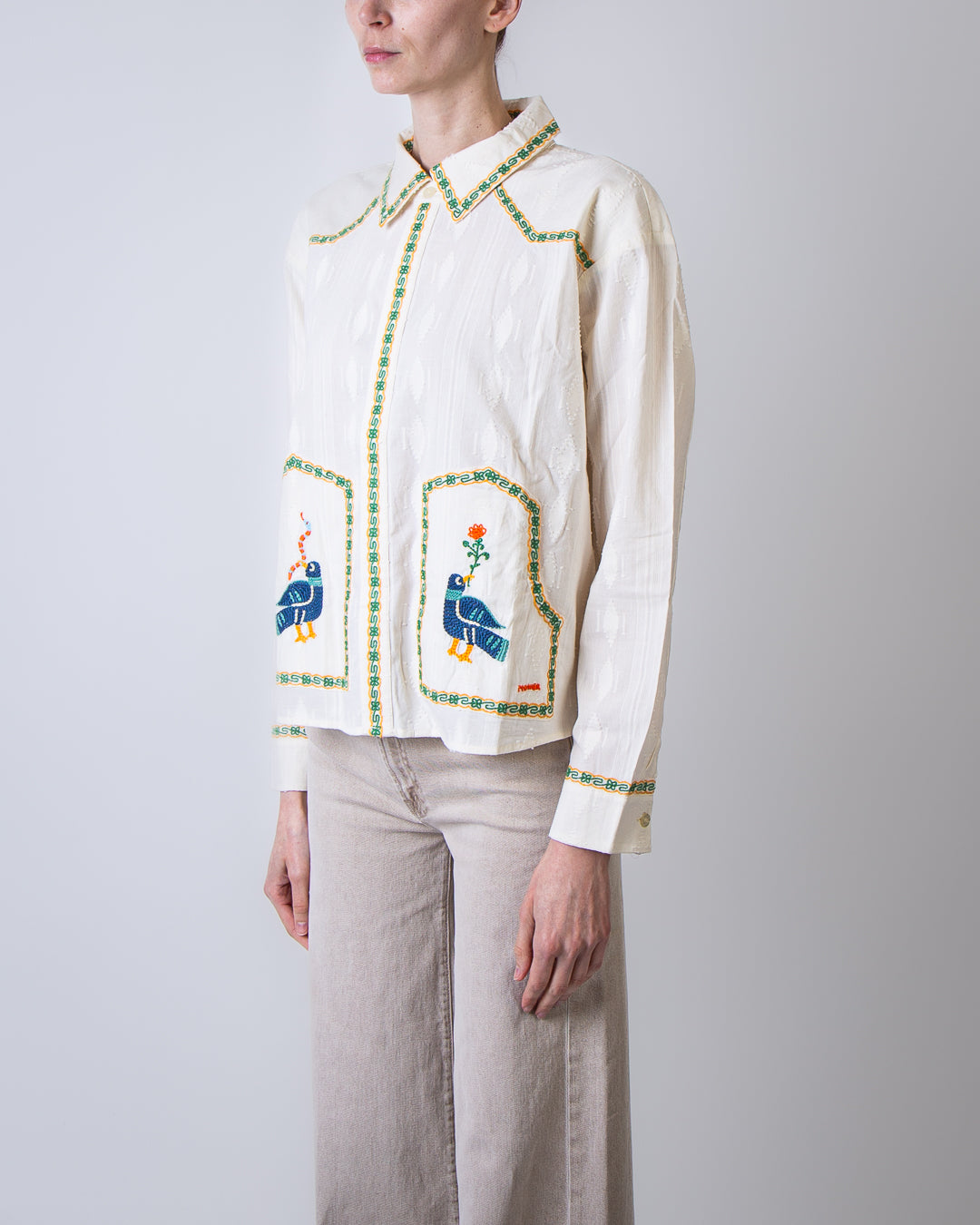 Mother, women's shirt 2614-1834 FAB white, folk fable shirt with hand embroidery, 100% cotton. The model is 175 cm tall and wears size M.