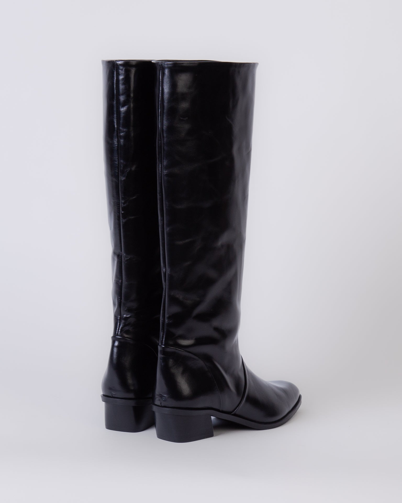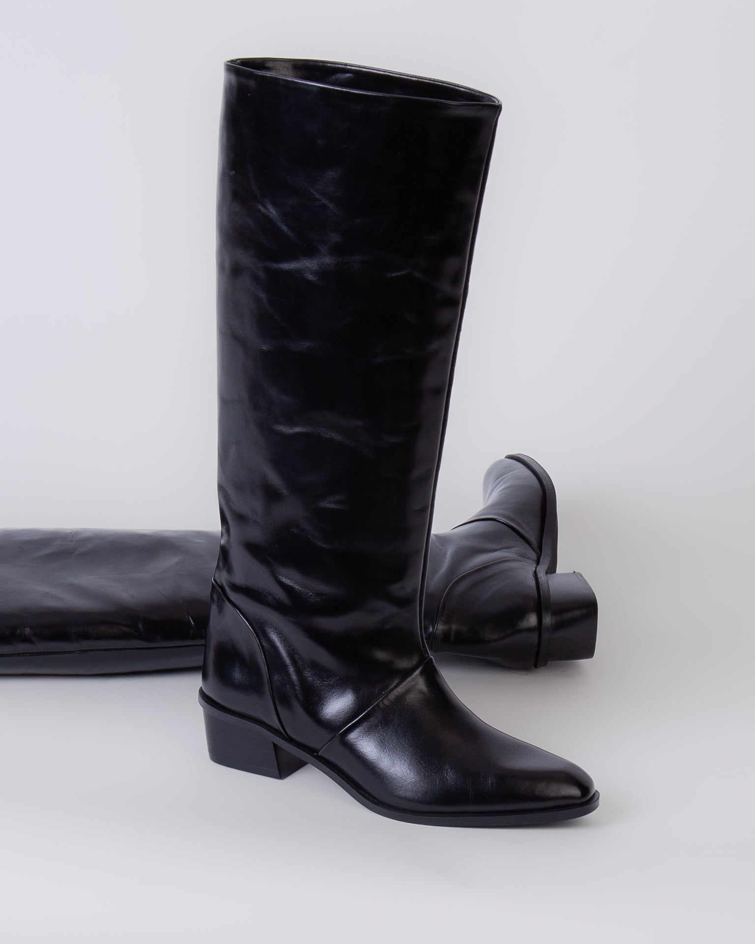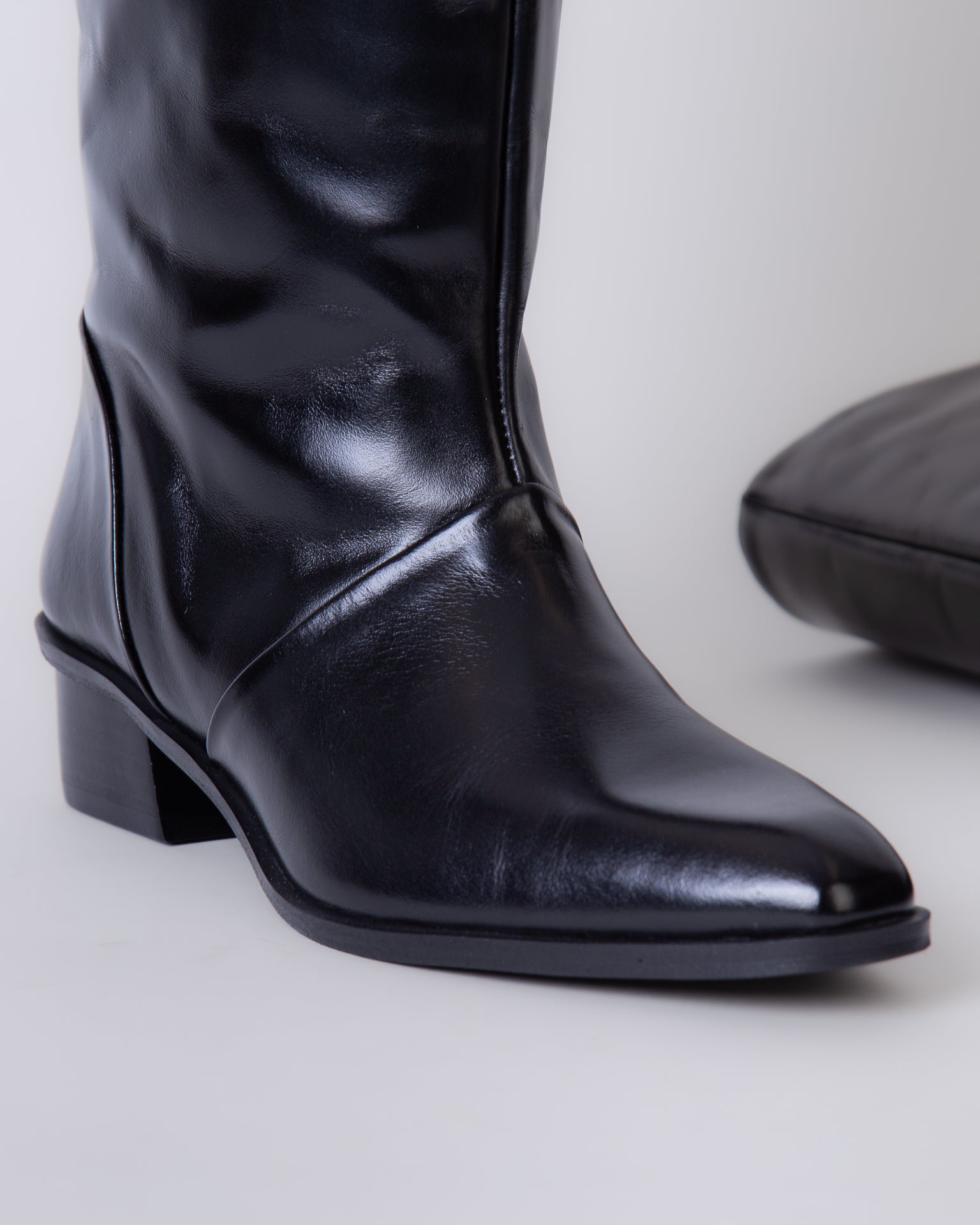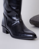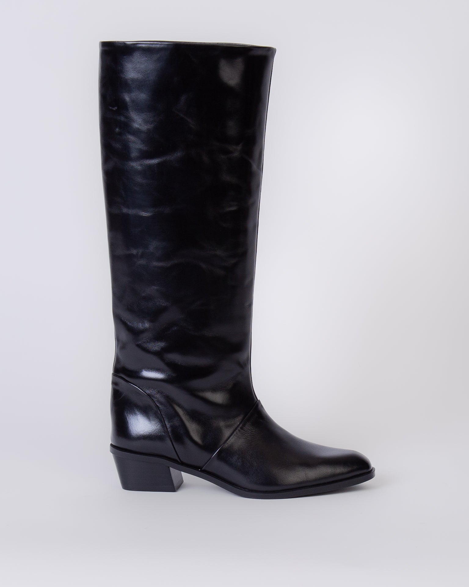 Augusta, SARAH BLACK women's boot, black, leather upper with heel. The shoe pictured is a size 38.