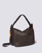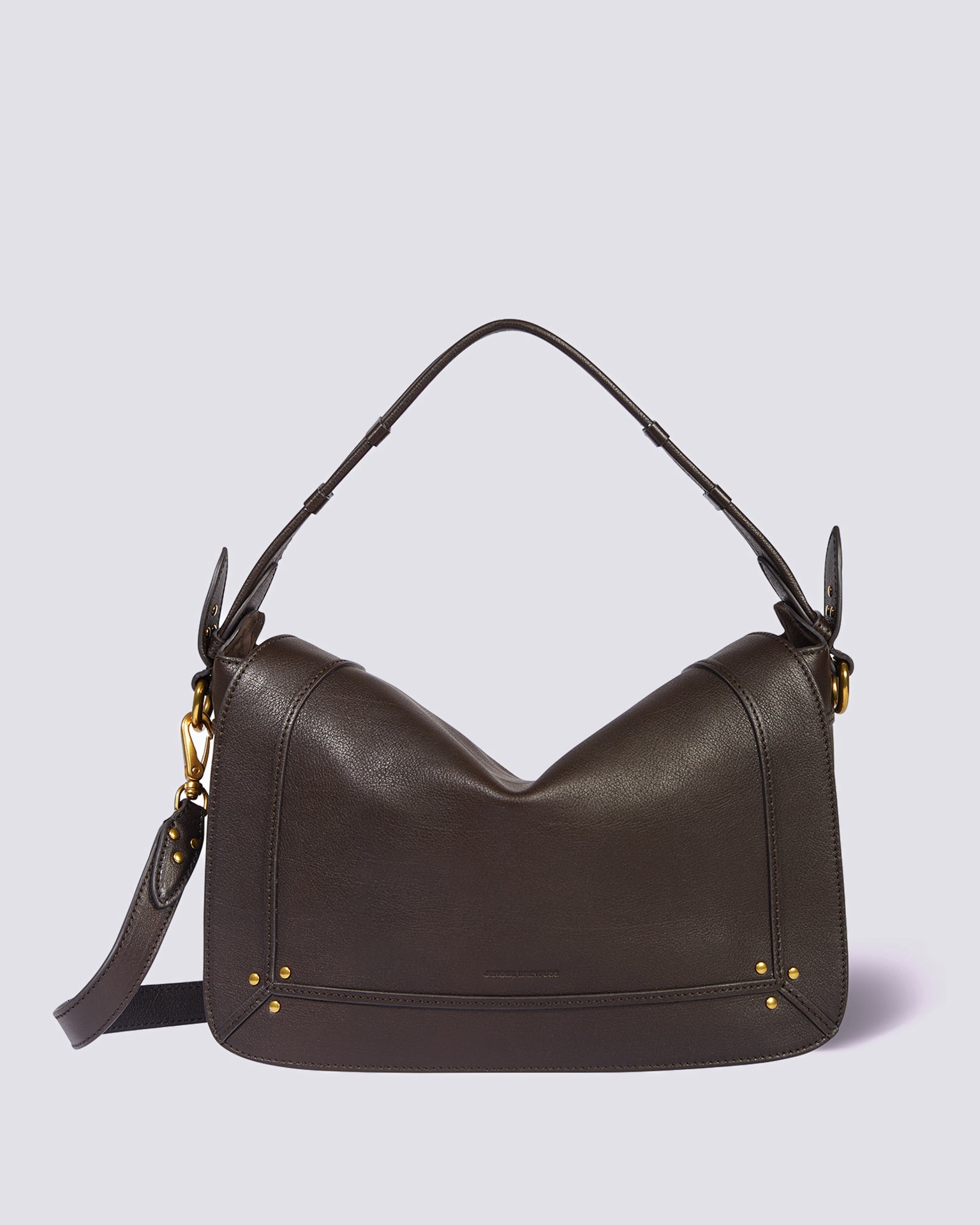 Jerome dreyfuss, borsa a spalla donna PEPITO M BU marrone, in pelle, con dettagli metallici oro. tracolla regolabile.