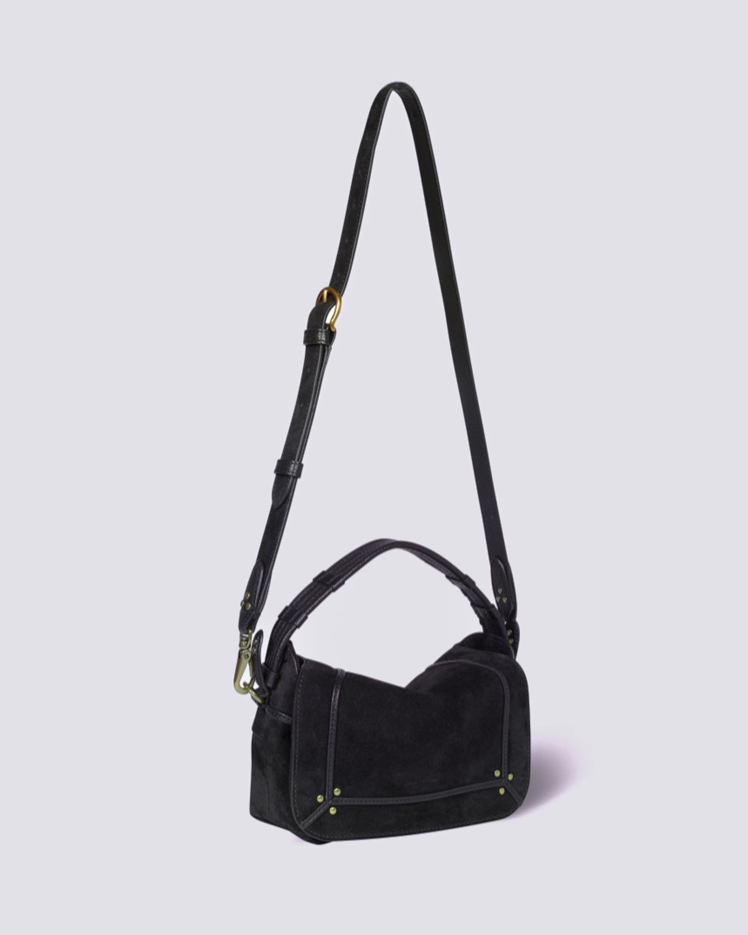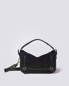 Jerome dreyfuss, borsa a spalla donna PEPITO S CR NOIR nero, in camoscio, con tracolla, dettagli metallici color oro.