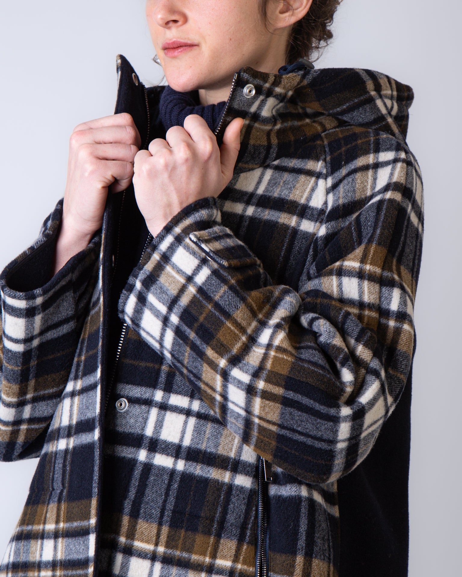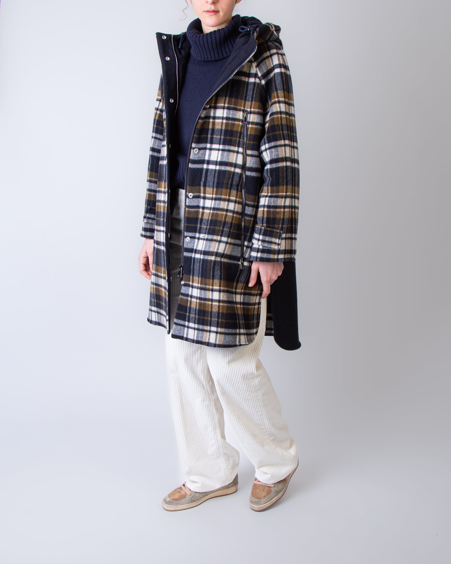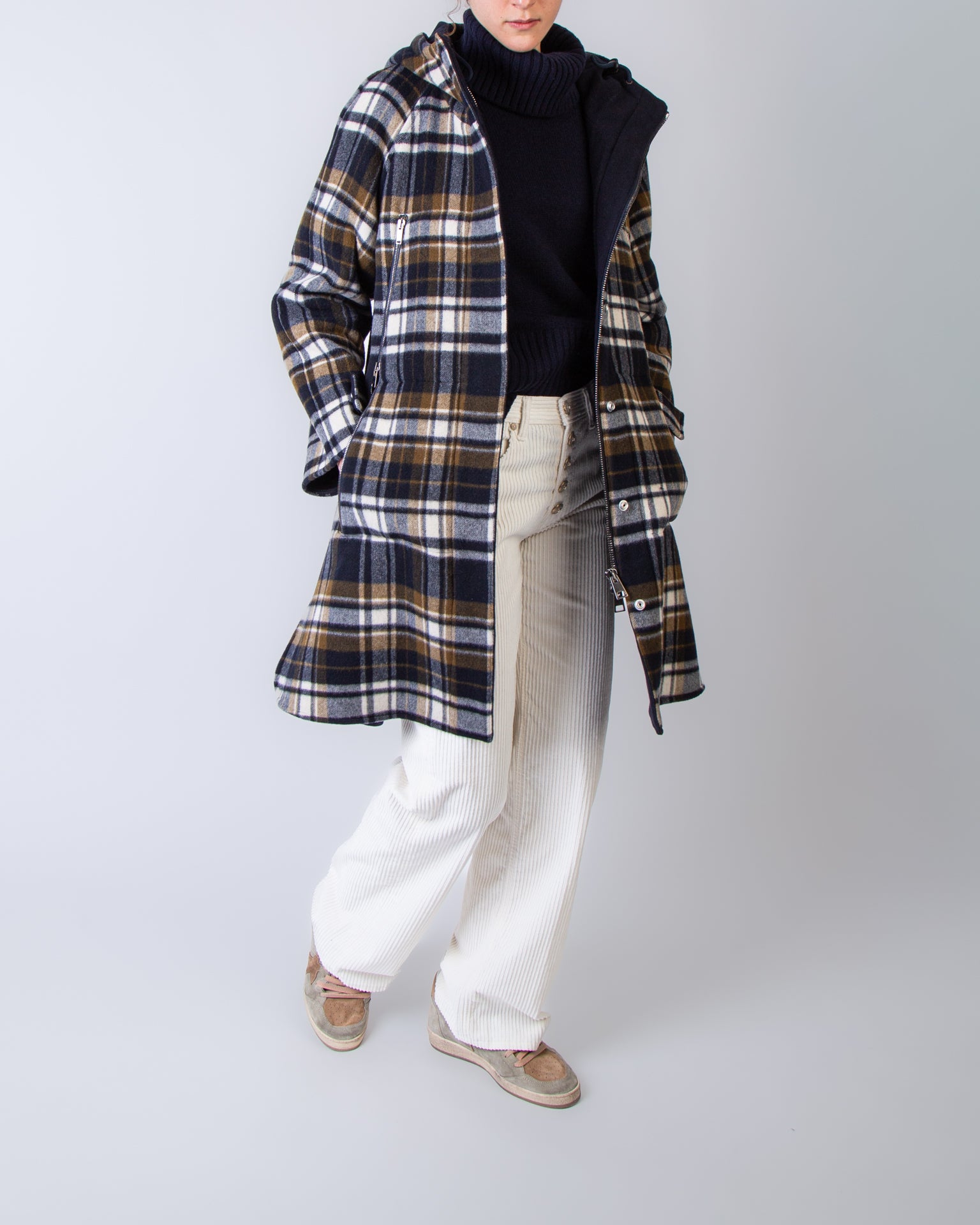 Seafarer, women's jacket SWJ0127 TWF0092 5600 blue, double wool nova parka, checked pattern. The model is 175 cm tall and wears a size 40