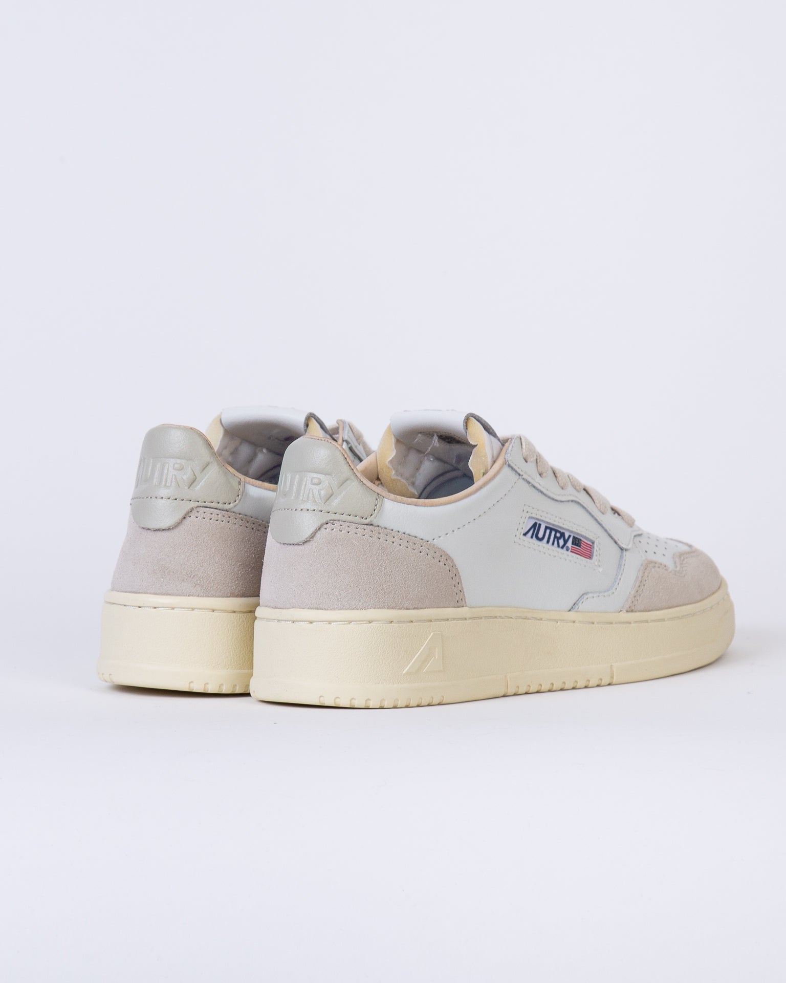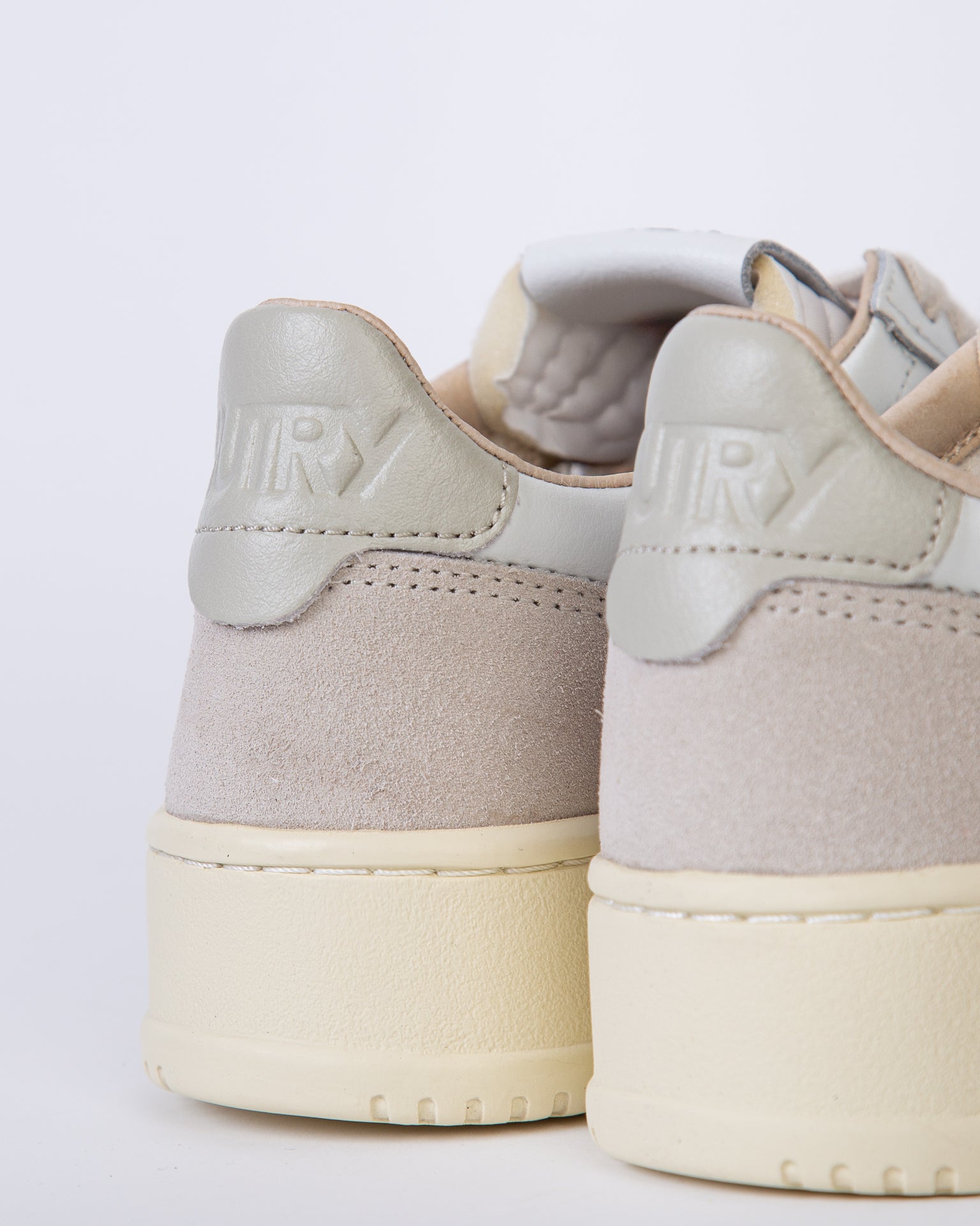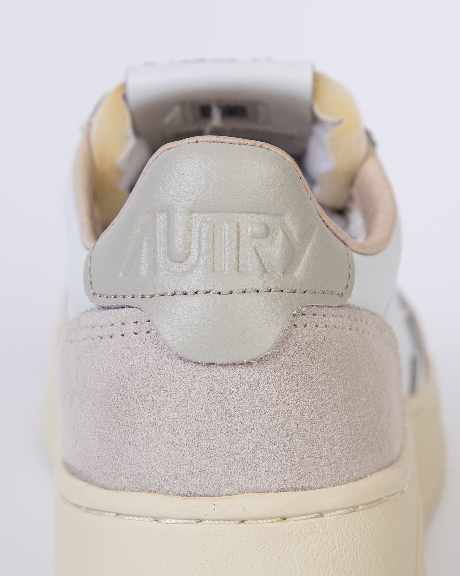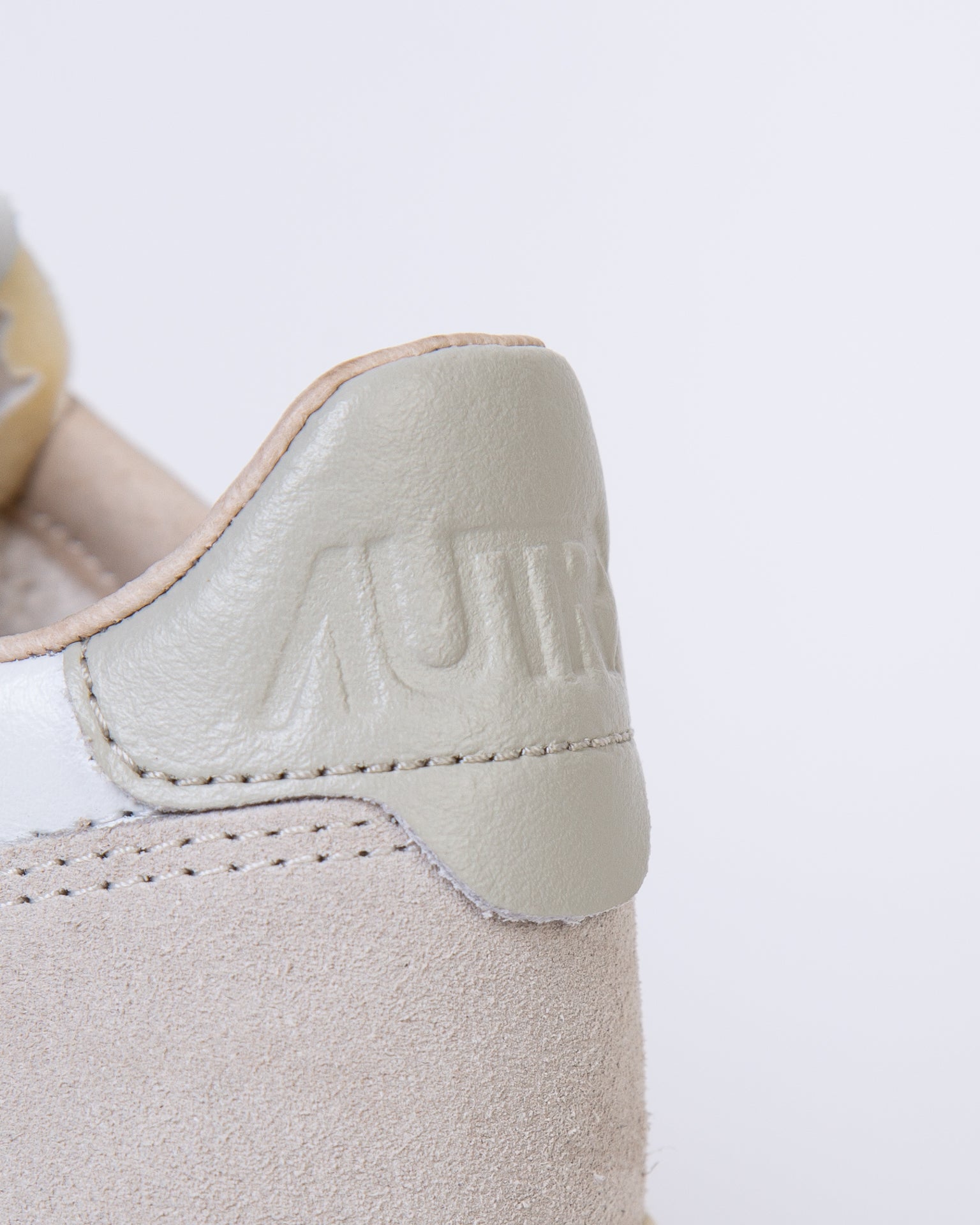 Autry, sneakers donna AULW-LS 14 bianco, medalist con tomaia in pelle e dettagli camoscio, talloncino color fango con logo. La scarpa scattata è una taglia 39