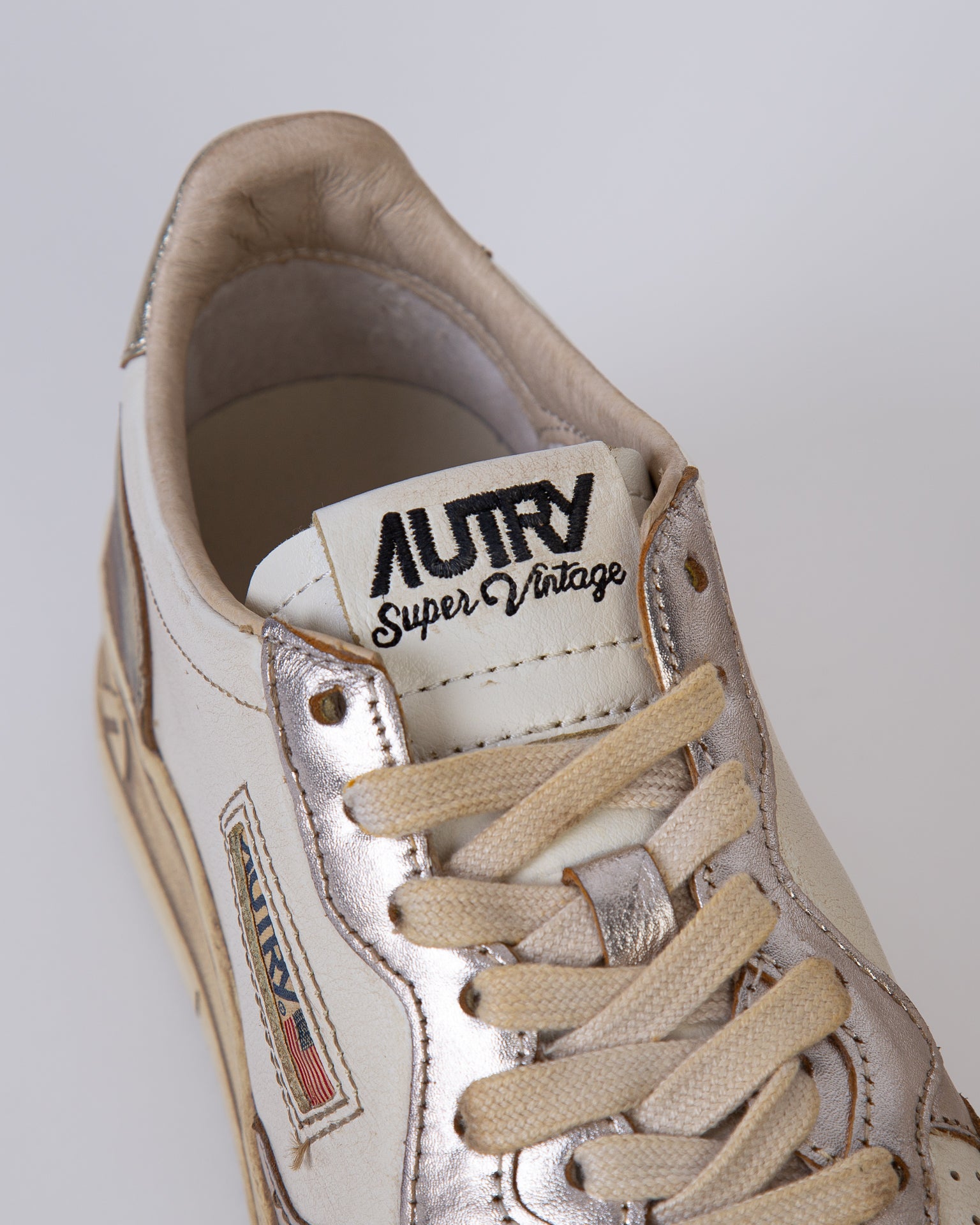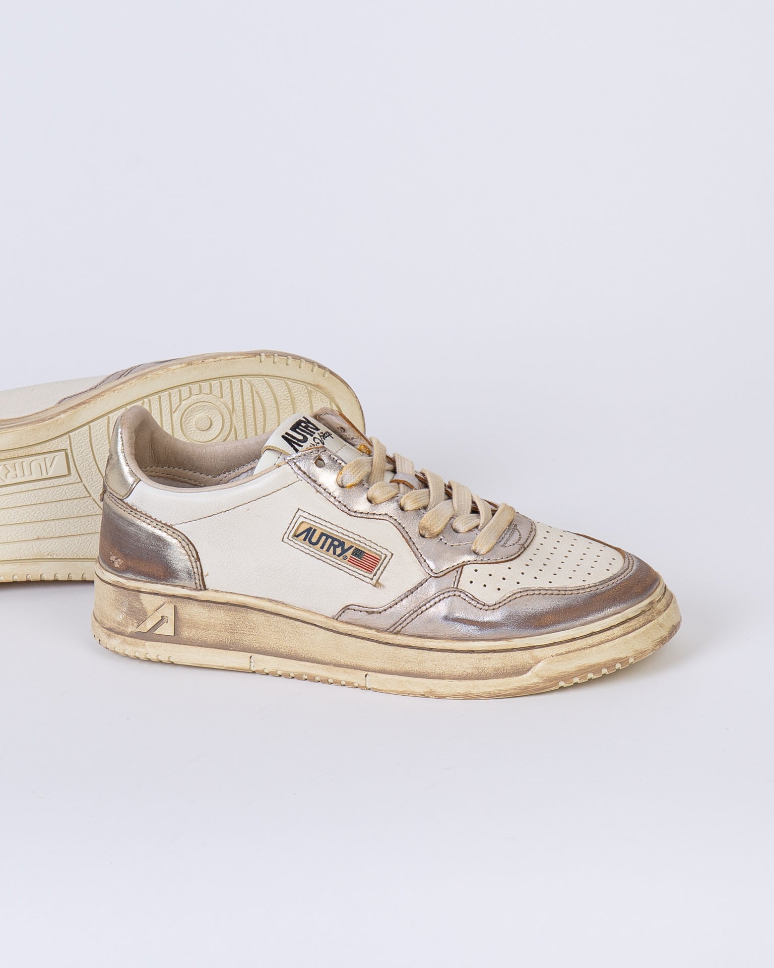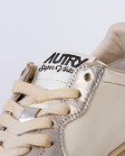 Autry, sneakers donna AVLW-MT 10 platino, medalist super vintage, con rifiniture effetto metallico. La scarpa scattata è una taglia 39