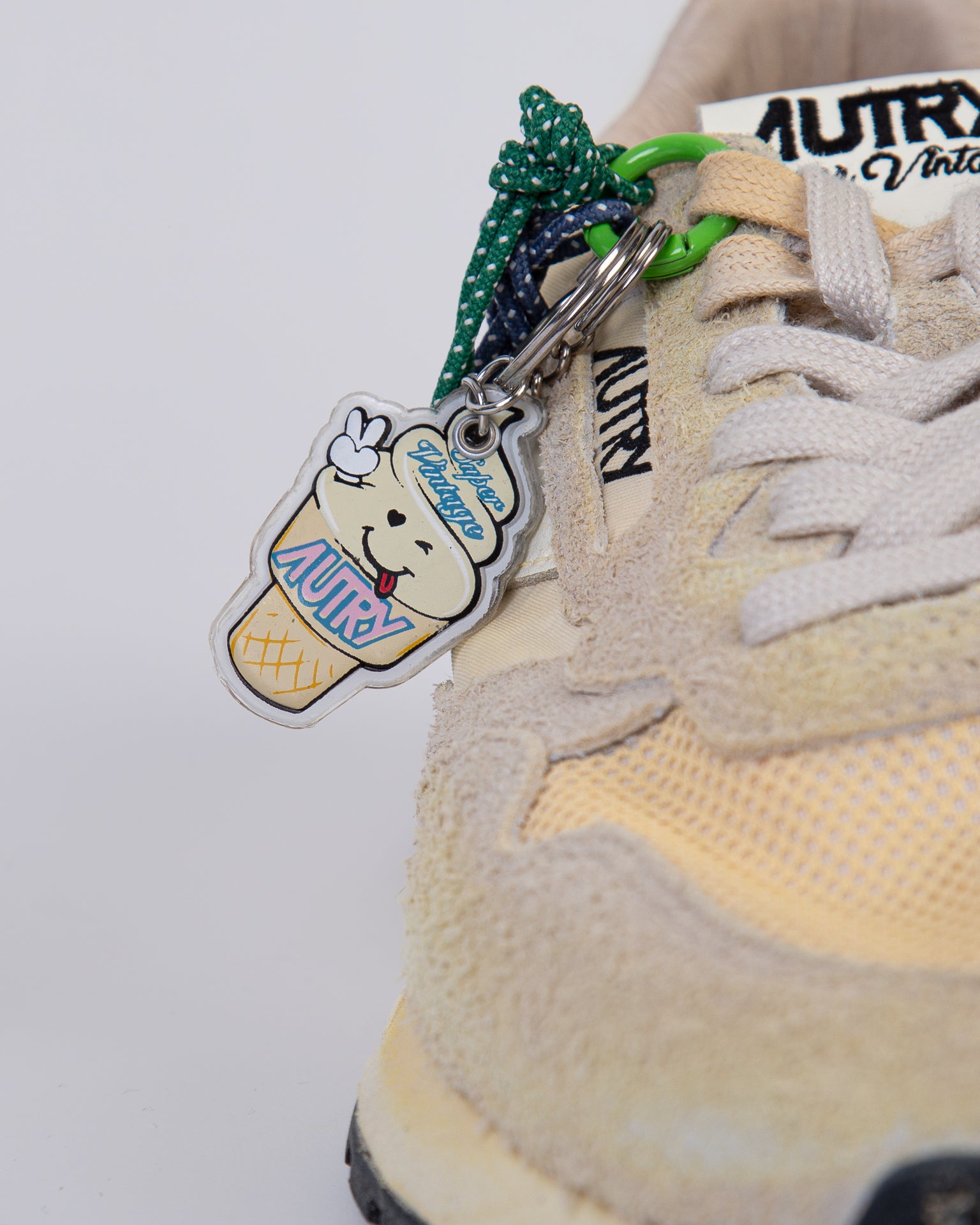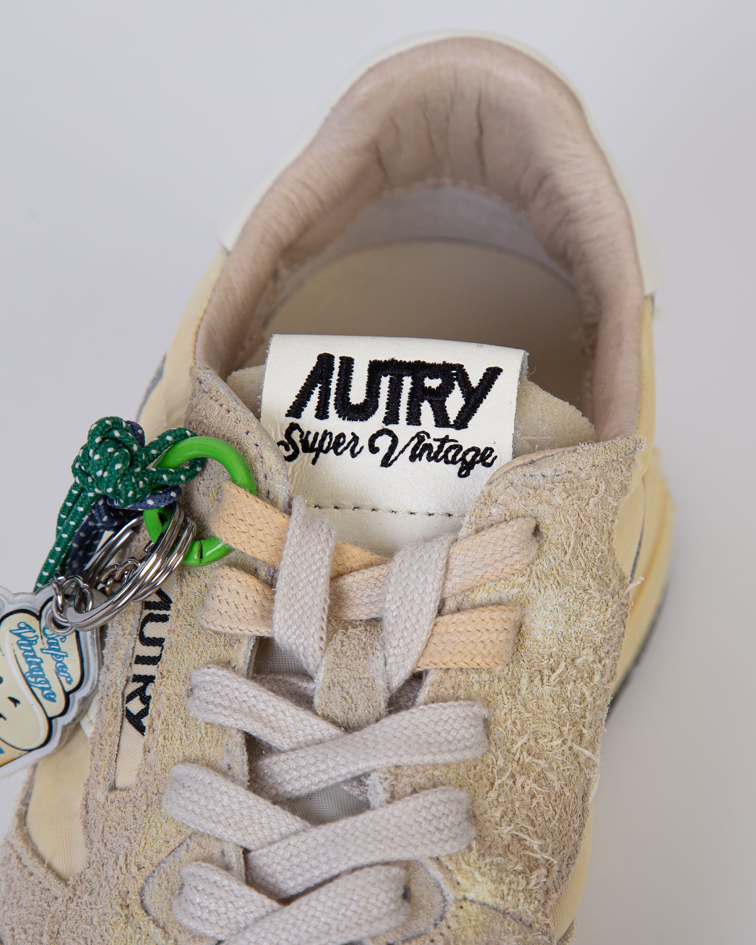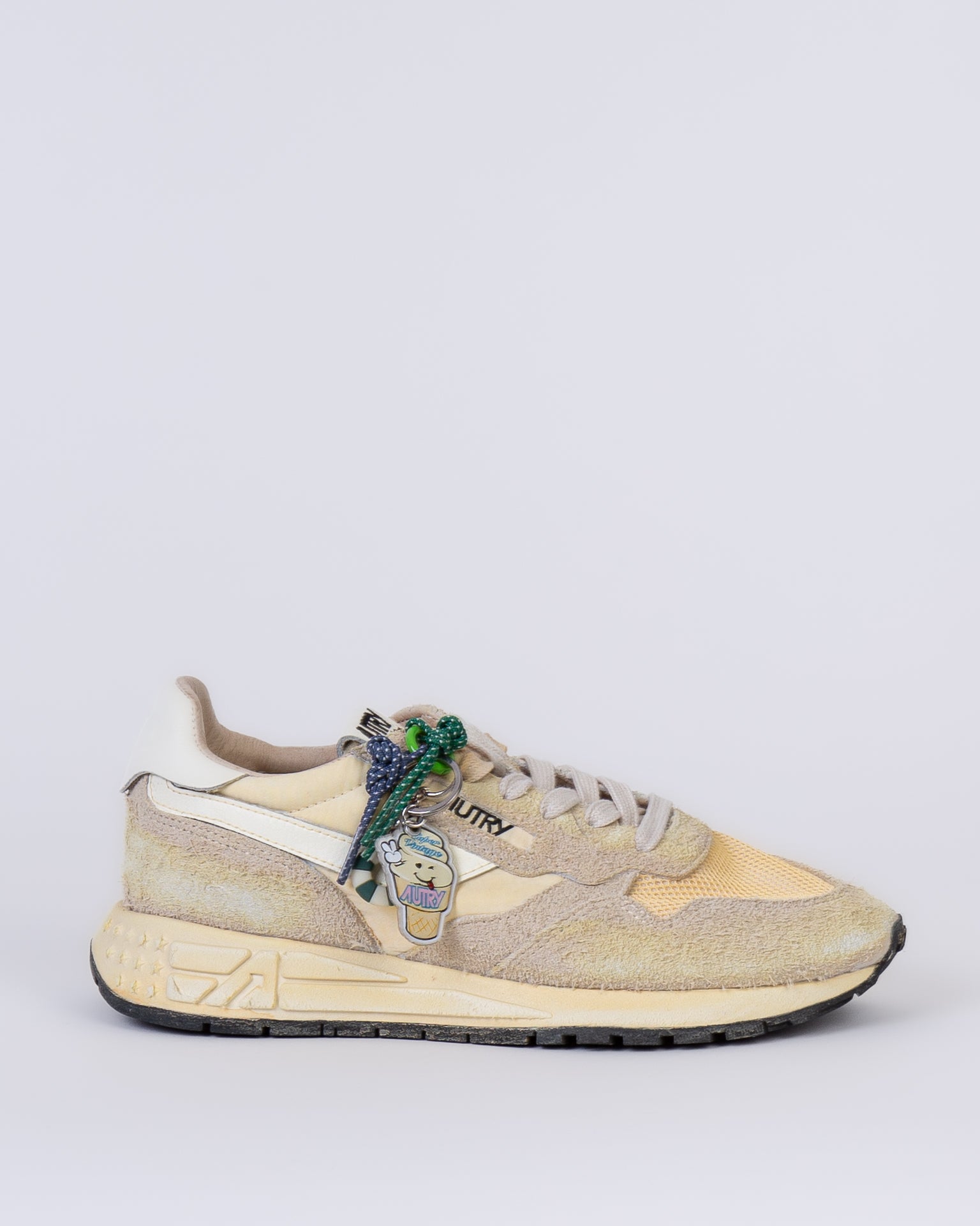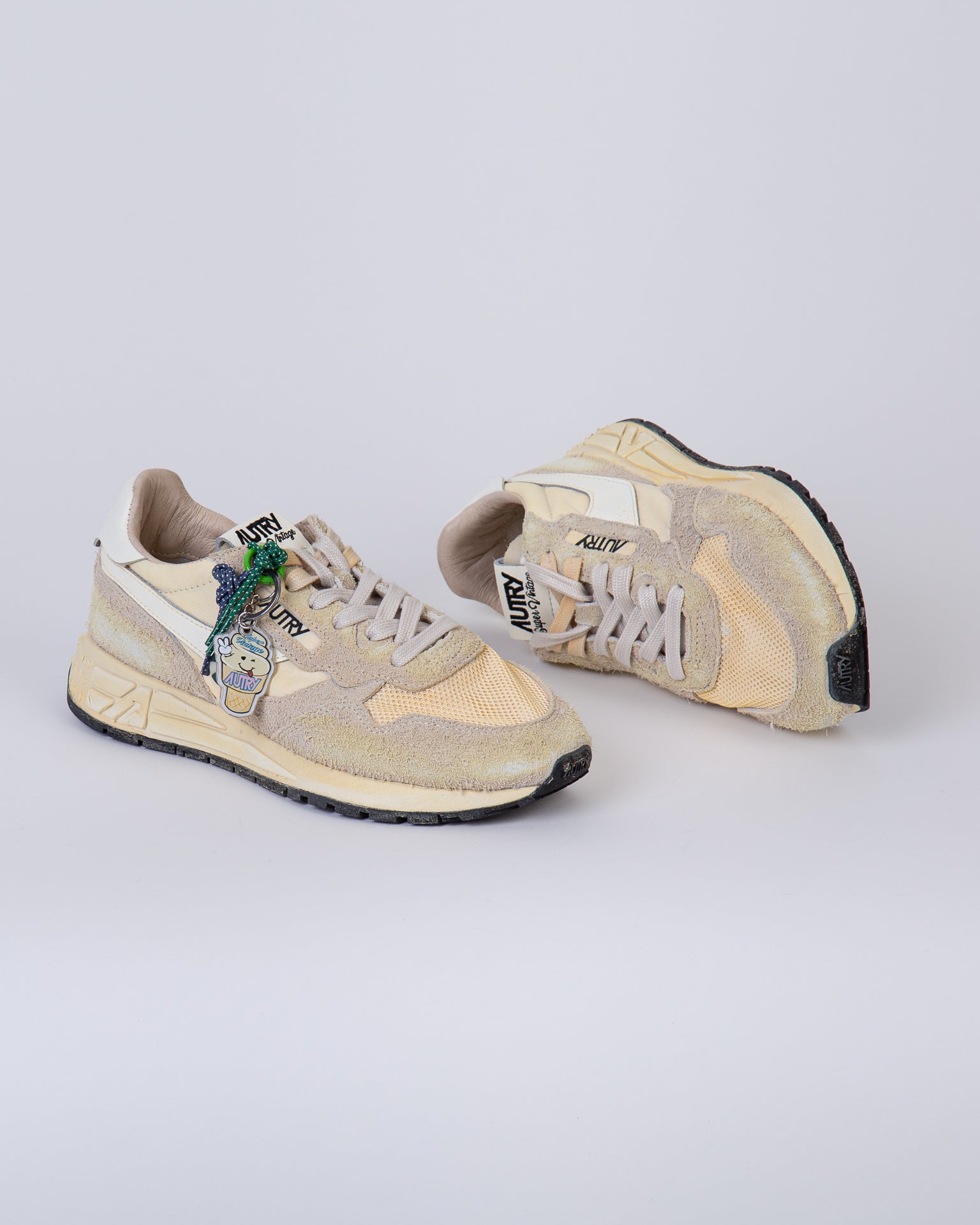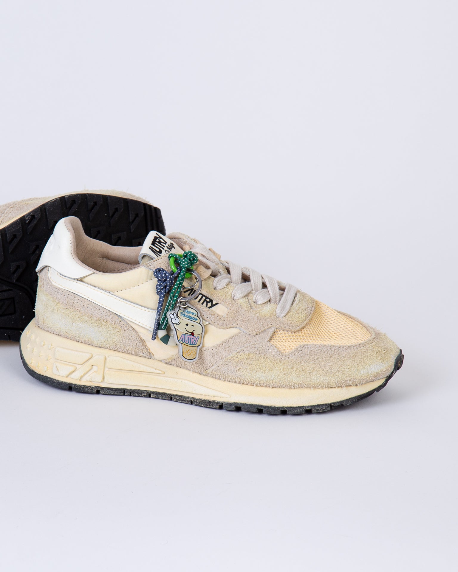 Autry, sneakers donna WVLW-YS 01 ecru, effetto spry, reelwind con dettagli in naylon e accessorio super vintage agganciato ai lacci. La scarpa scattata è una taglia 39