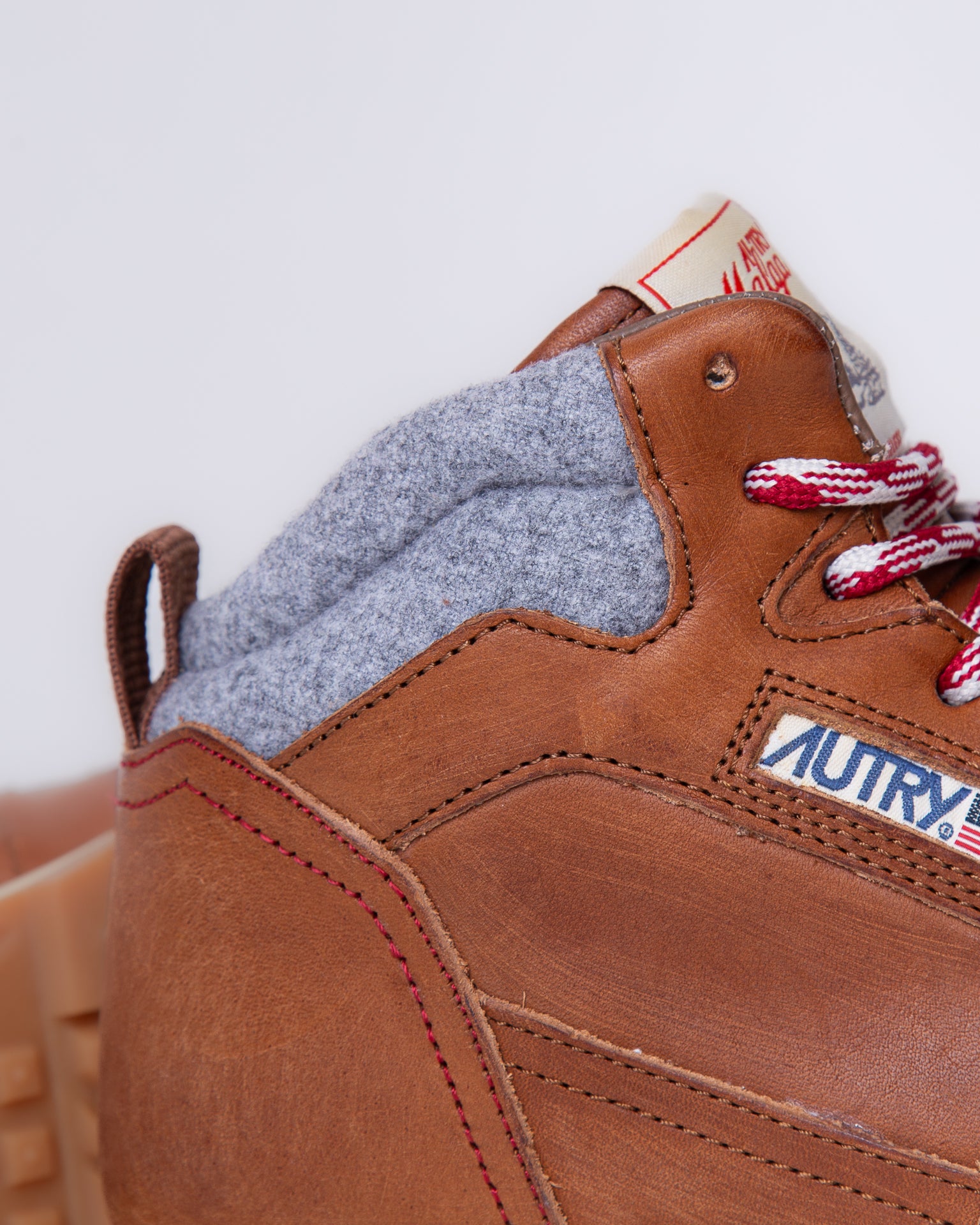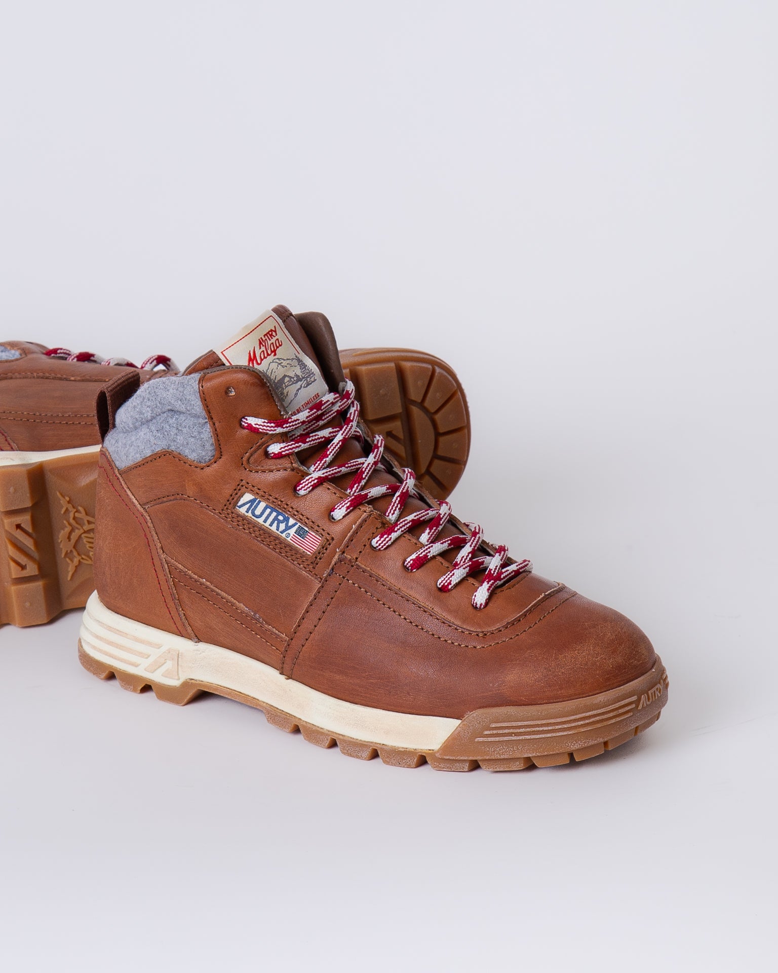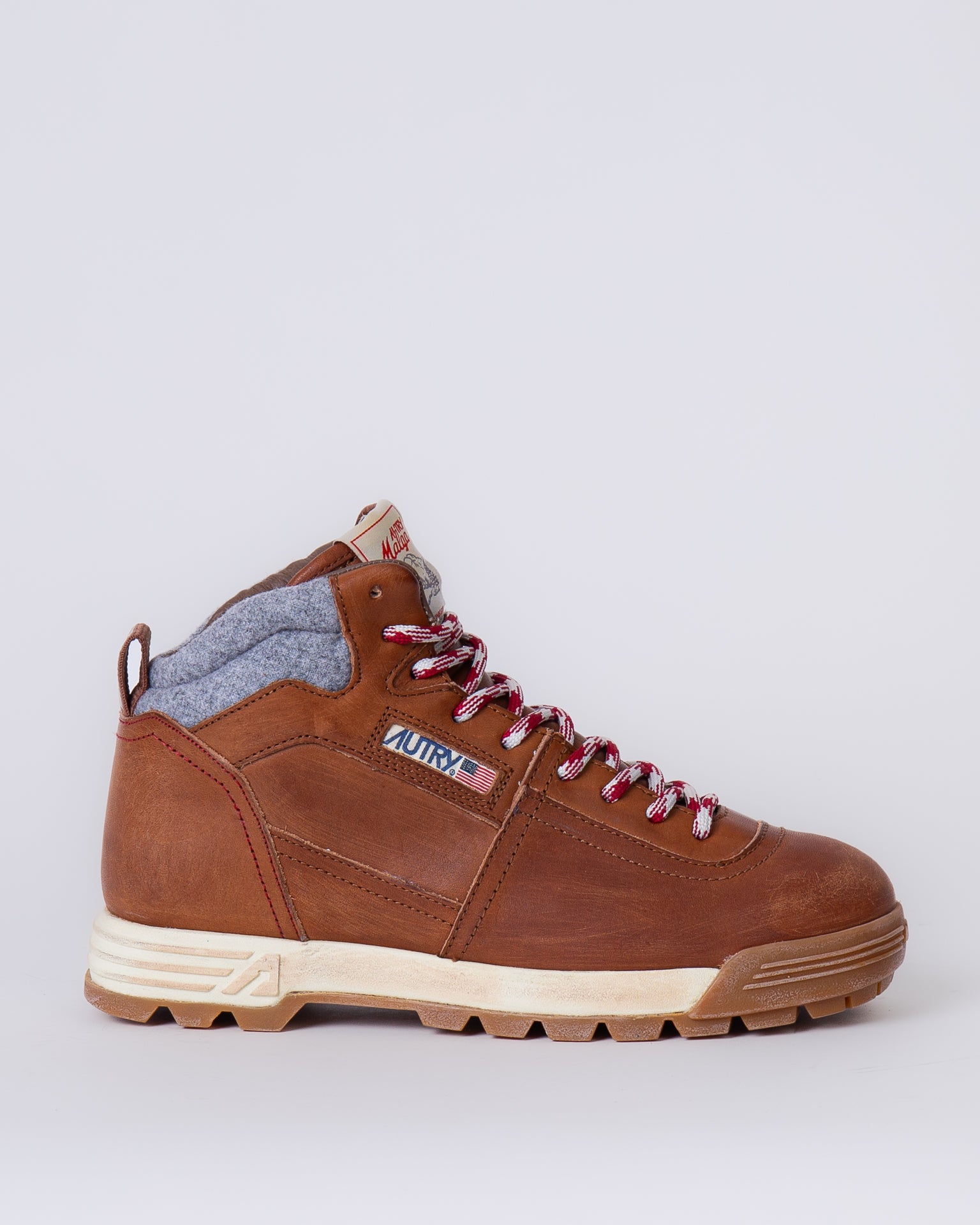 Autry, HBMW-HF 01 women's brown sneakers, mountain hut model, leather upper. The shoe pictured is a size 38.