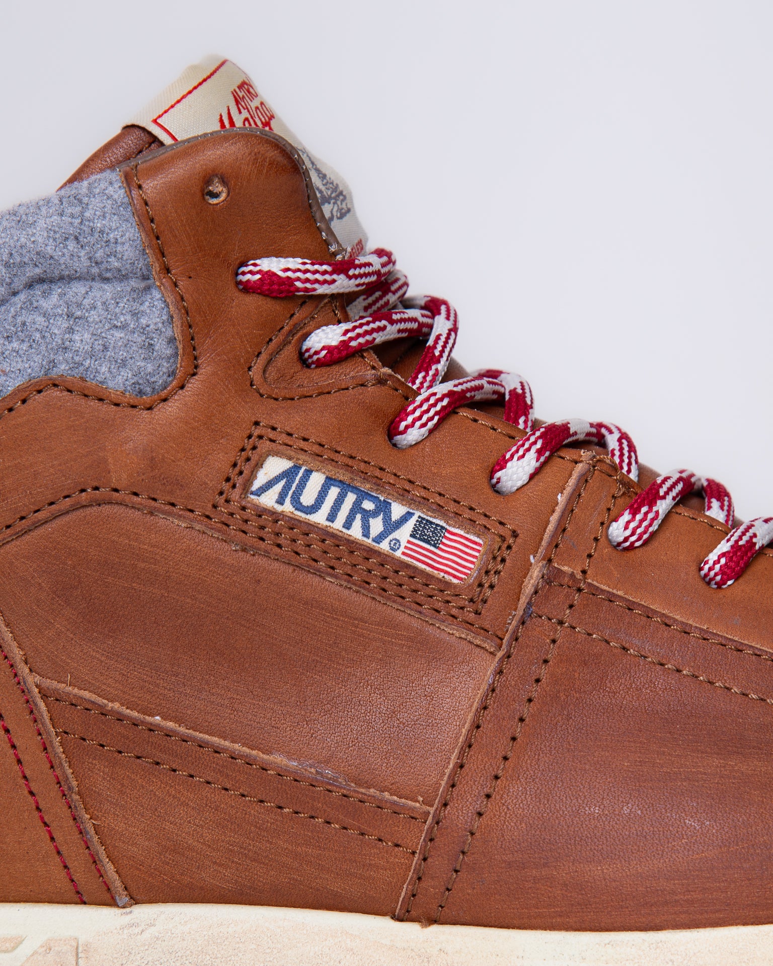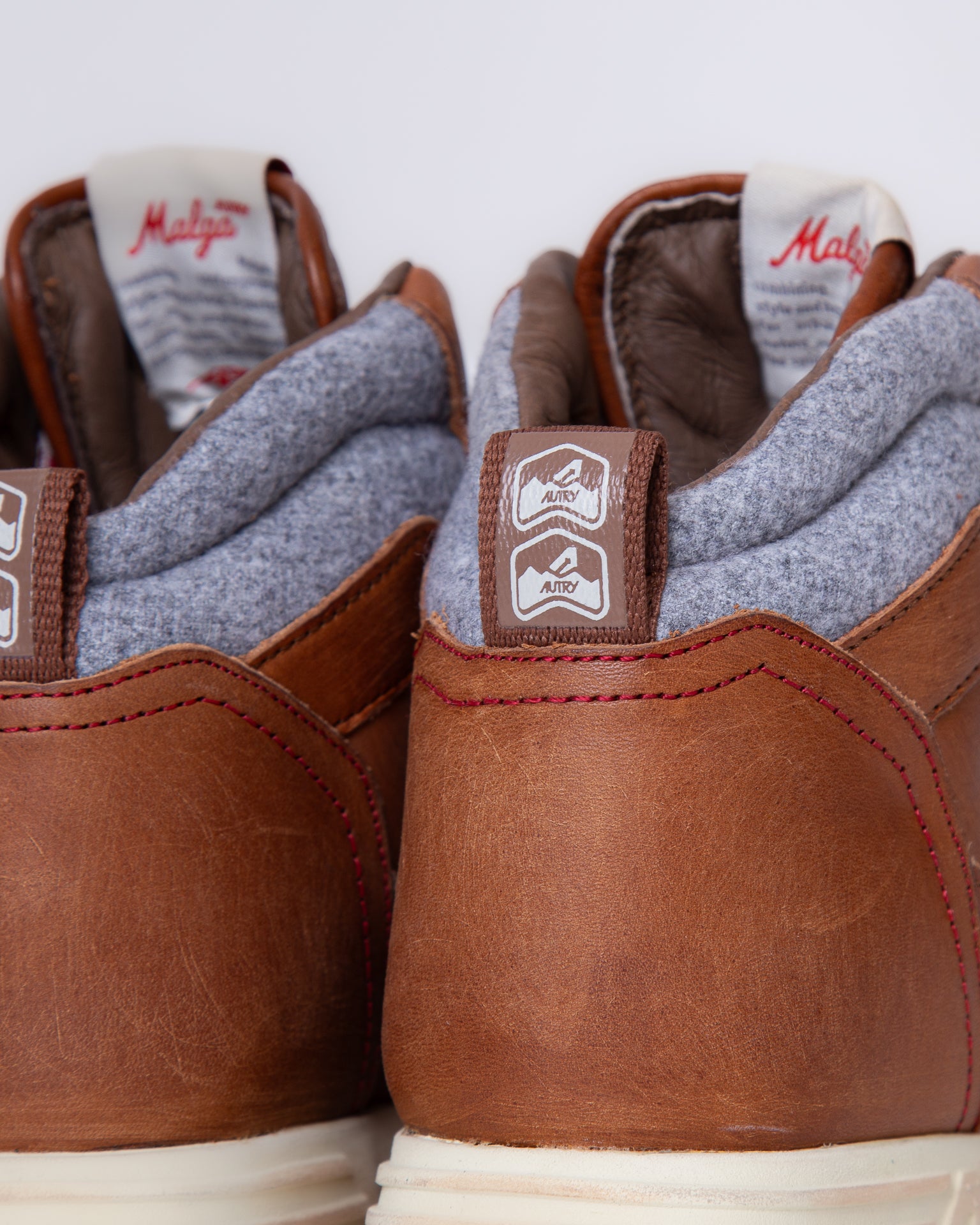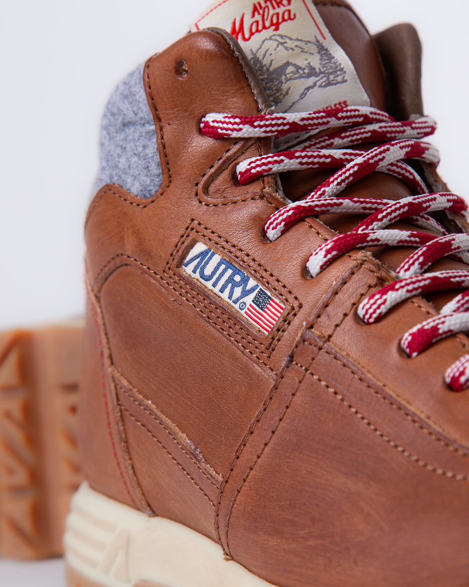 Autry, HBMW-HF 01 women's brown sneakers, mountain hut model, leather upper. The shoe pictured is a size 38.