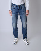 -1 Nordic Denim, men's SELVEDGE CRASH BLU R32 jeans, blue, regular fit. The model is 186 cm tall and wears size 32.