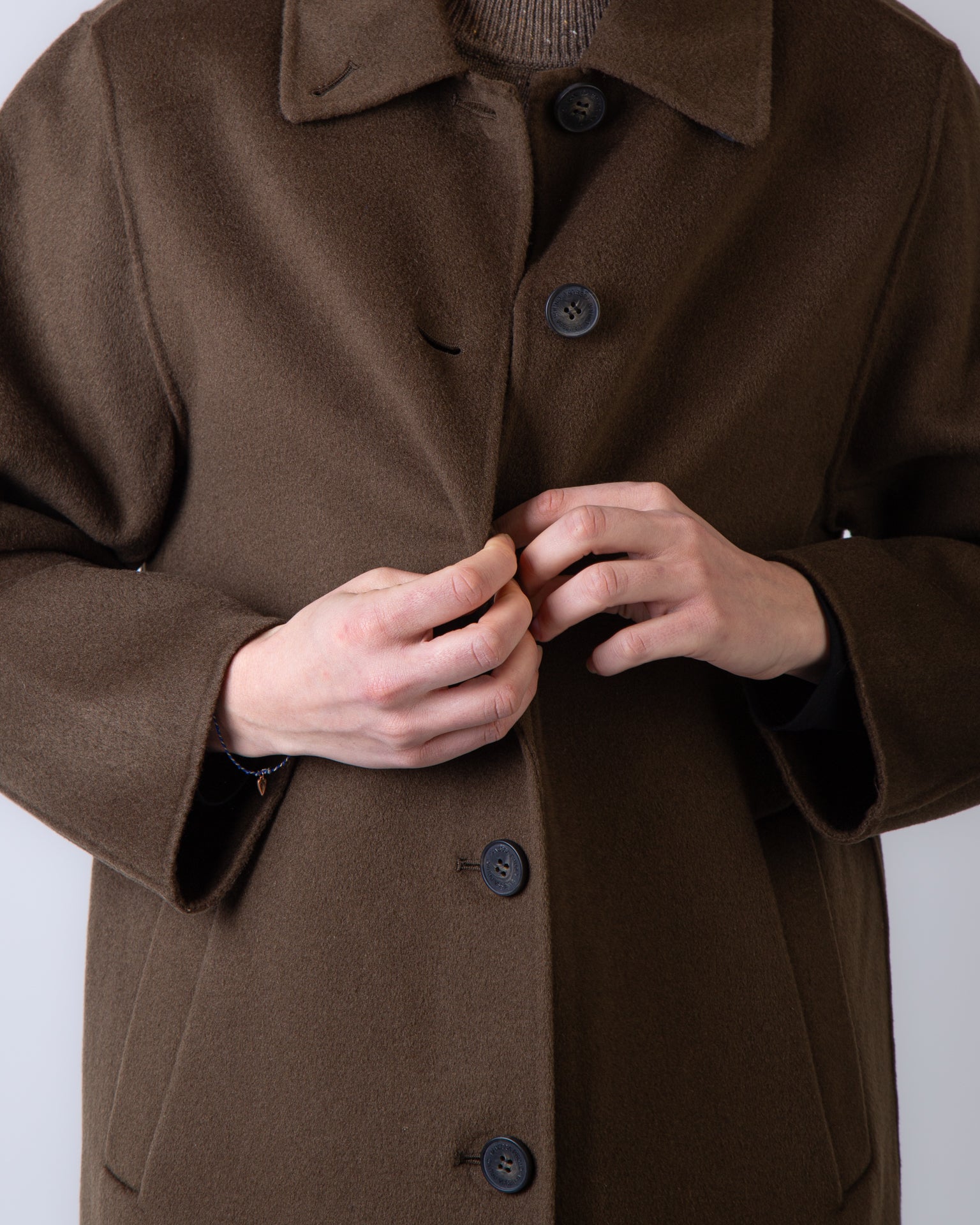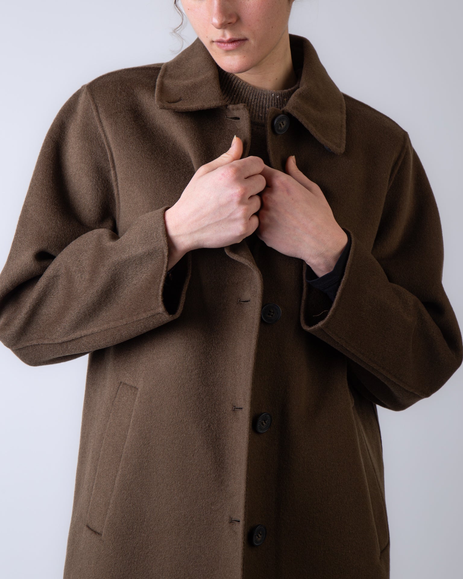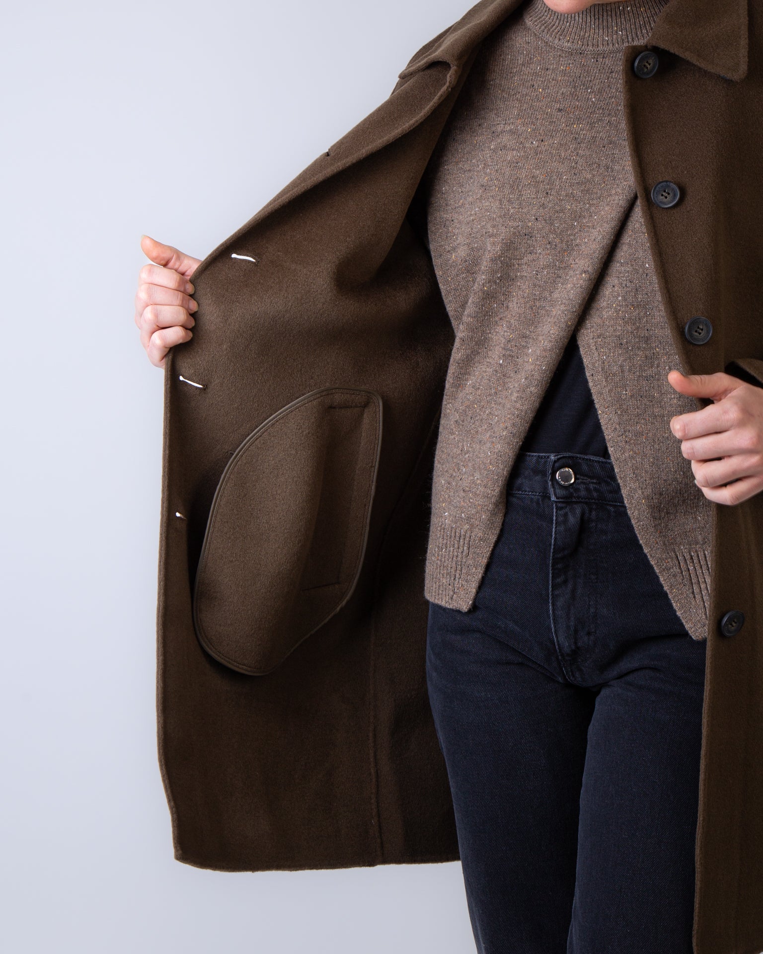 Vanessabruno, women's coat 1HVA25 V01809 613 green, three-quarter fabian cloth. The model is 175 cm tall and wears a size S.