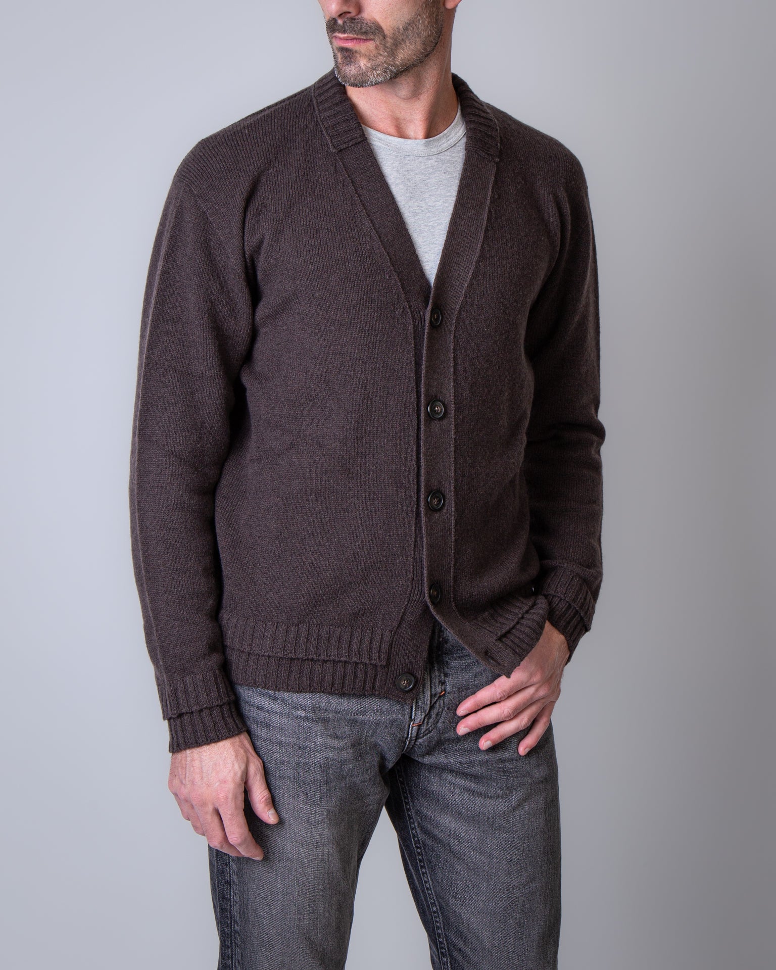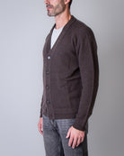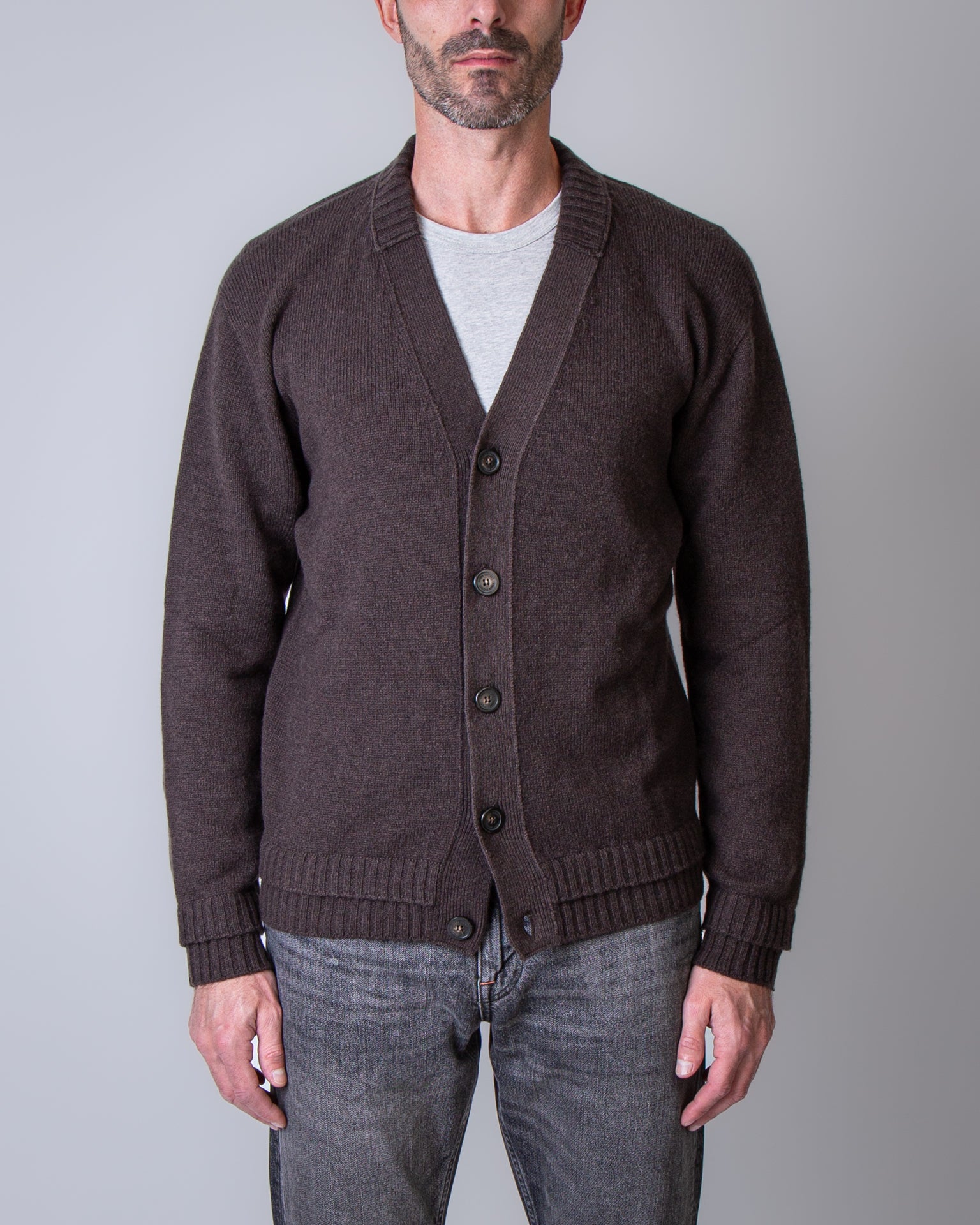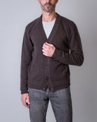 Atomo Factory, maglia uomo AFU03 24 marrone, cardigan doppi fondi rasato, 15%lana 61%pa 11%wm 9%wa 2%ws.