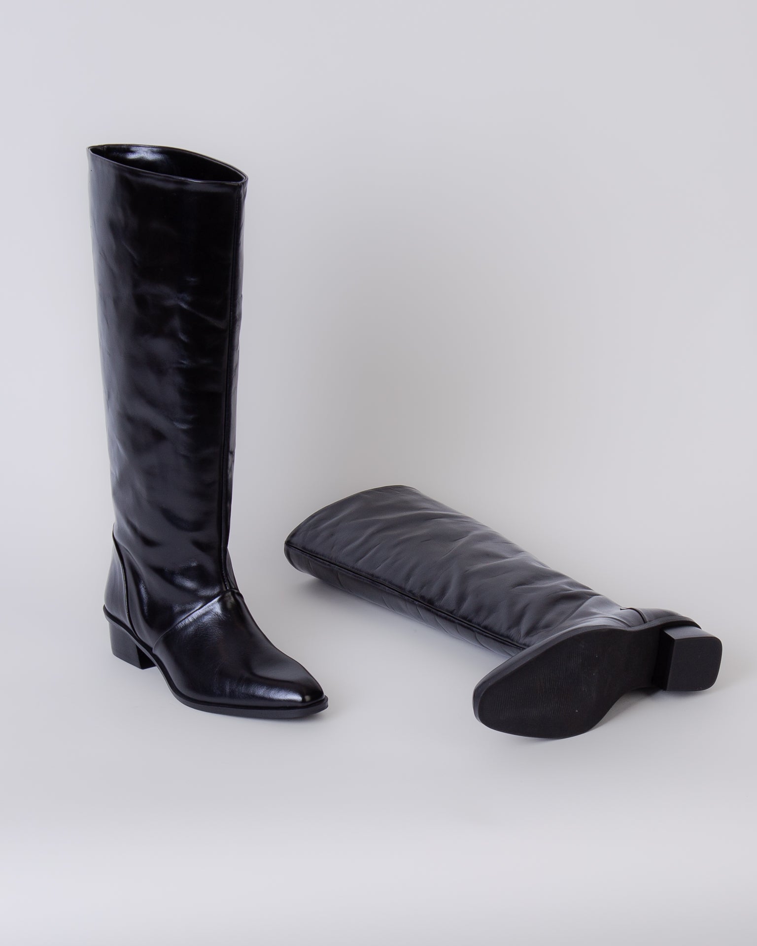 Augusta, stivale donna SARAH BLACK nero, tomaia in pelle con tacchetto. La scarpa scattata è una taglia 38