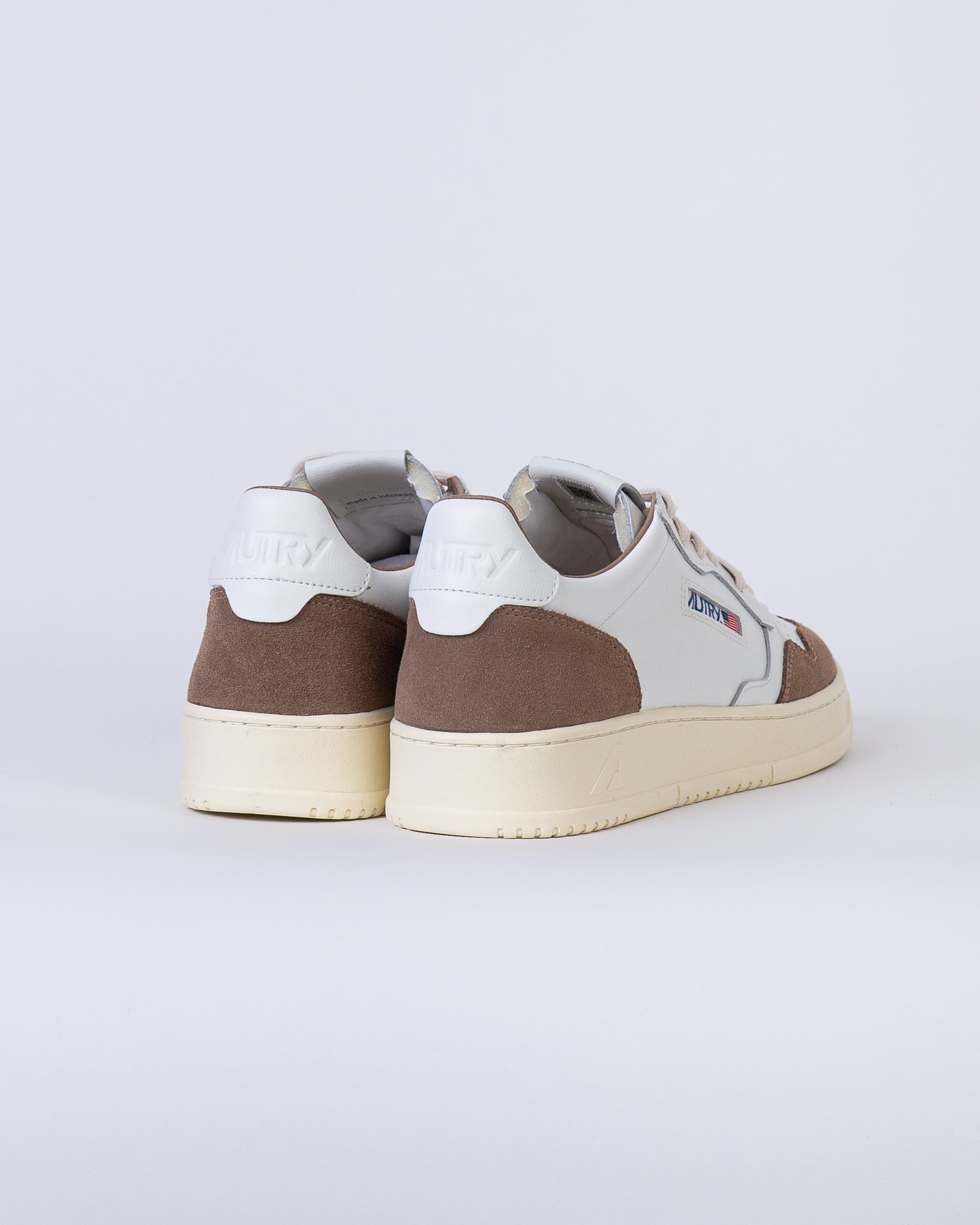 Autry, sneakers uomo AULM-FT 02 bianca e beige, pelle soft e camoscio contrasto. La scarpa scattata è una taglia 43
