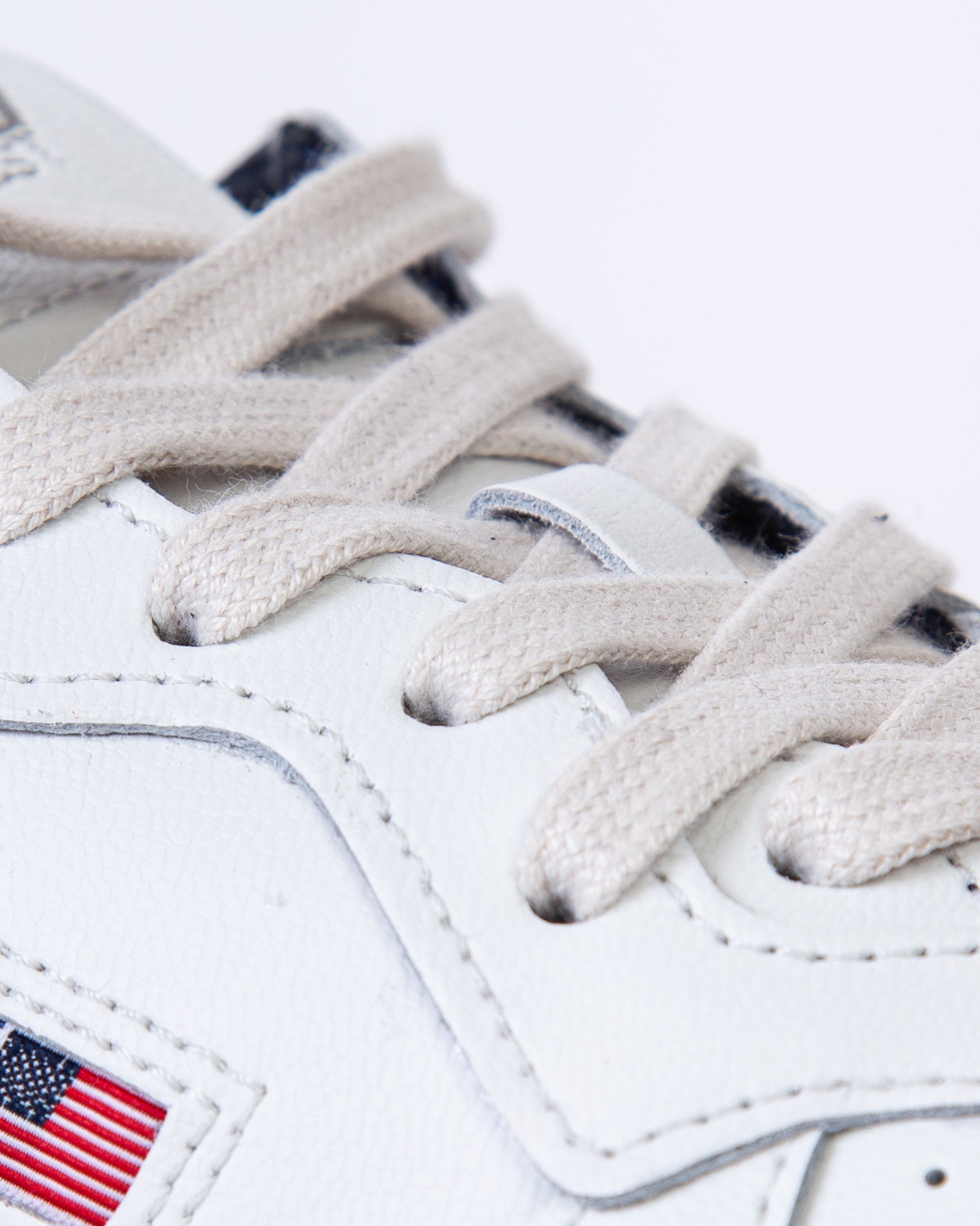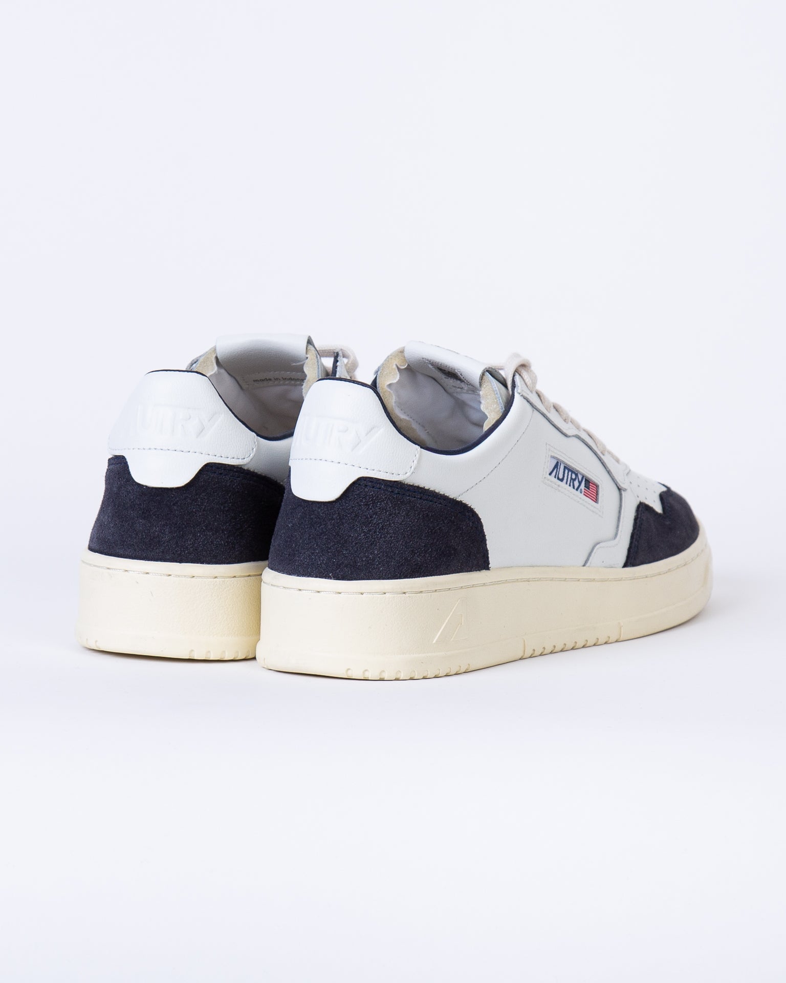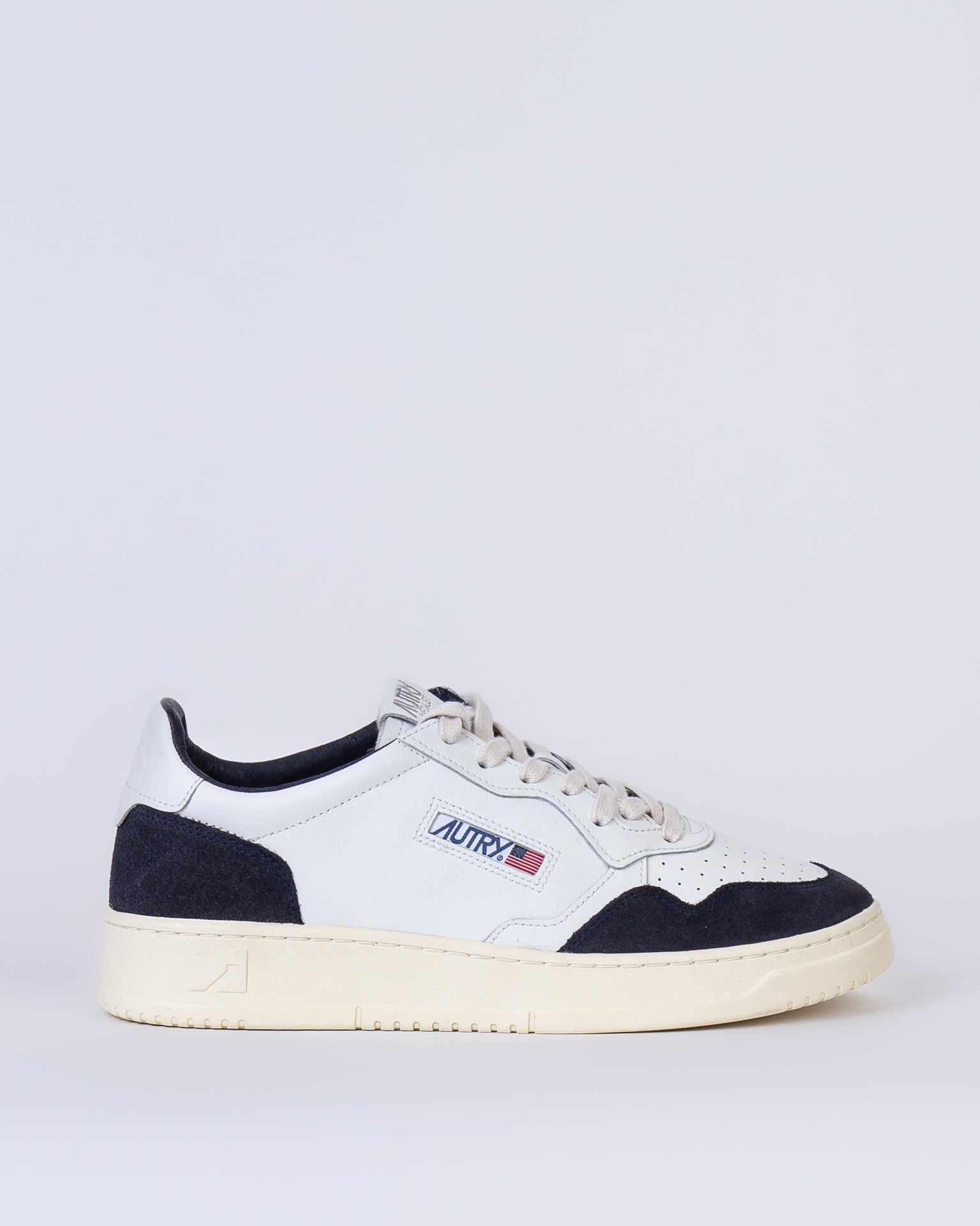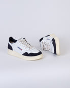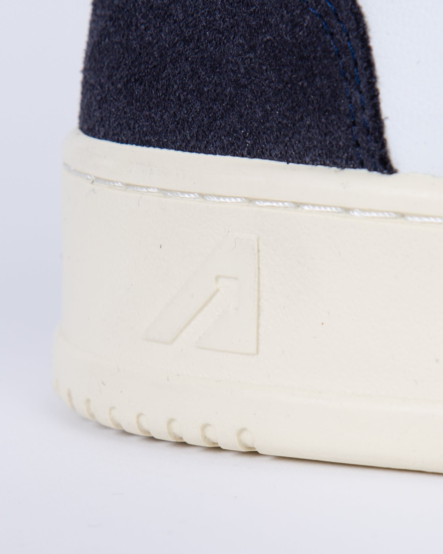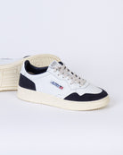 Autry, sneakers uomo AULM-FT 07 bianca e blu, pelle soft e camoscio contrasto. La scarpa scattata è una taglia 43