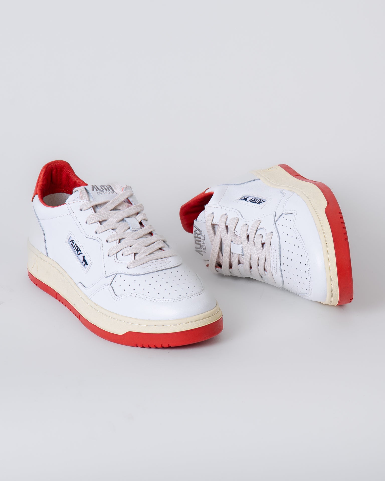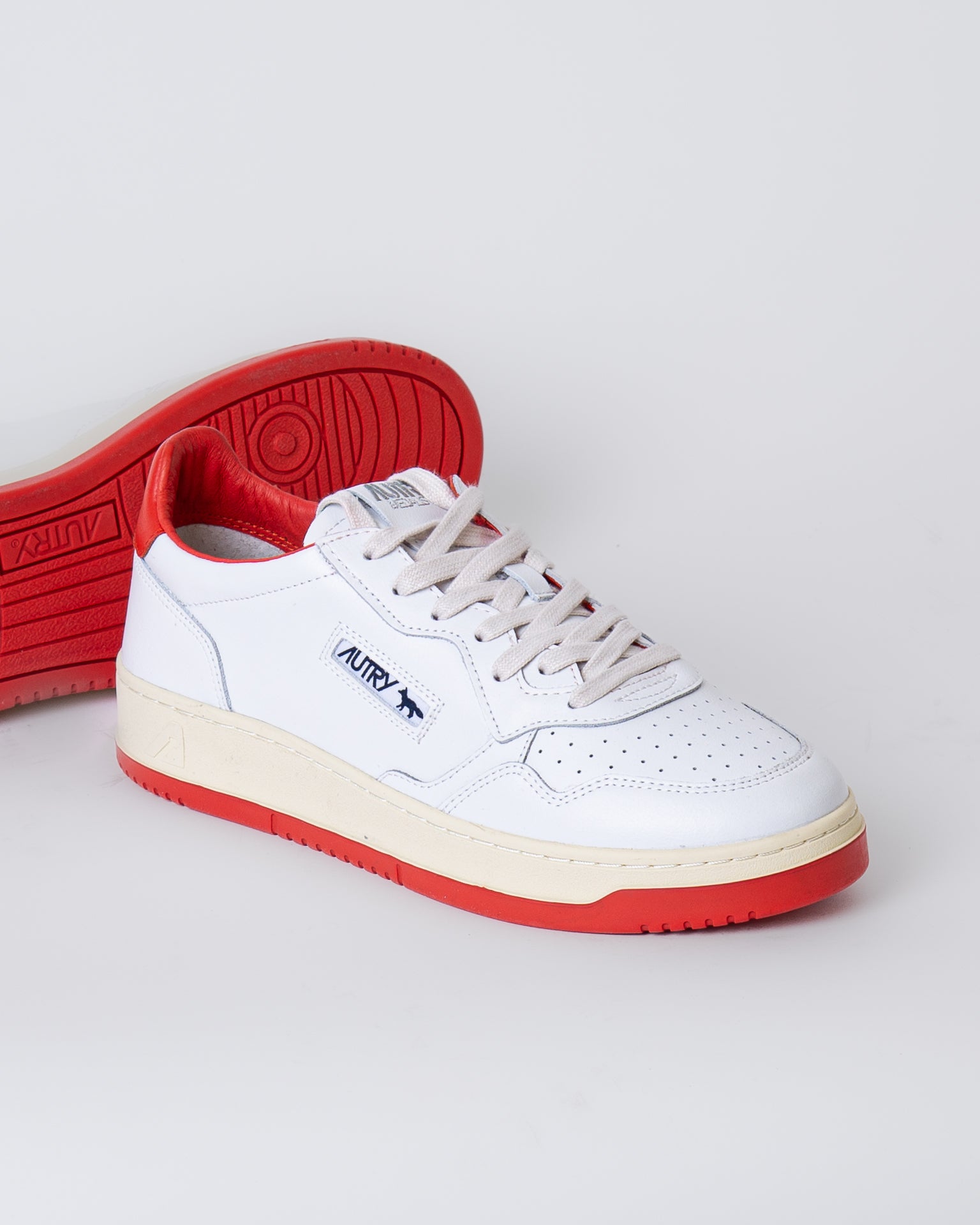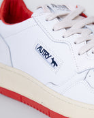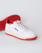 Autry, sneakers uomo AULM-MK 02 bianco e rosso, maison kitsunè, punta rotonda, traforata. La scarpa scattata è una taglia 44