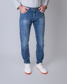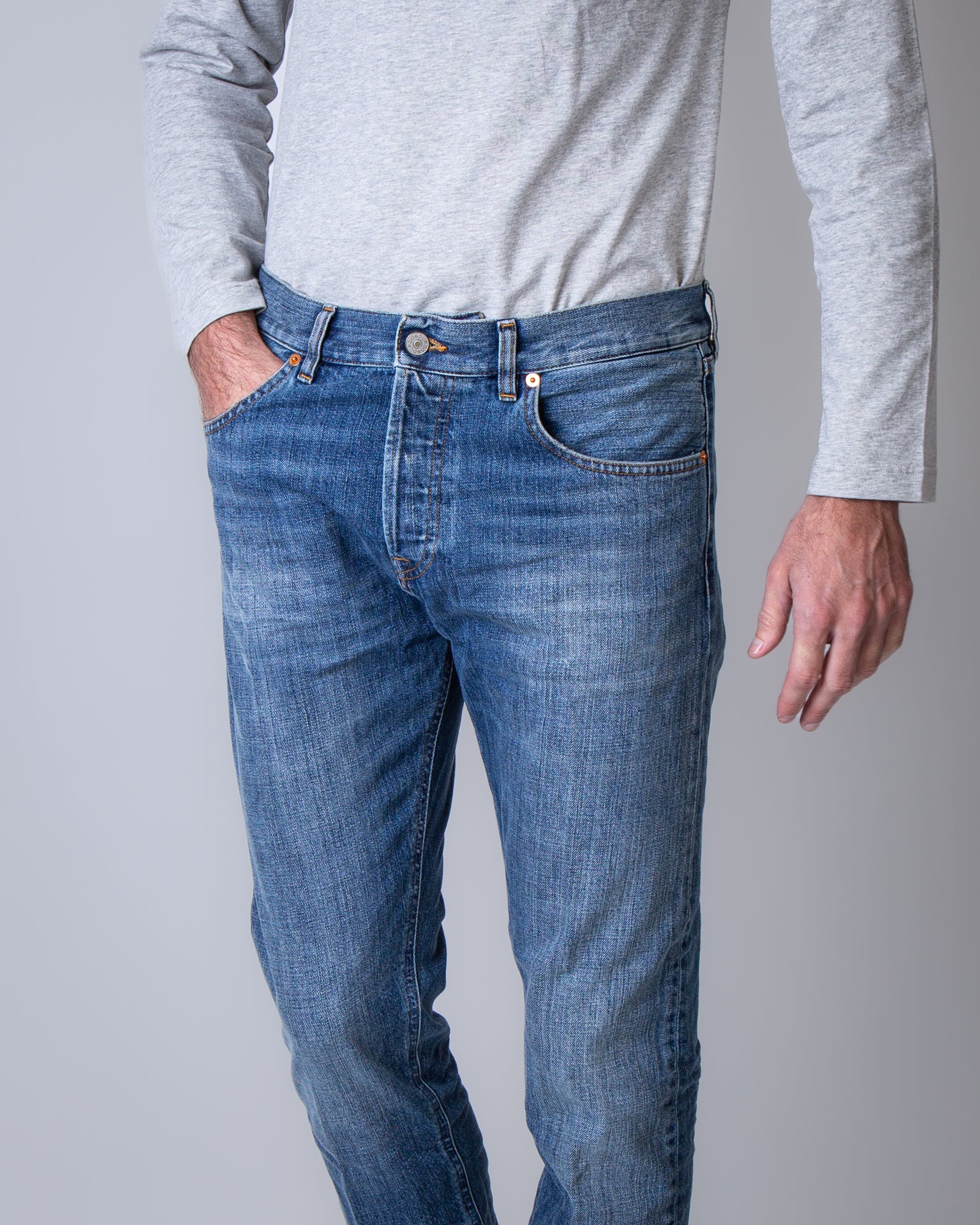 Dondup, jeans uomo UP563 DFE311 LL2 800 blu, icon blu chiaro fermo. Il modello è alto 186 cm e indossa la taglia 34