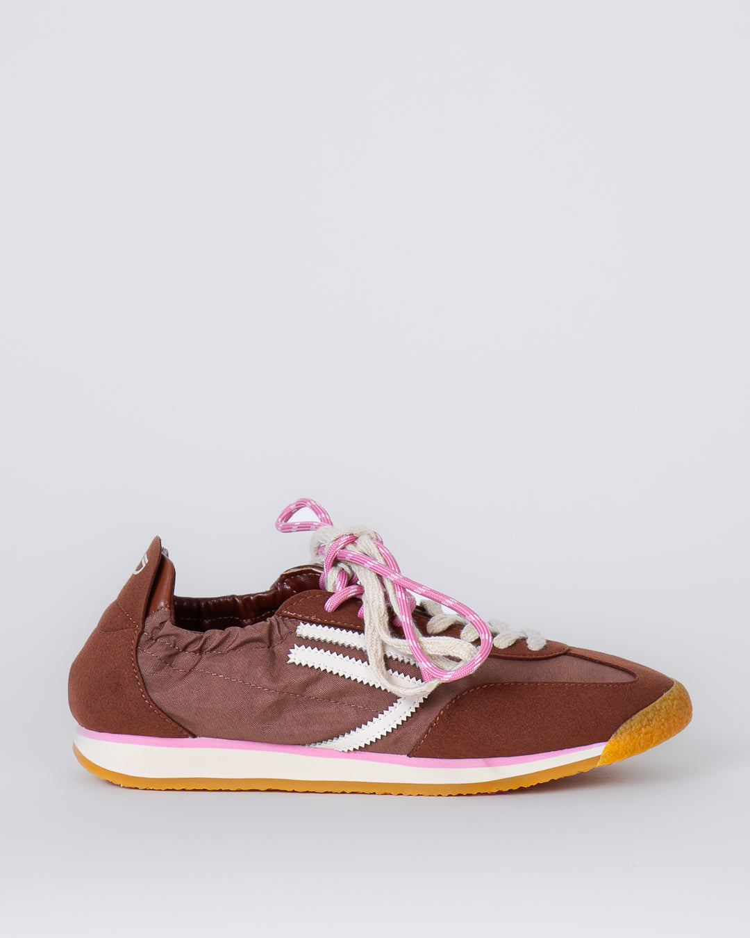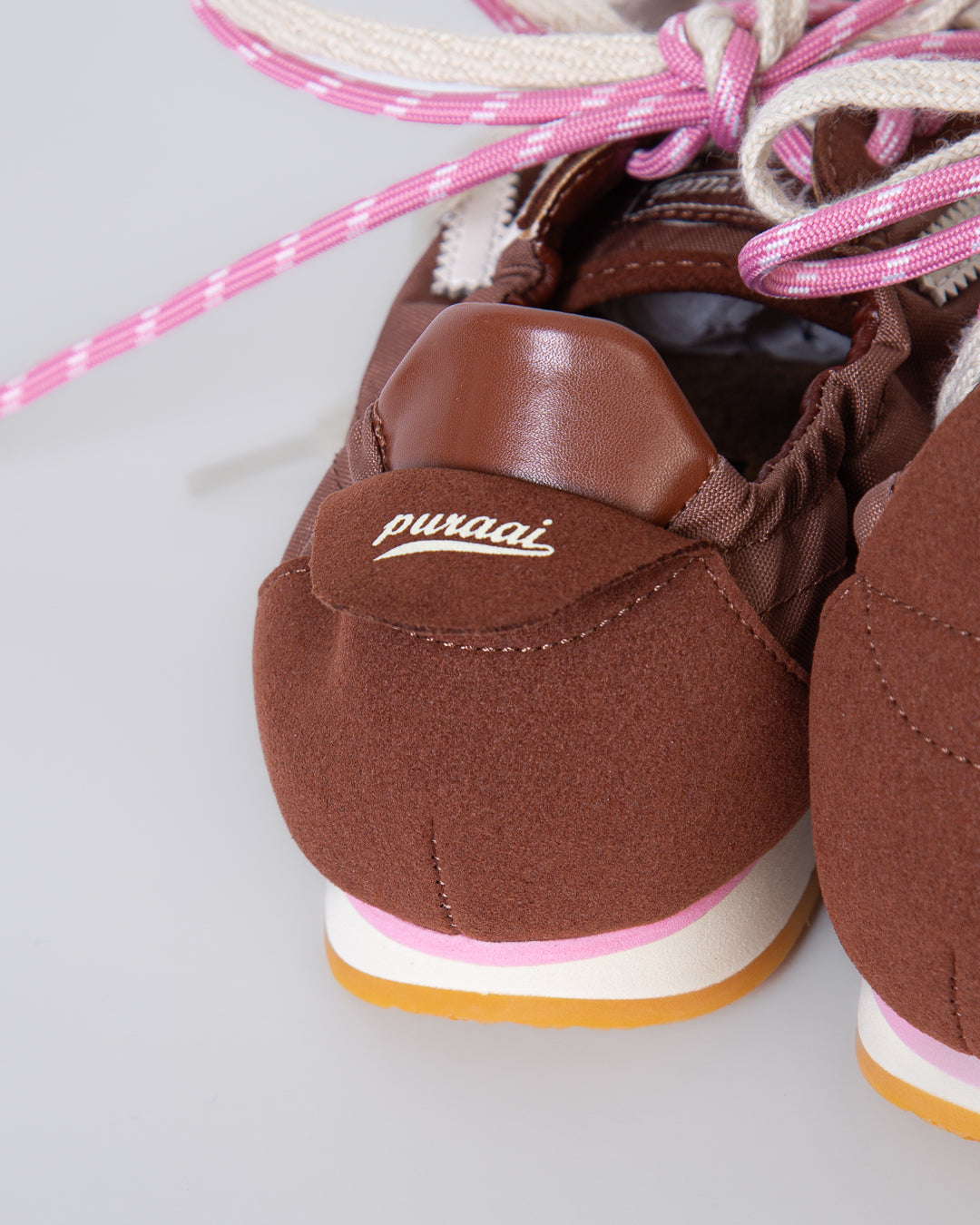 PURAAI, sneakers donna PU602P 026 bordaux, modello 6.02 panther, con logo sul tallone, suola marrone miele e lacci doppi.