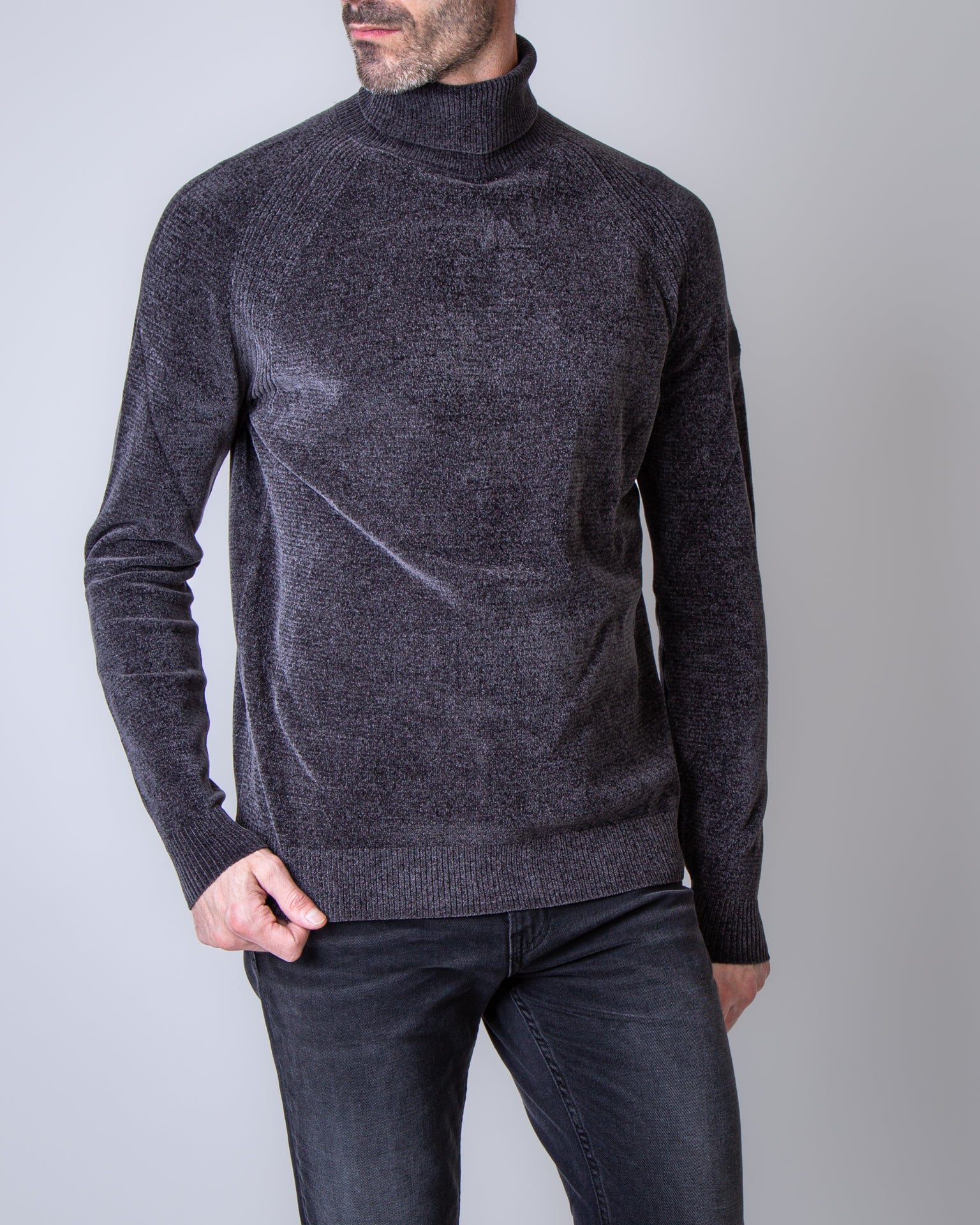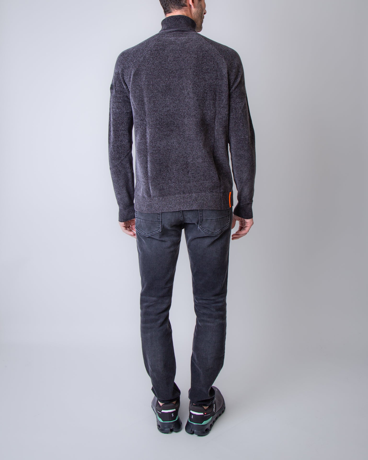 RRD, maglia uomo W25133 11 grigio, ciclista in ciniglia rasata. Il modello è alto 186 cm e indossa la taglia 52