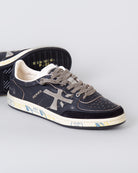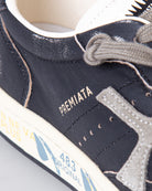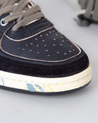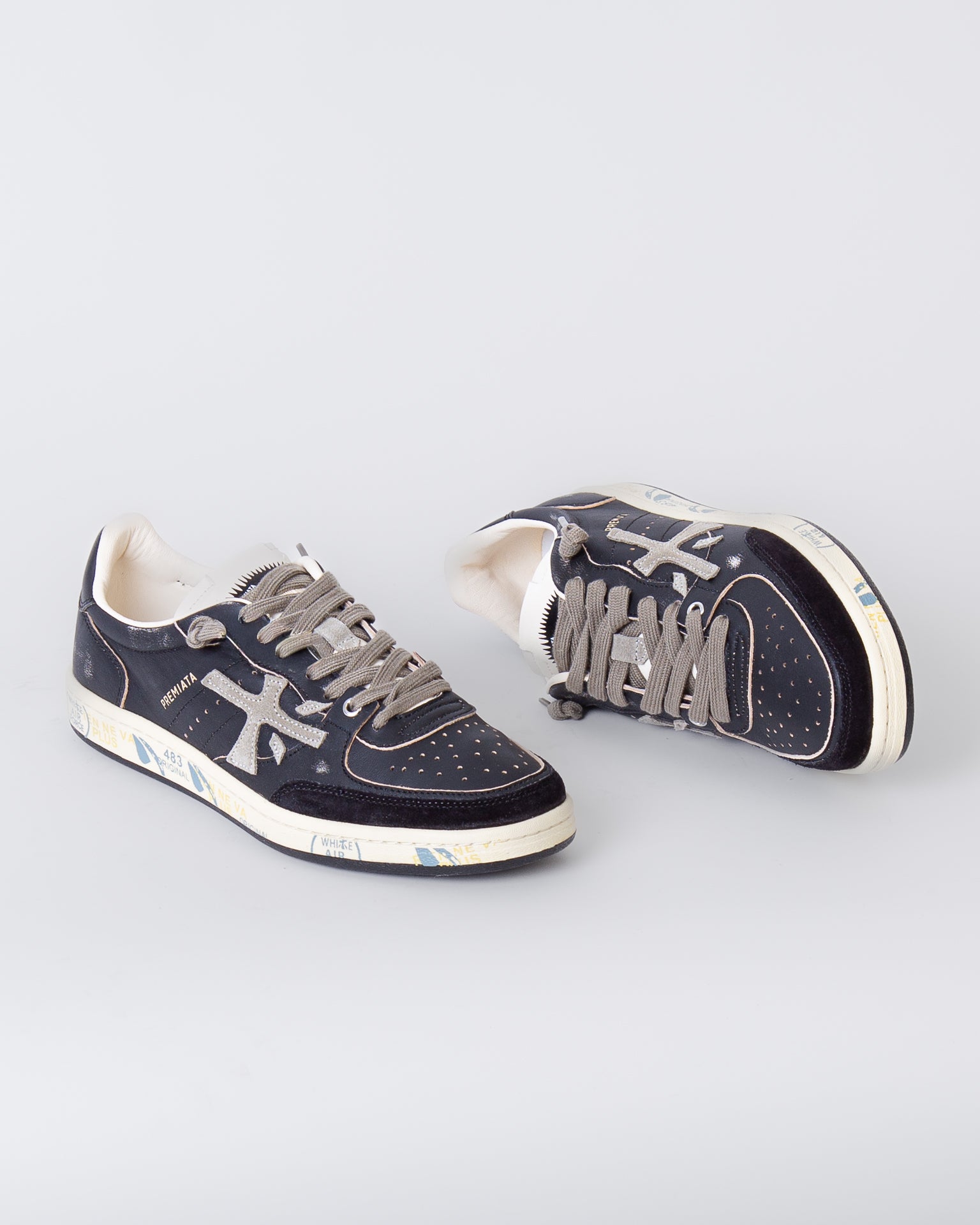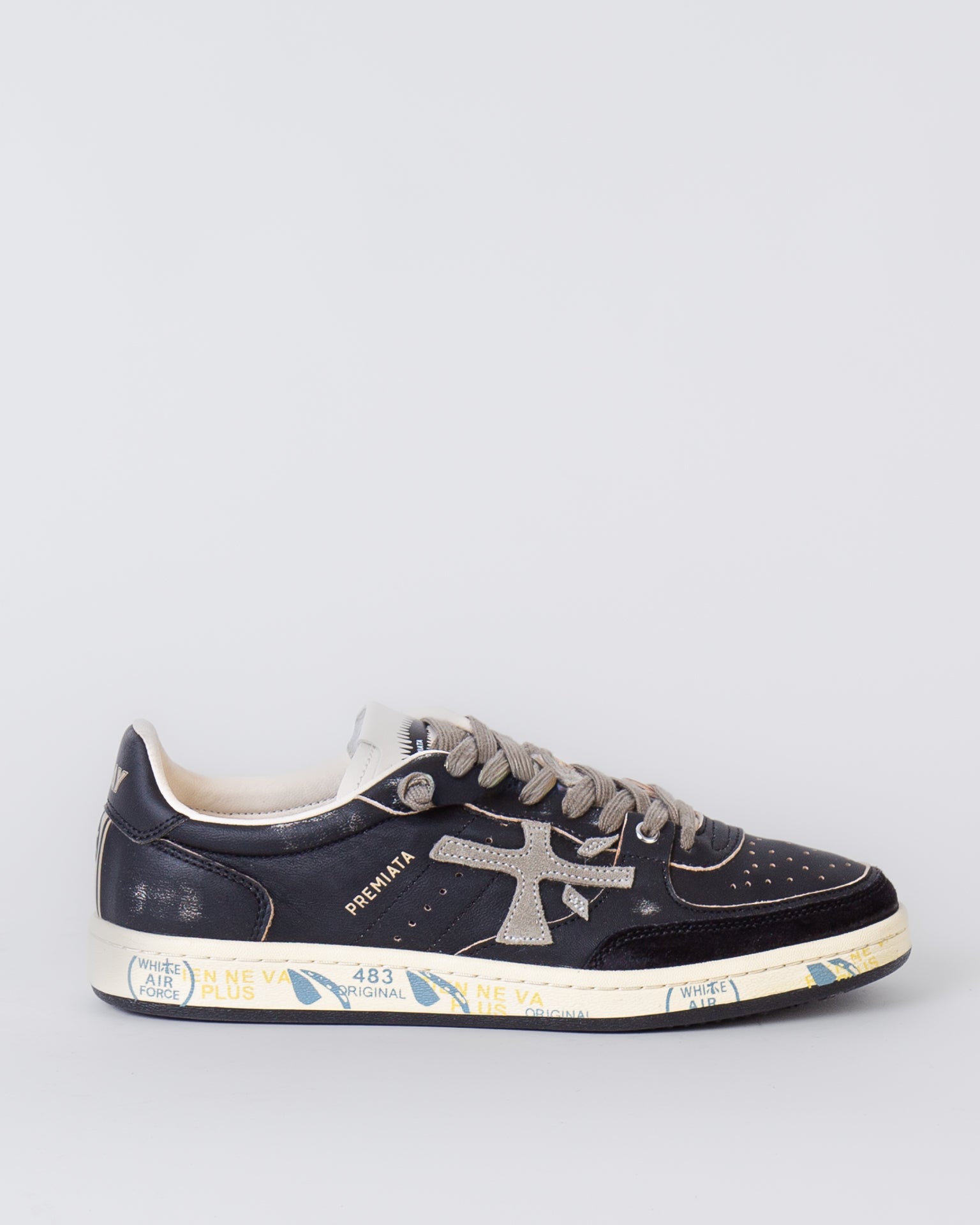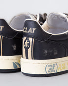 White Premiata, sneakers uomo BSKT CLAY 6909 nero, iconico talloncino sul retro con logo impresso.