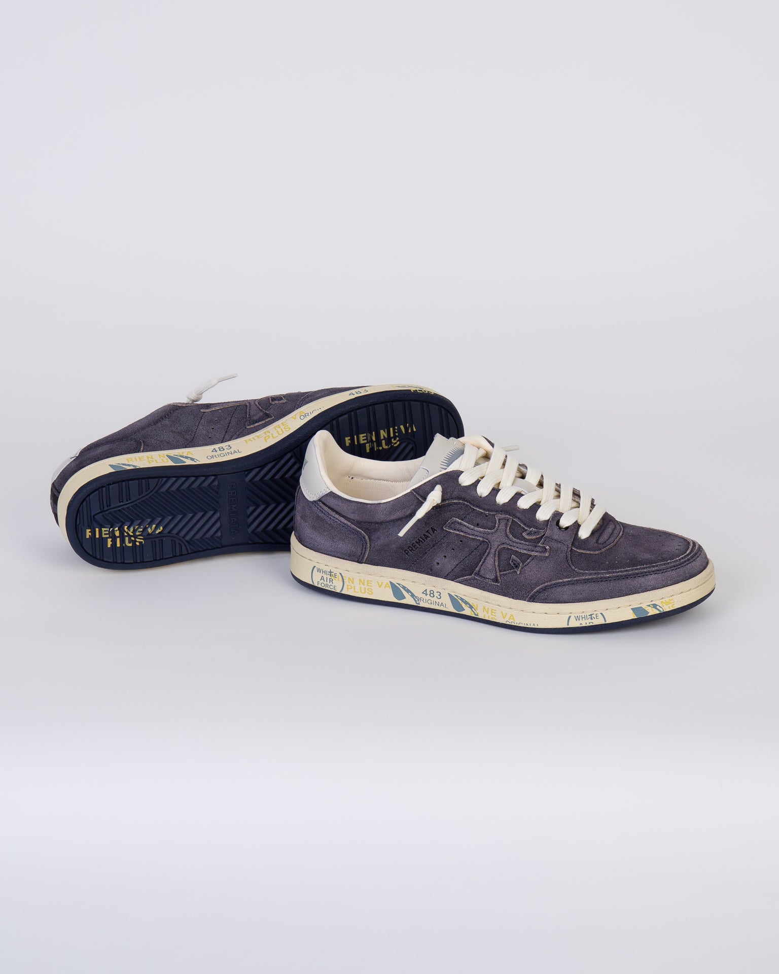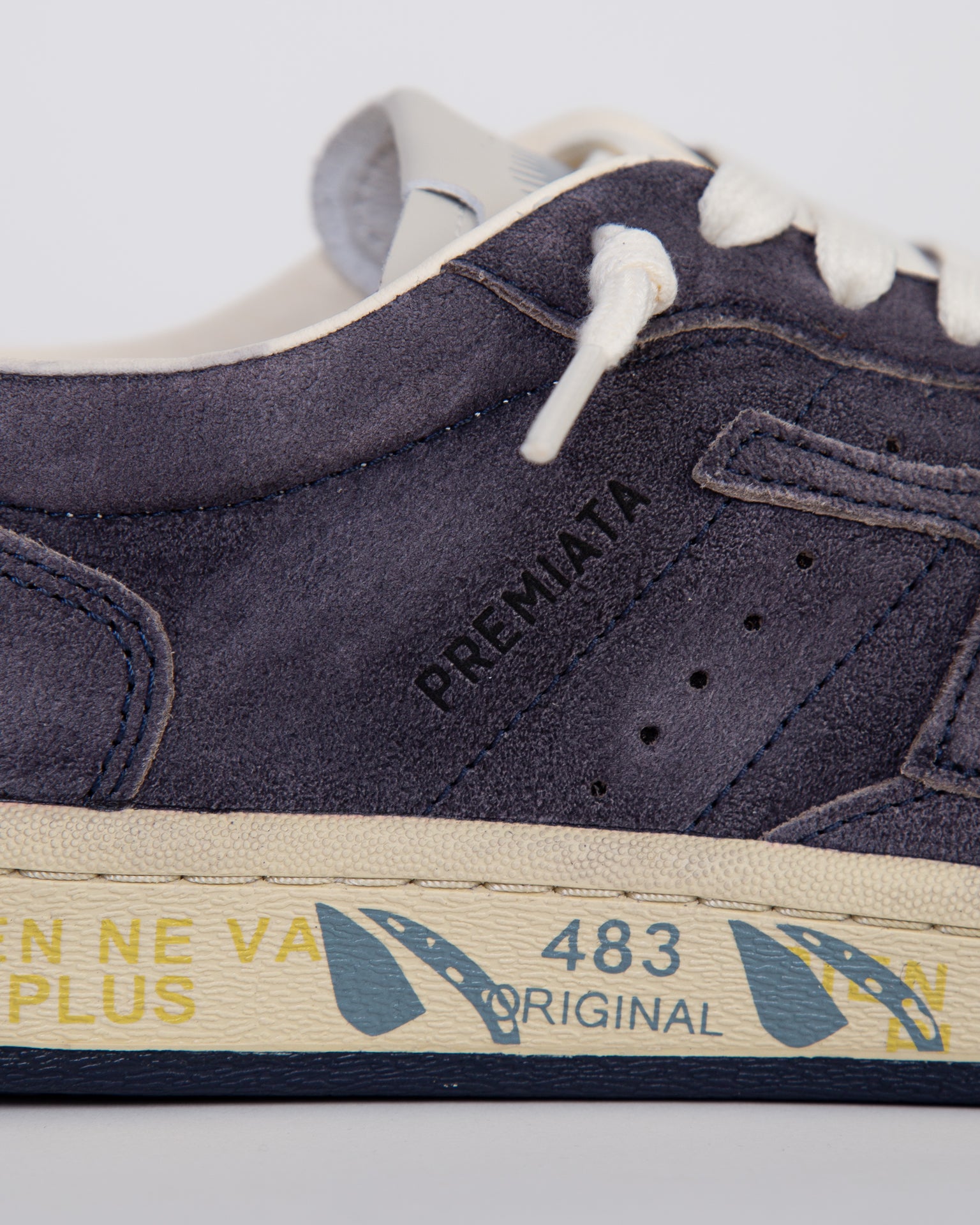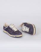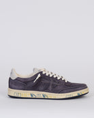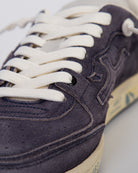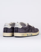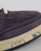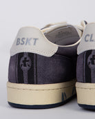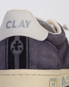 White Premiata, sneakers uomo BSKT CLAY 6962 grigio, iconico talloncino sul retro con logo impresso.