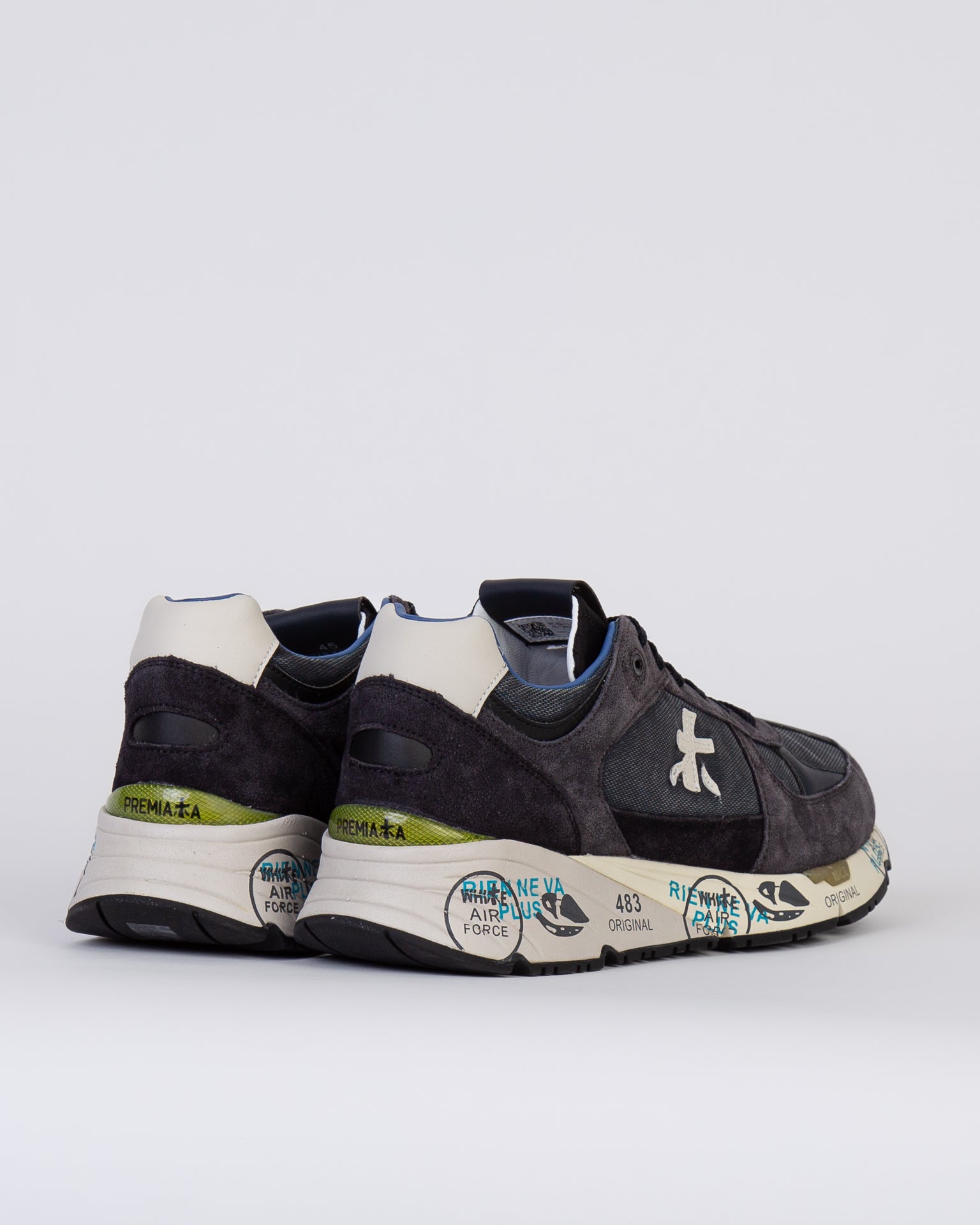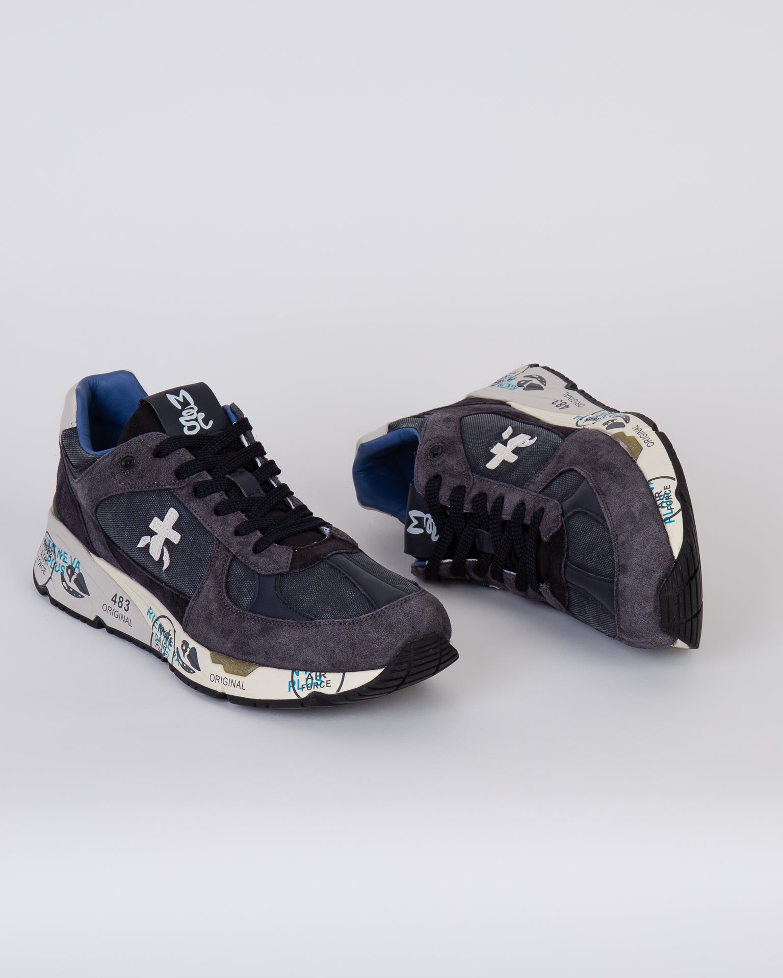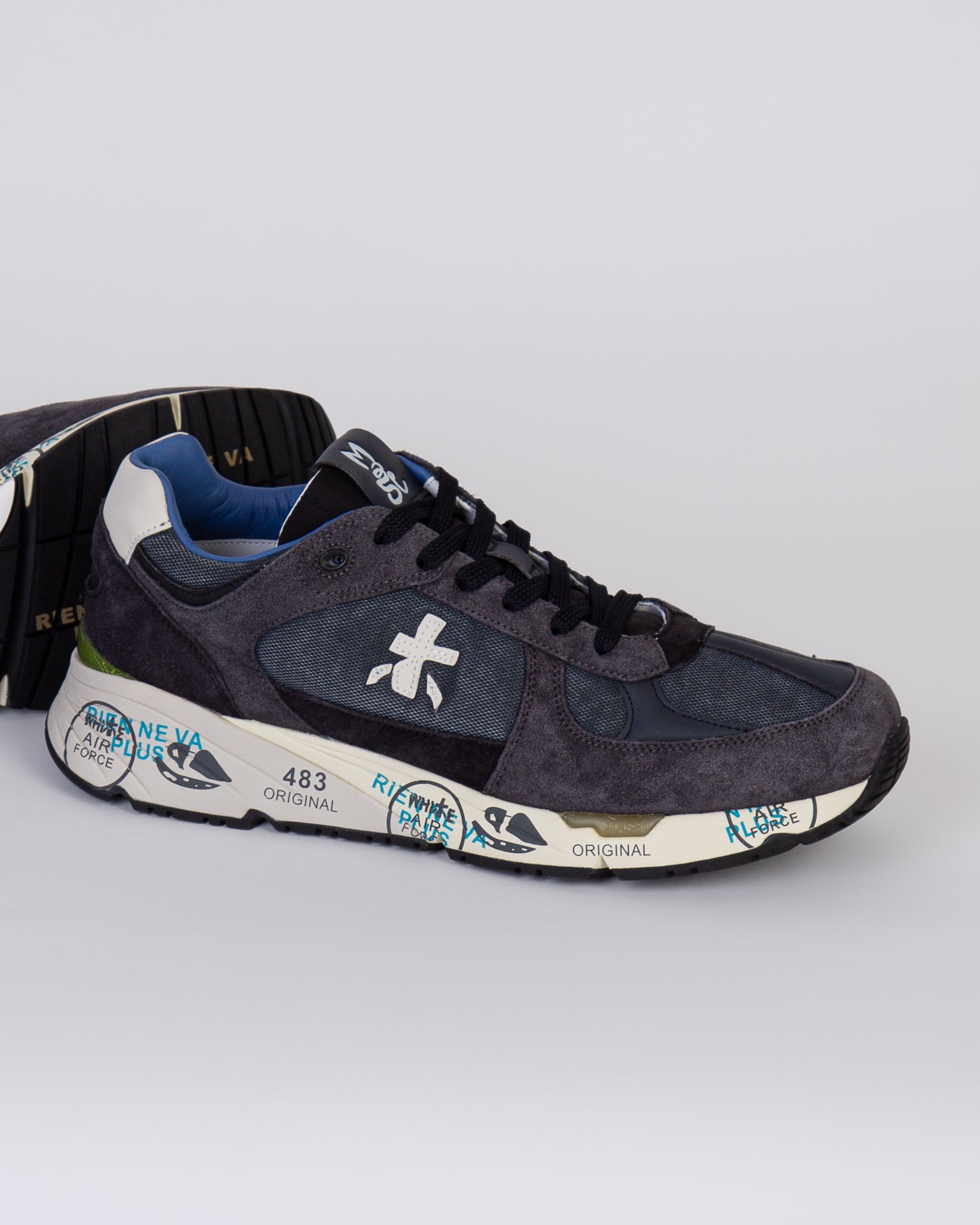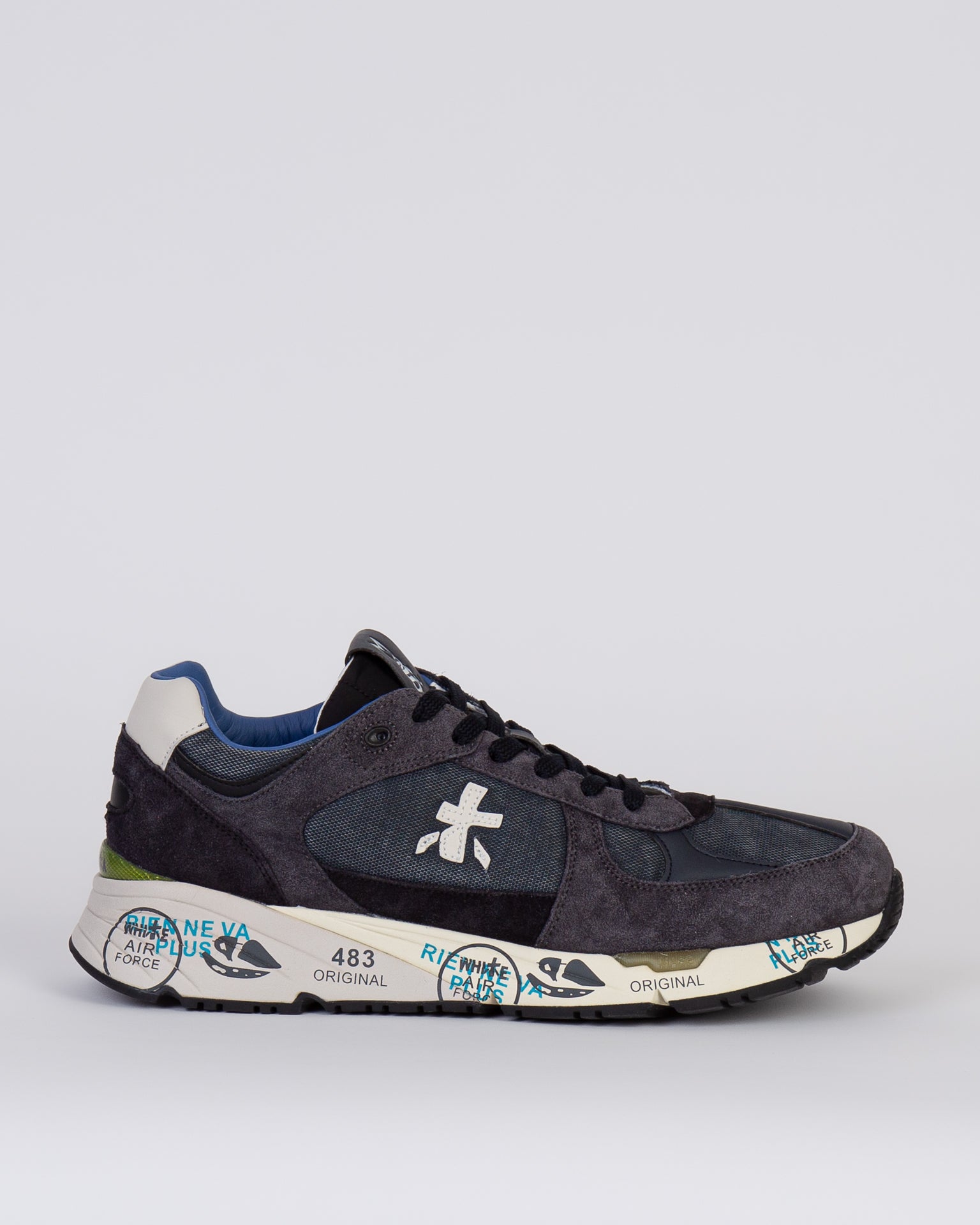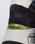 White Premiata, sneakers uomo MASE 7819 marrone, iconico talloncino sul retro con logo impresso, lacci neri, talloncino bianco.
